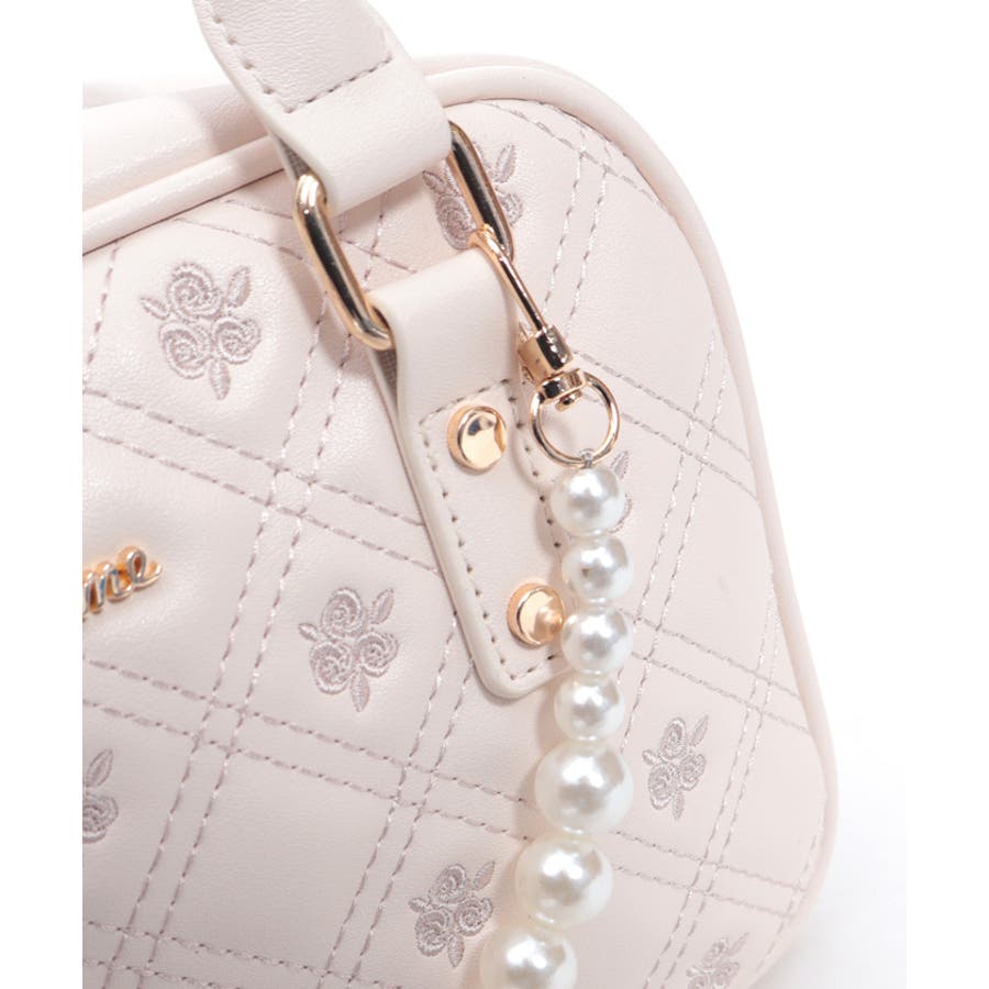 ダブルステッチのキルティングにローズモチーフの刺繍が広がる、高級感漂う華やかなデザイン。