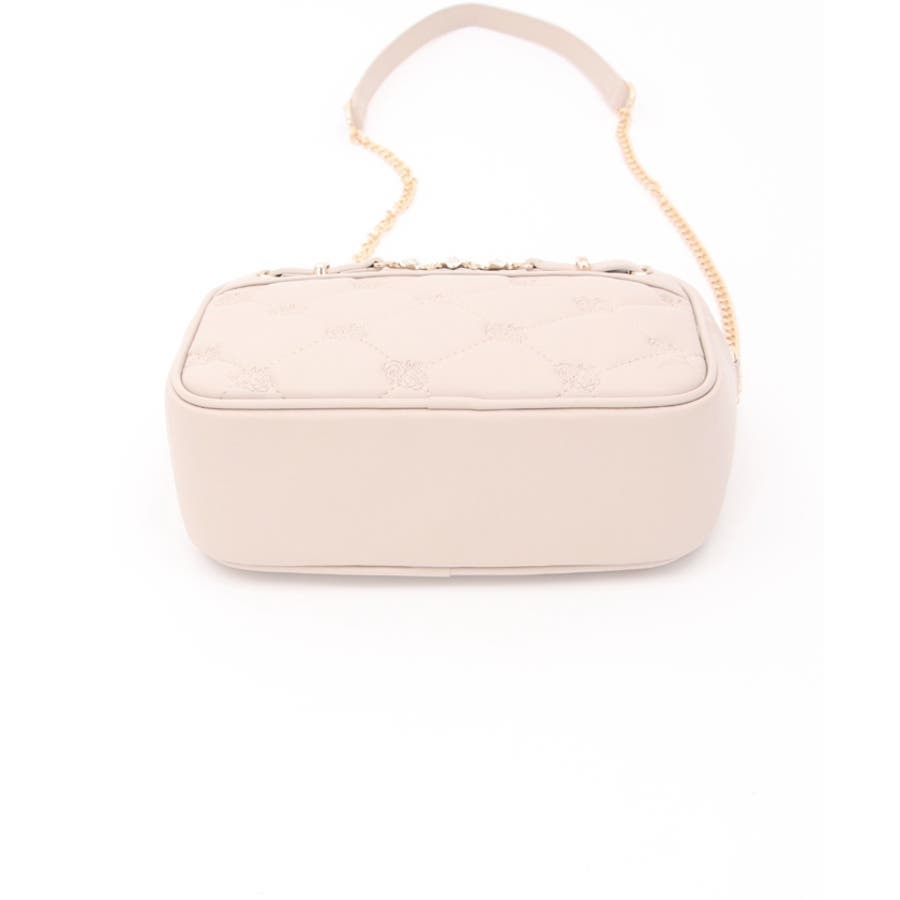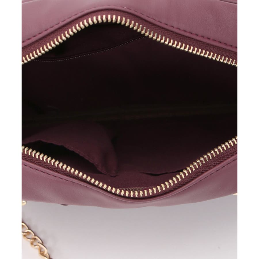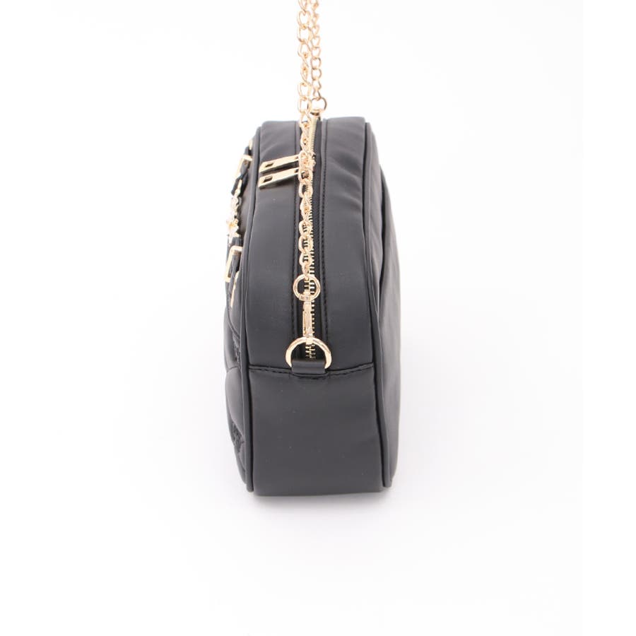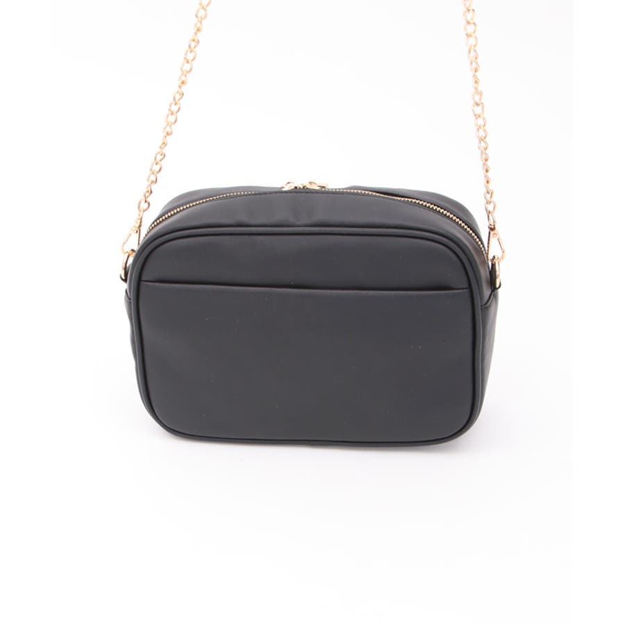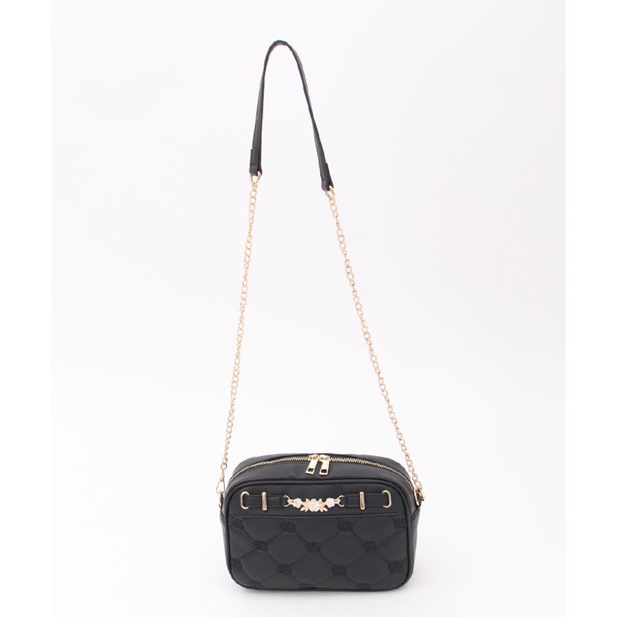 ショルダーのひもは華やかなチェーンデザインになっており、肩にあたる部分は合皮生地を使用して持ちやすい仕様になっています。