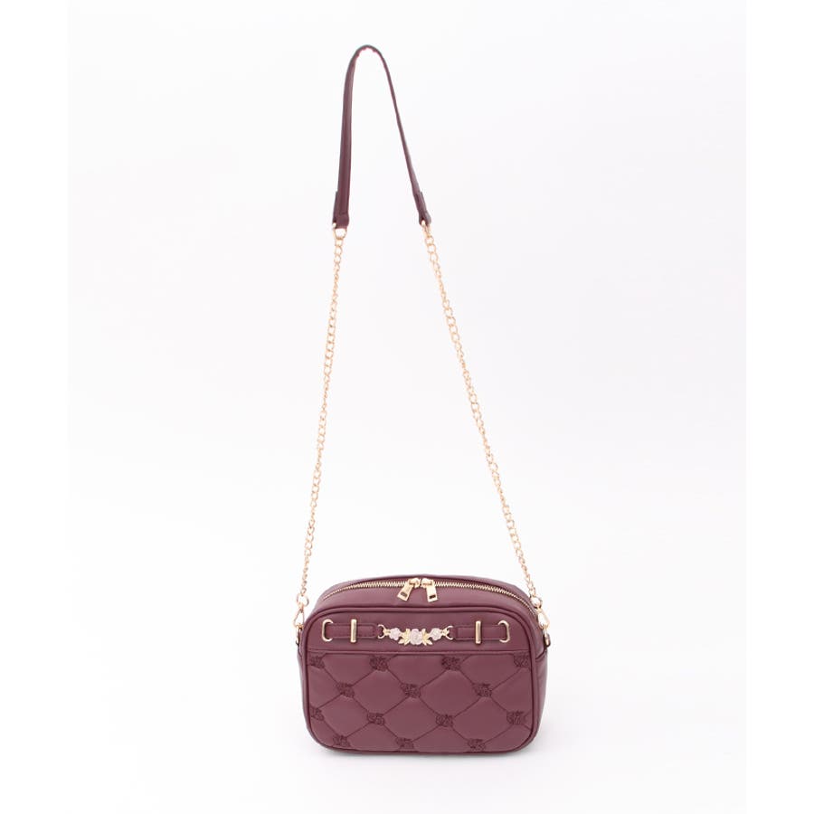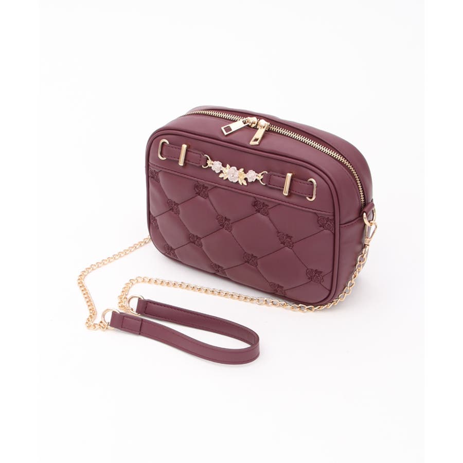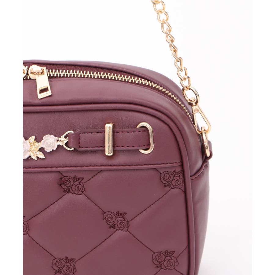 薔薇のモチーフ刺繍をあしらったキルトデザインのショルダーバッグです。