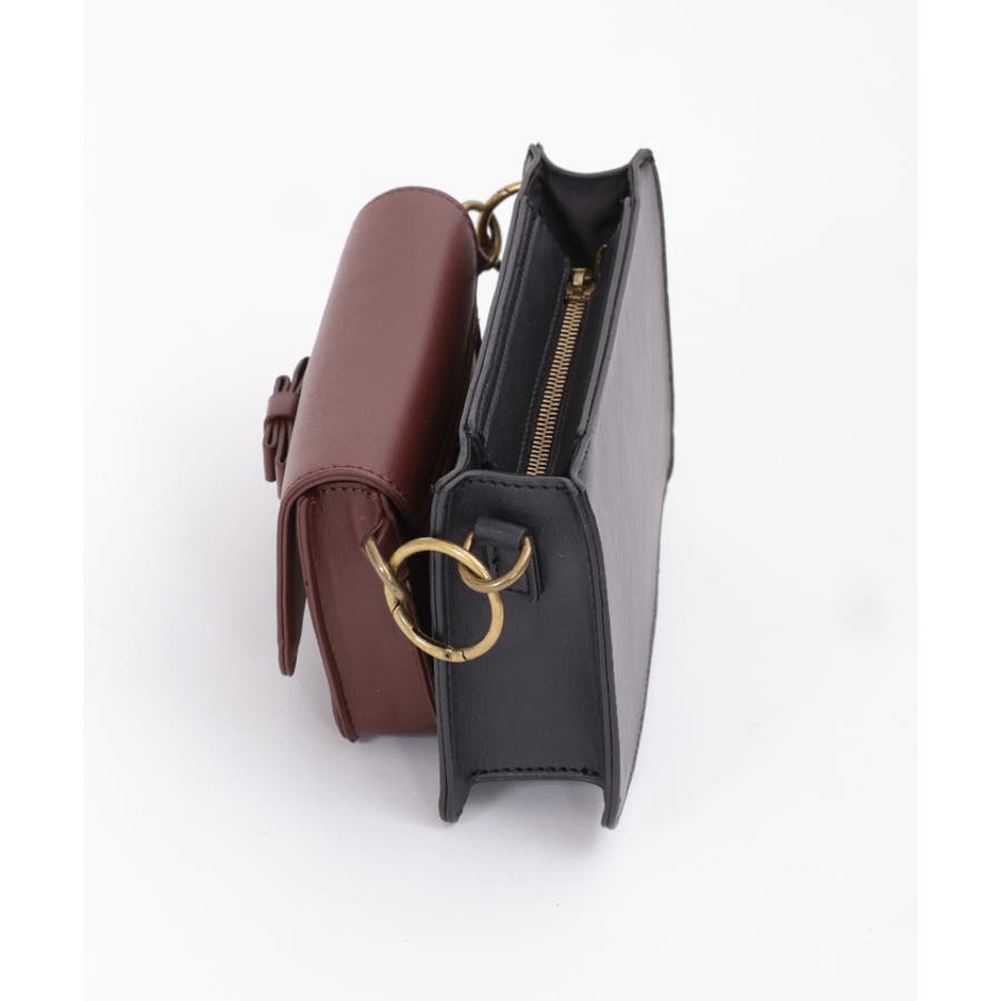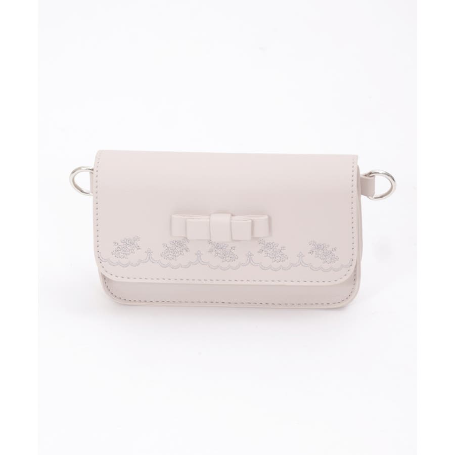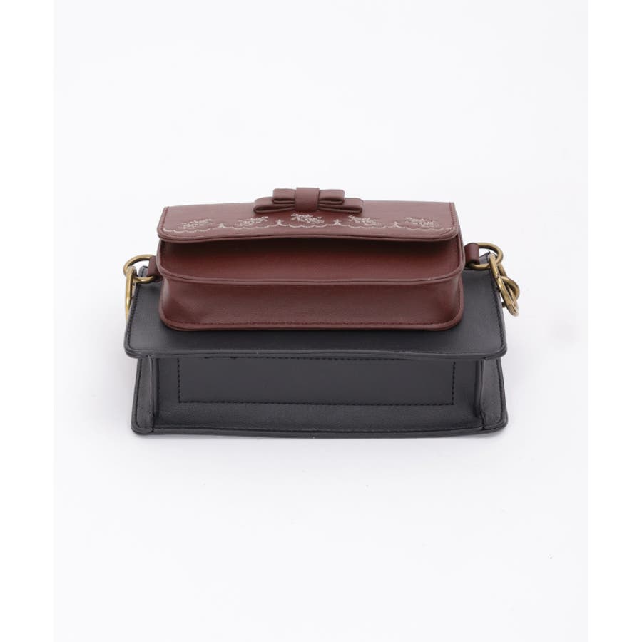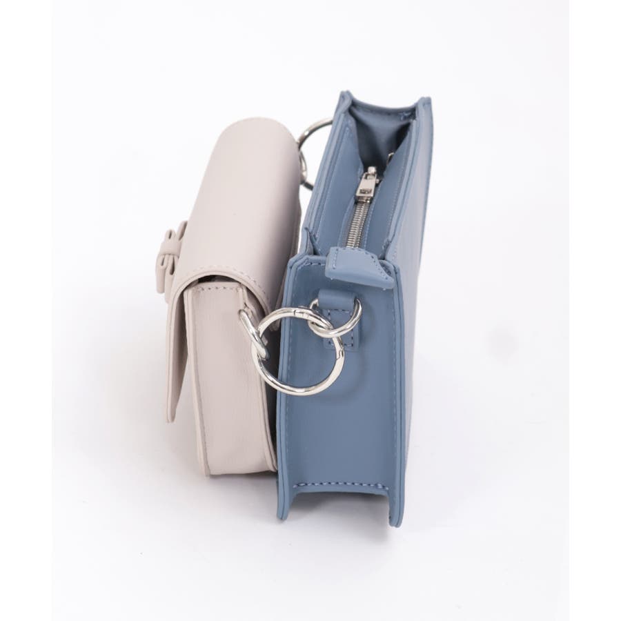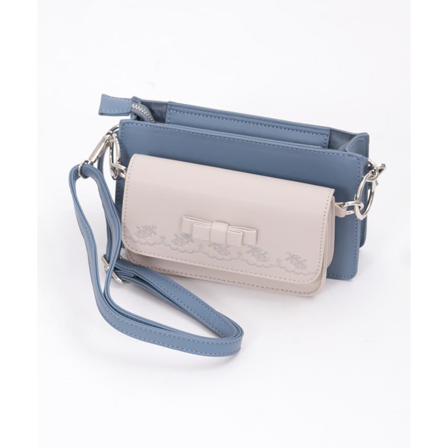 刺繍が上品なフラップバッグと、シンプルなファスナーバッグを組み合わせたデザイン。