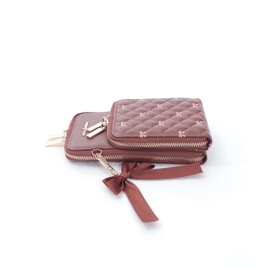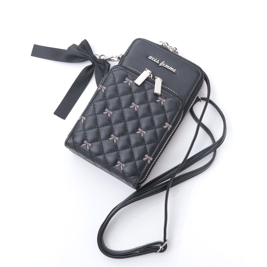 リボンモチーフの刺繍が華やかなキルトデザインのショルダーバッグです。