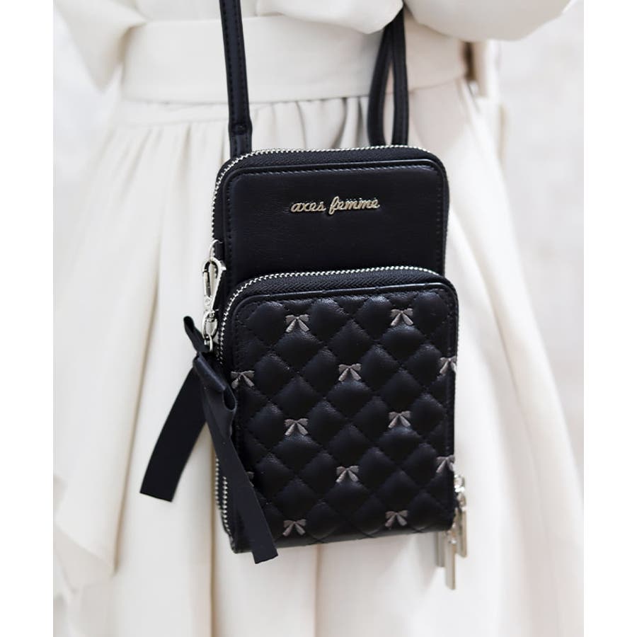 axesらしくとてもガーリーなデザインで可愛いです!スマホショルダーとして使っています。チャックを半分くらいまで下げれば口の開きも広がってスマホの出し入れもやりやすくなりました。