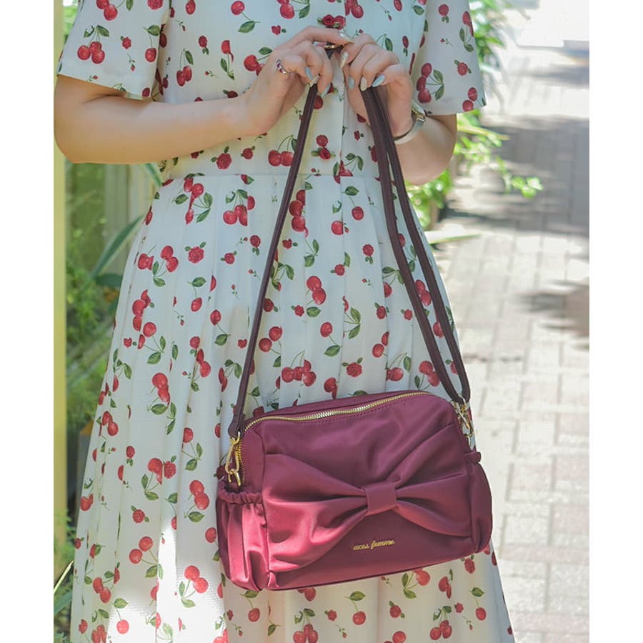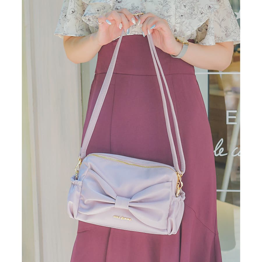 リボンデザインが華やかな撥水仕様のショルダーバッグです。