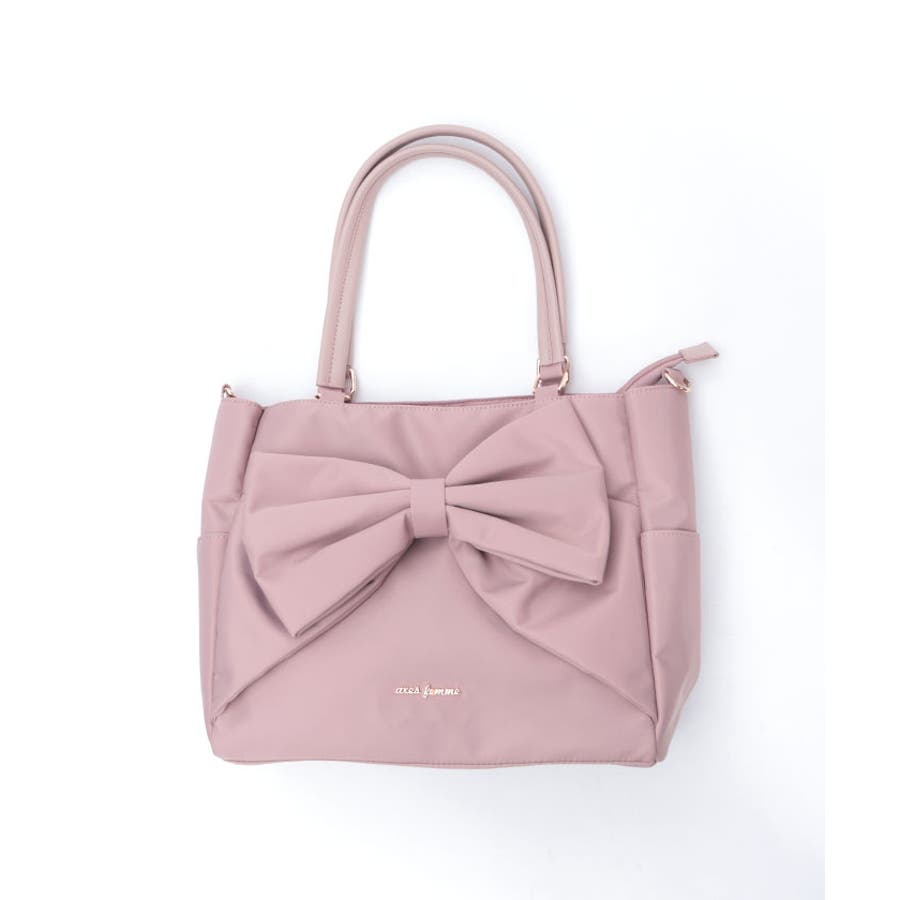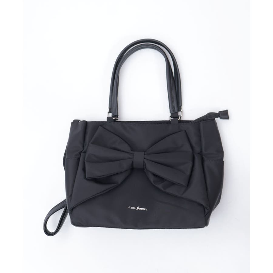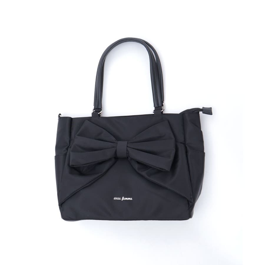 リボンデザインが華やかな撥水仕様のトートバッグです。