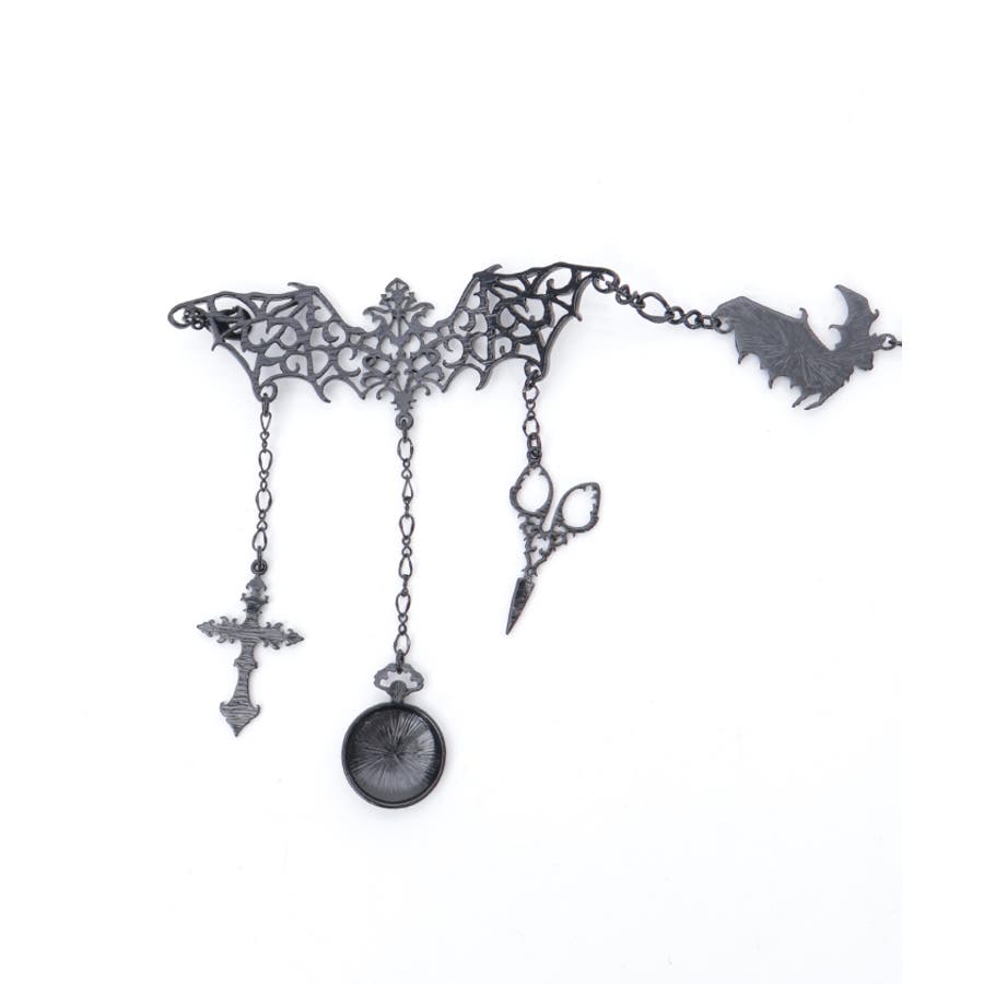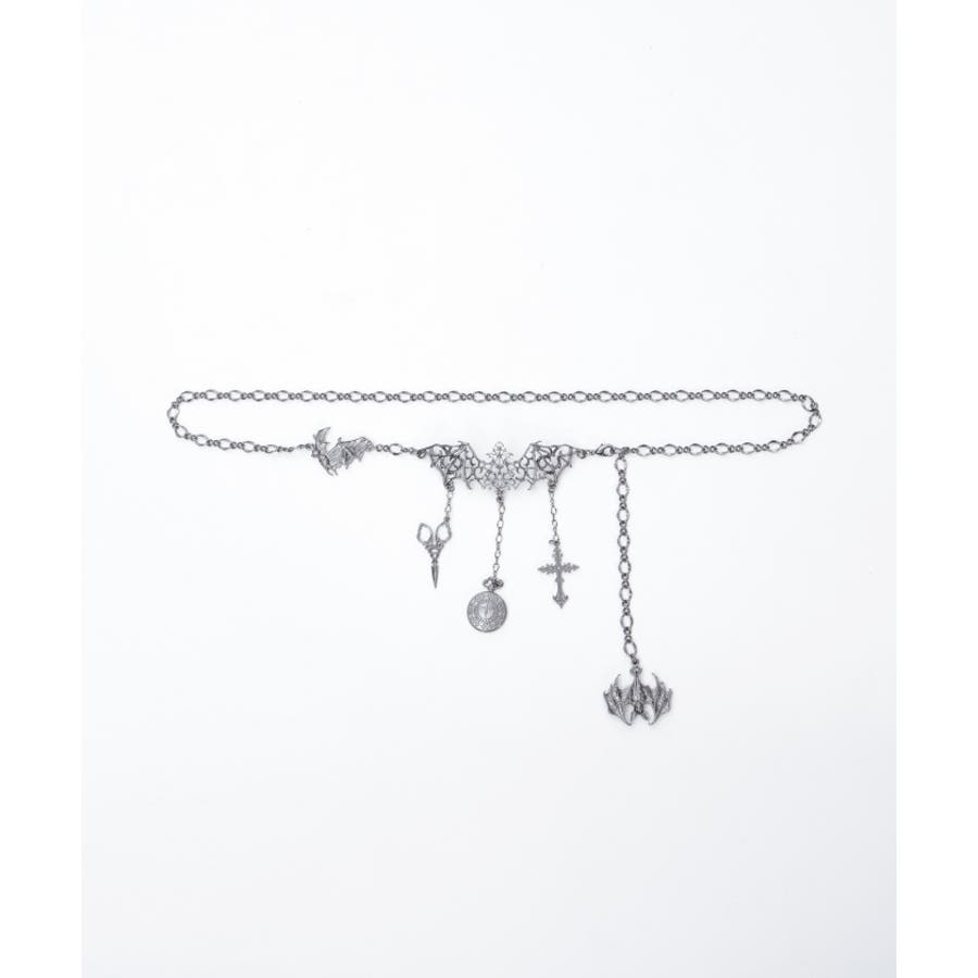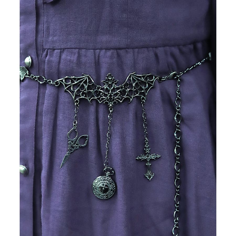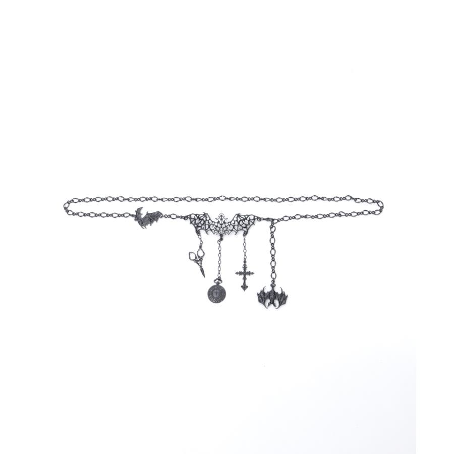 繊細な細工で夜の象徴であるコウモリをあしらったシャトレーヌ風のチェーンベルトです。