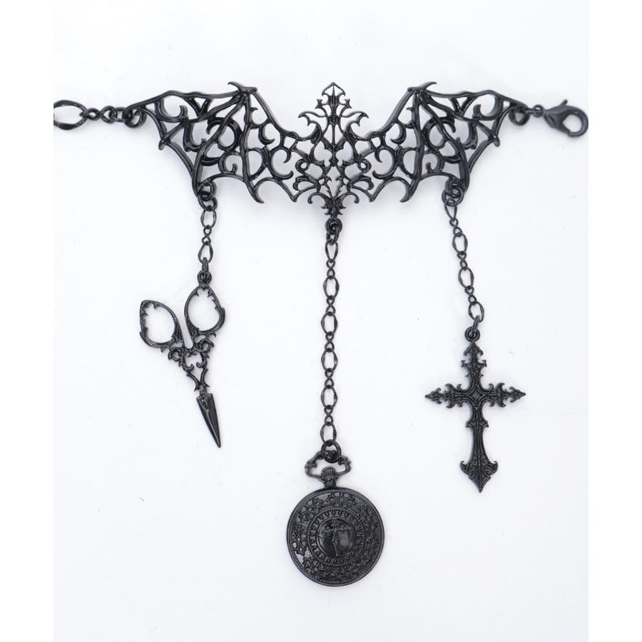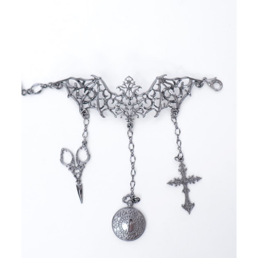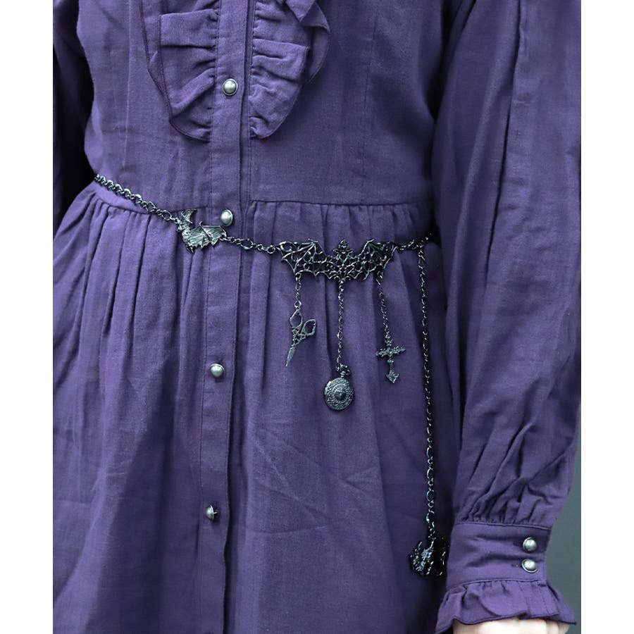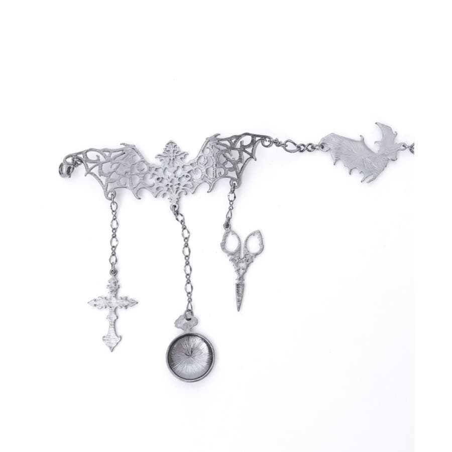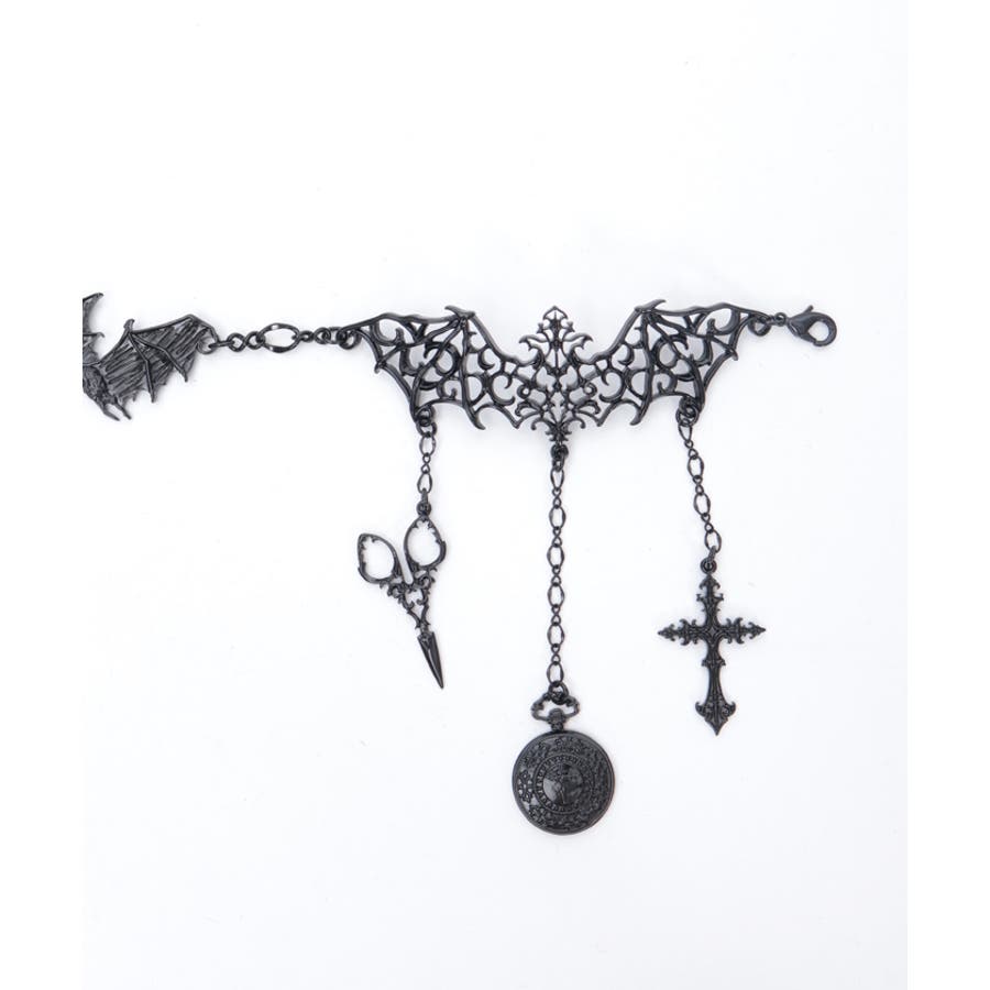 繊細な細工で夜の象徴であるコウモリをあしらったシャトレーヌ風のチェーンベルトです。