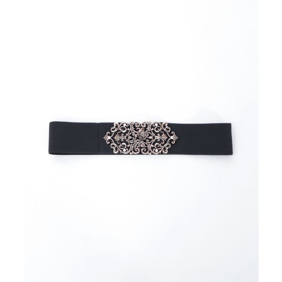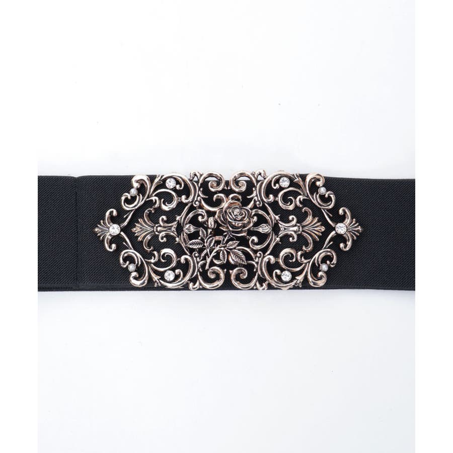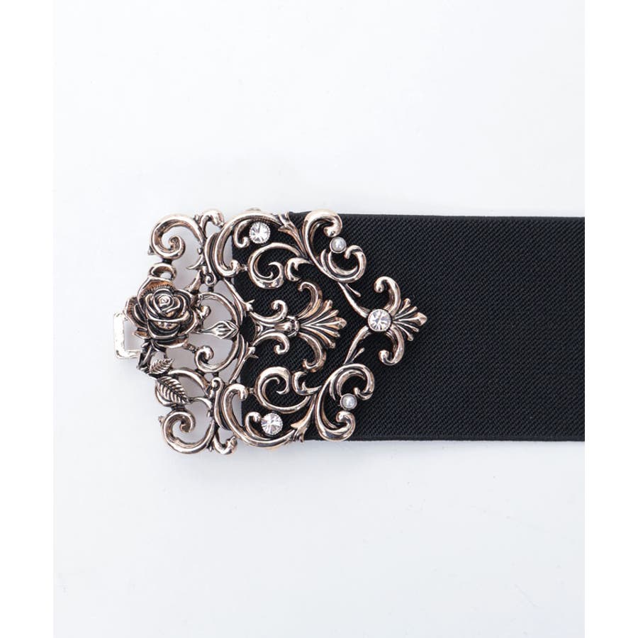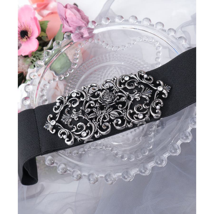 華やかな装飾にローズモチーフをあしらった太幅ゴムベルトです。