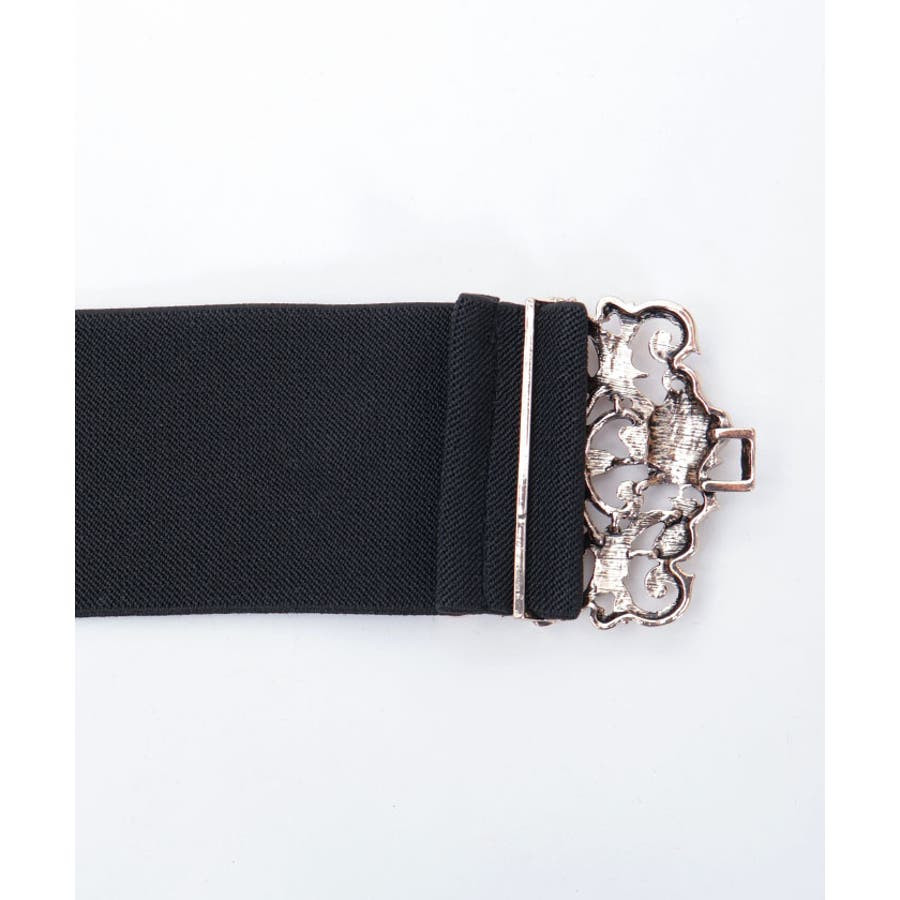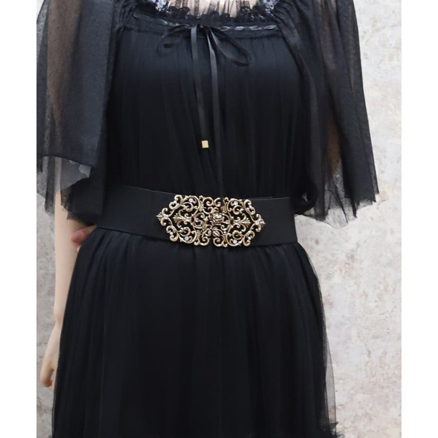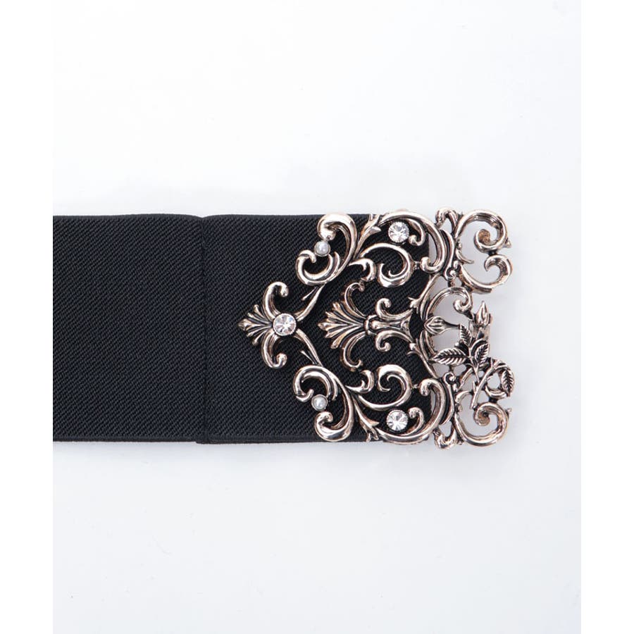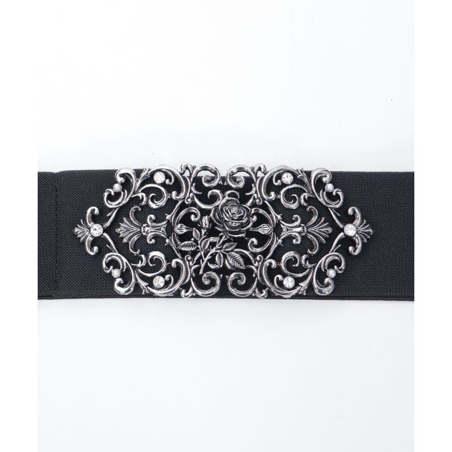 華やかな装飾にローズモチーフをあしらった太幅ゴムベルトです。
