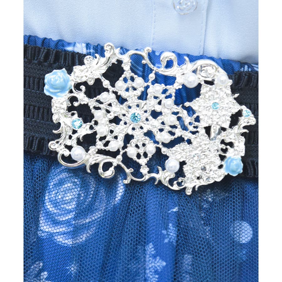 繊細な雪の結晶モチーフに薔薇を添えた華やかなゴムベルトです。