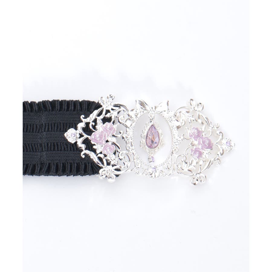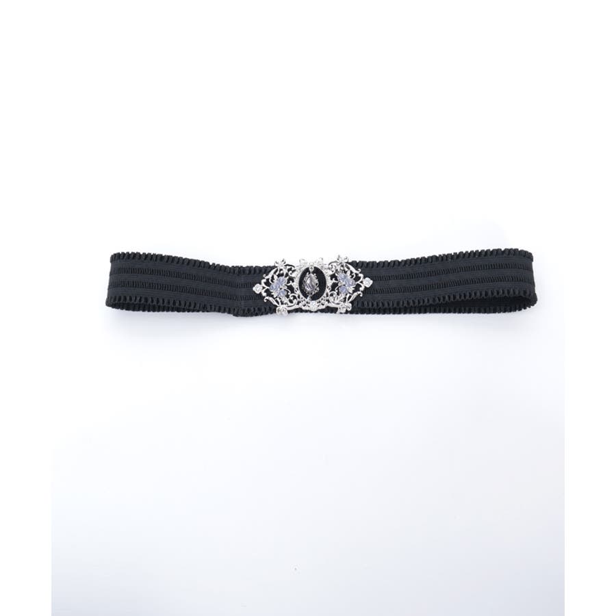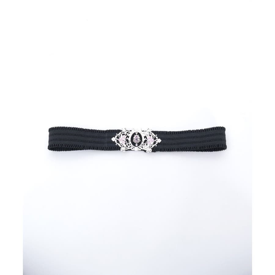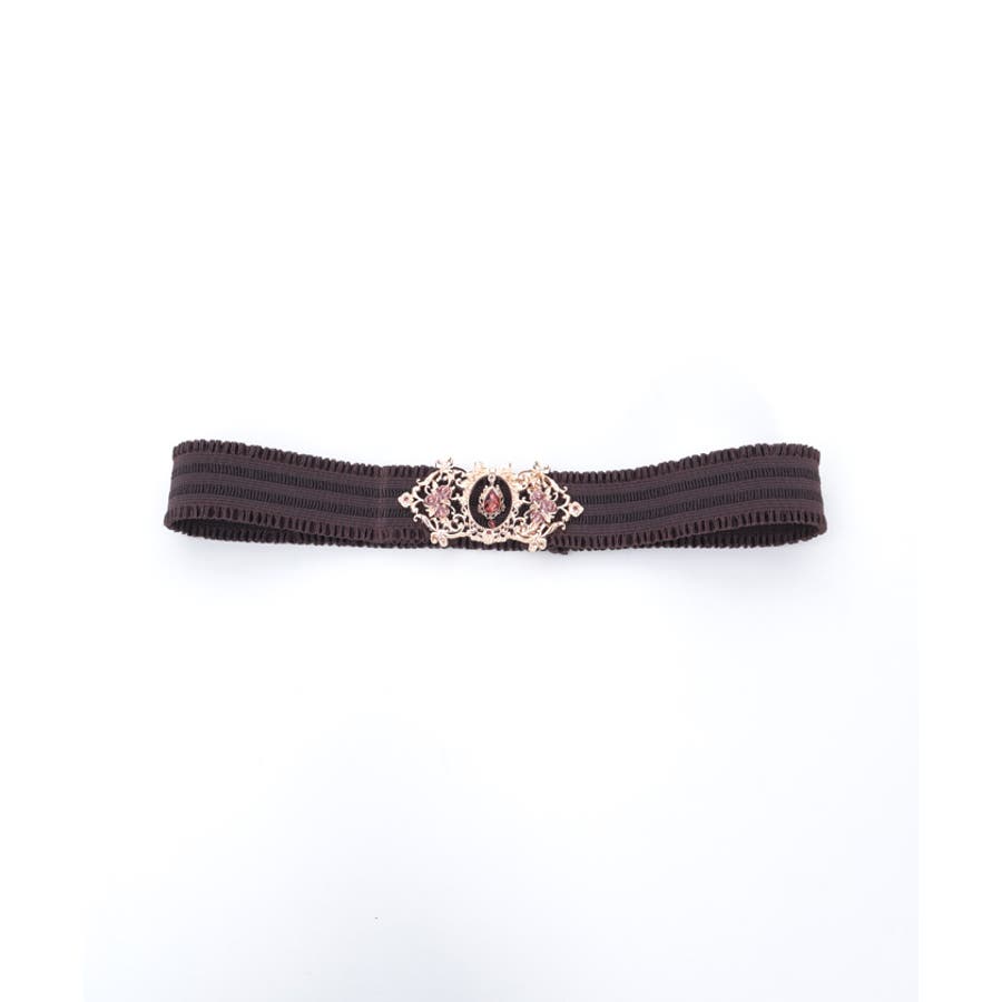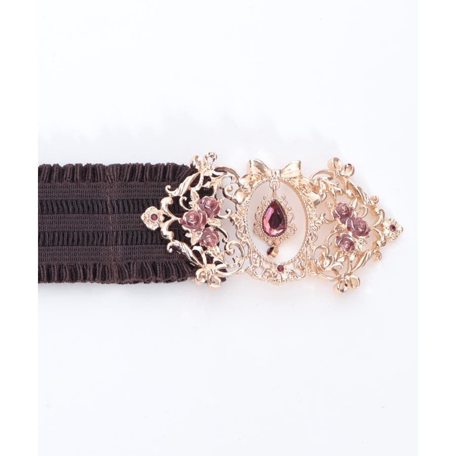 オーナメント風の装飾に鮮やかな薔薇が映えるゴムベルトです。