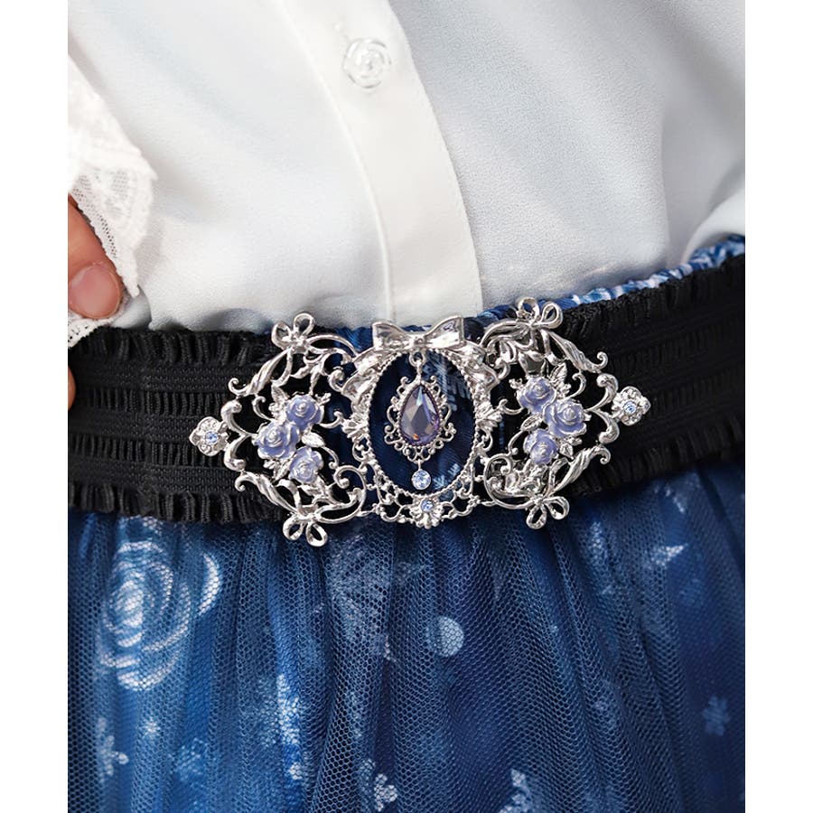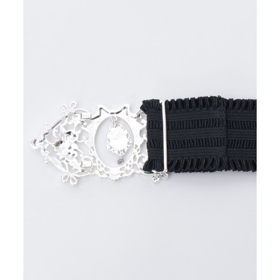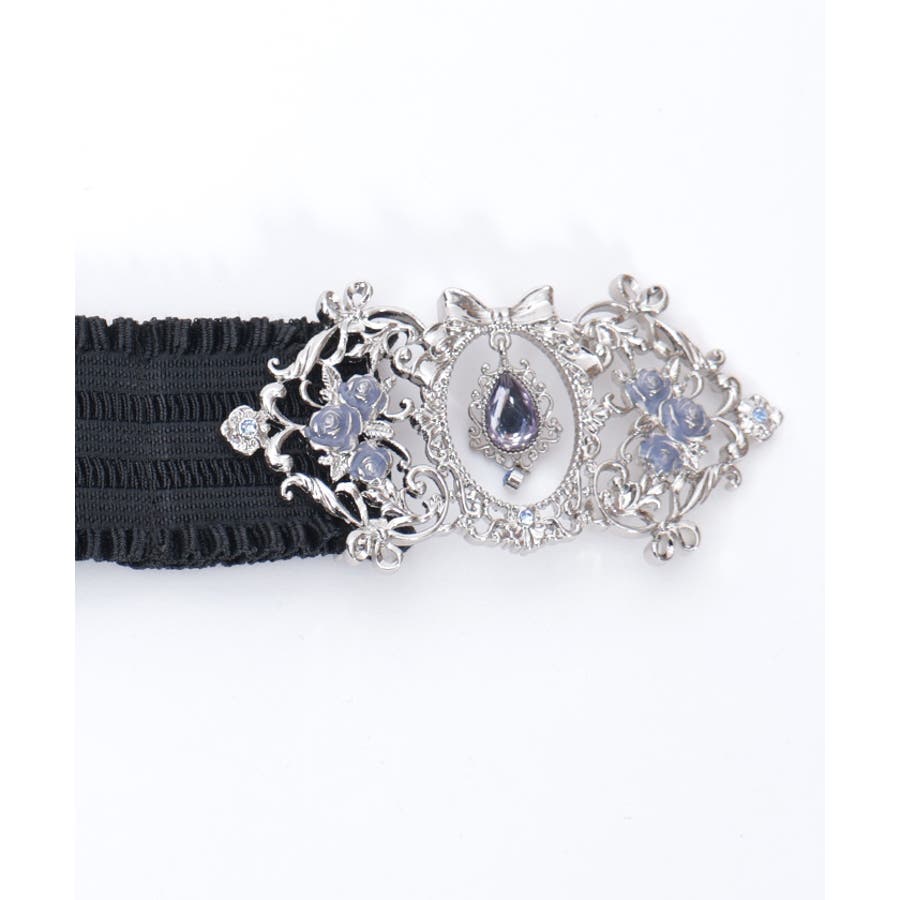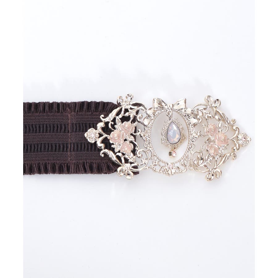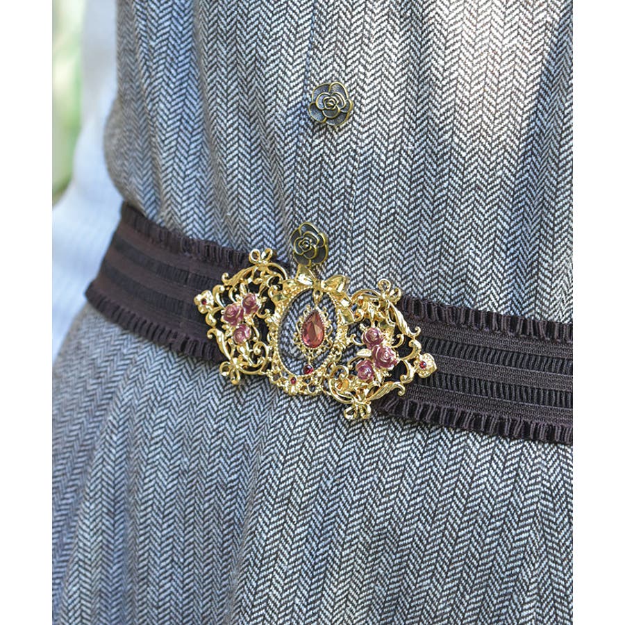 オーナメント風の装飾に鮮やかな薔薇が映えるゴムベルトです。