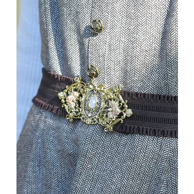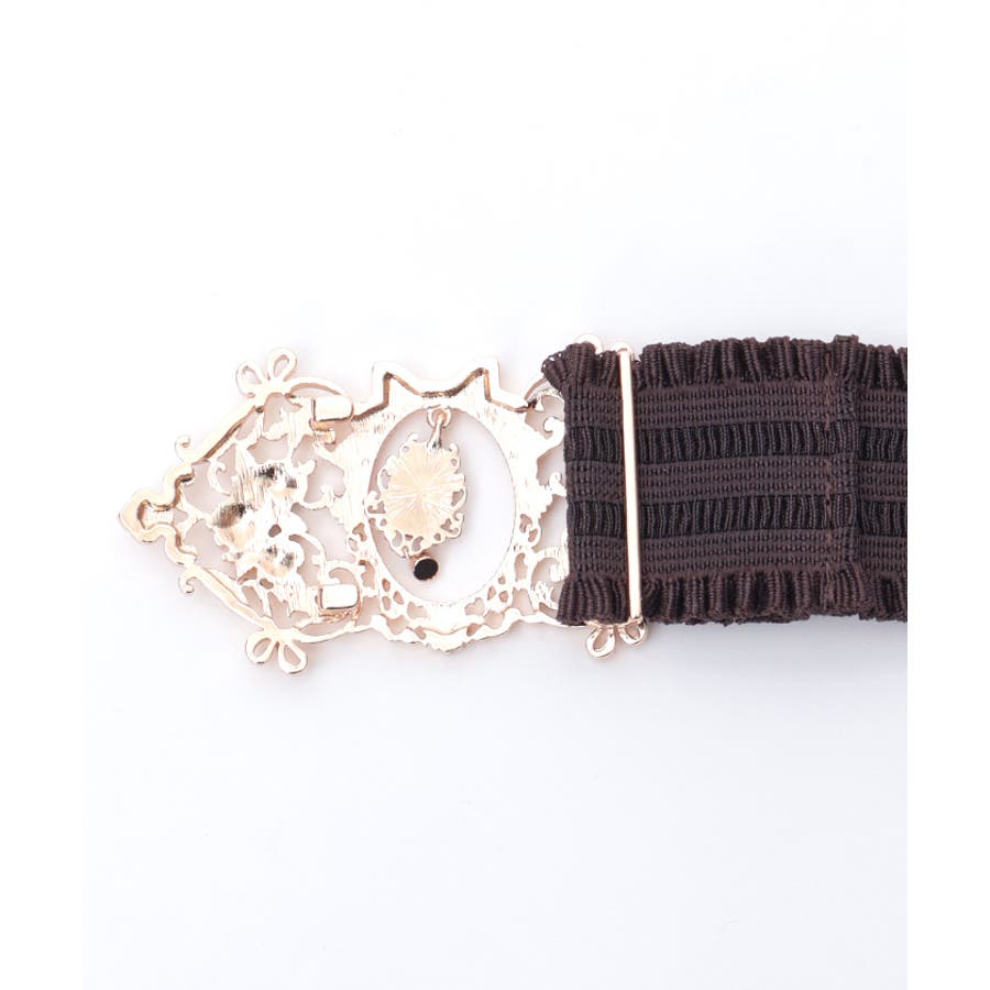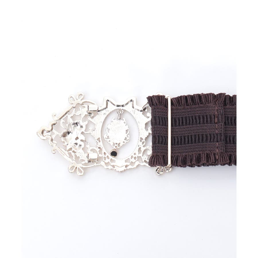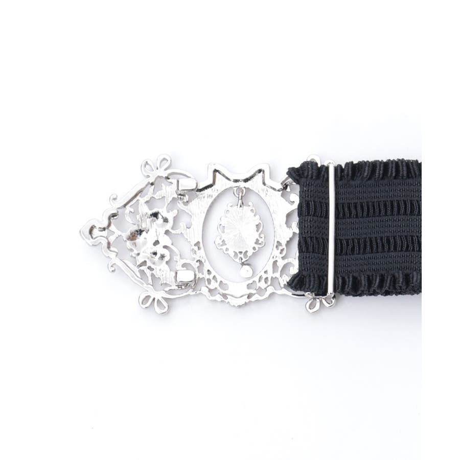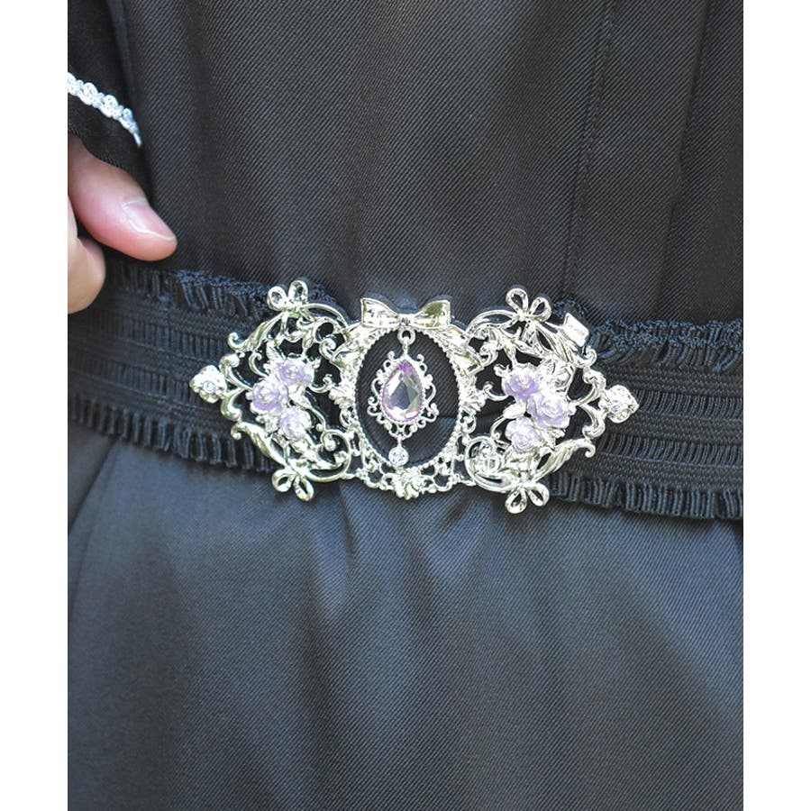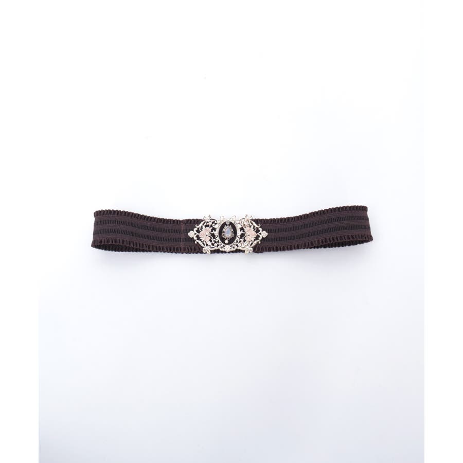 オーナメント風の装飾に鮮やかな薔薇が映えるゴムベルトです。