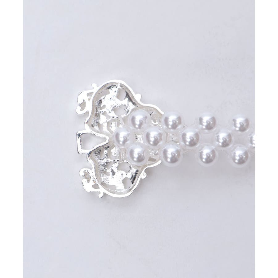 バックルには花モチーフがあしらわれており、パール・ストーンが優しく煌めくエレガントなデザインです。