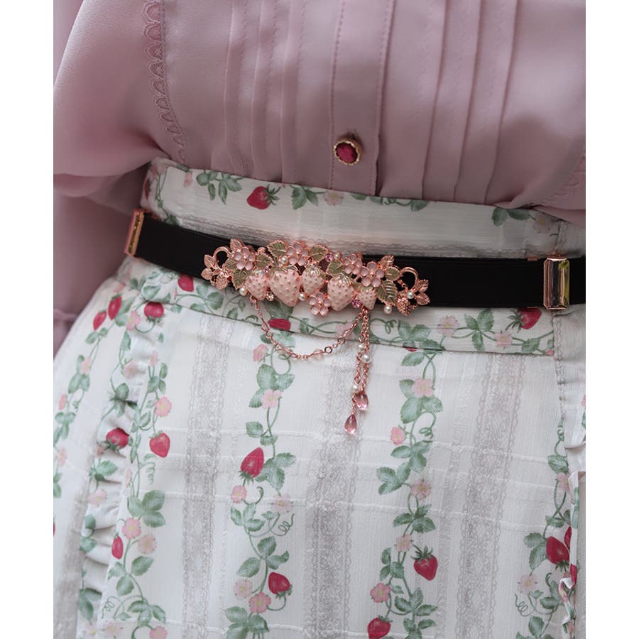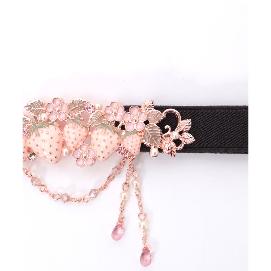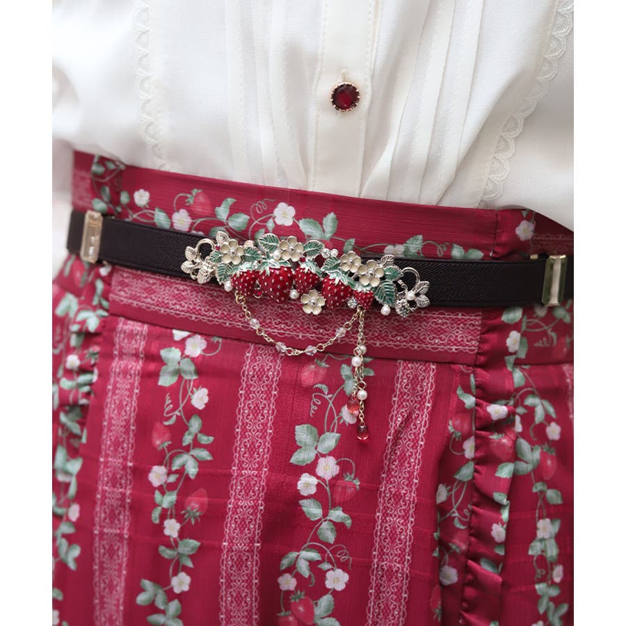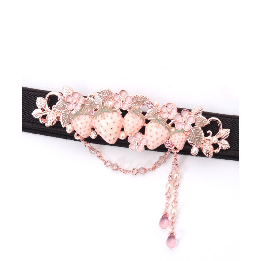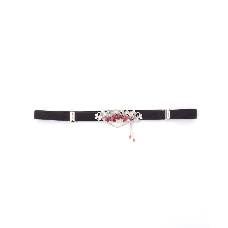 立体的な苺モチーフが並んだフェミニンな細ゴムベルトです。