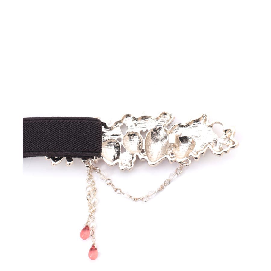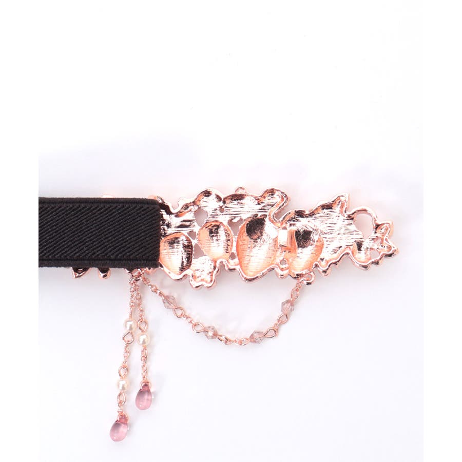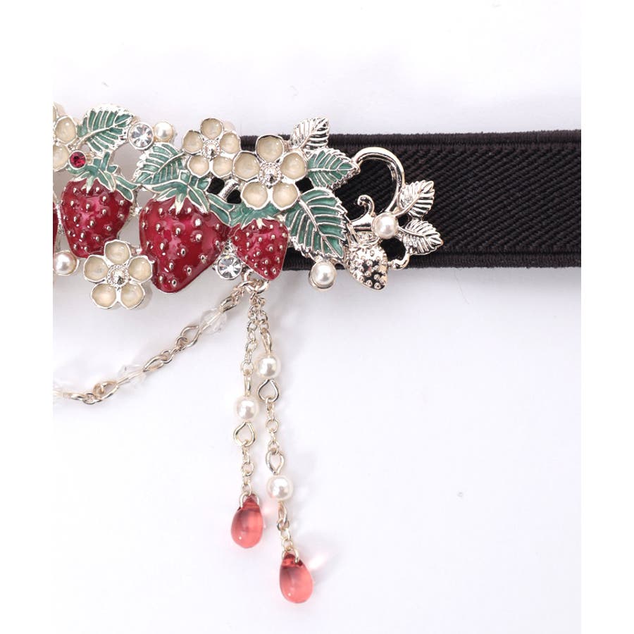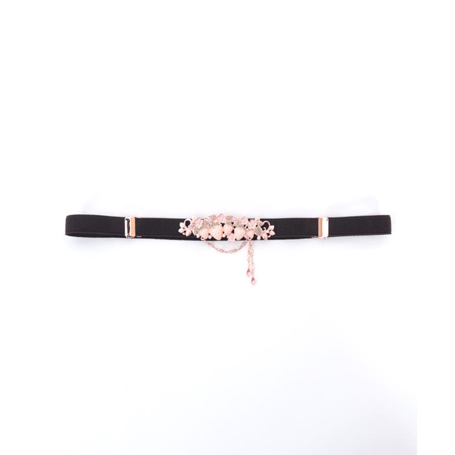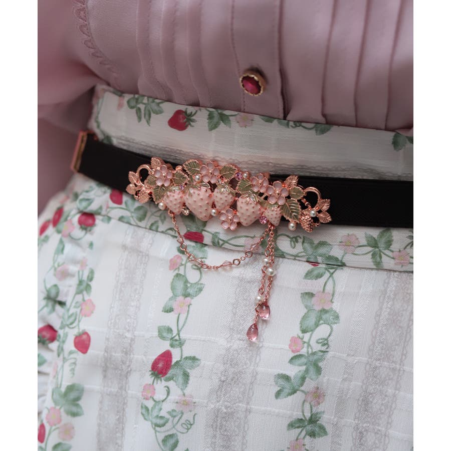 立体的な苺モチーフが並んだフェミニンな細ゴムベルトです。