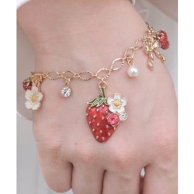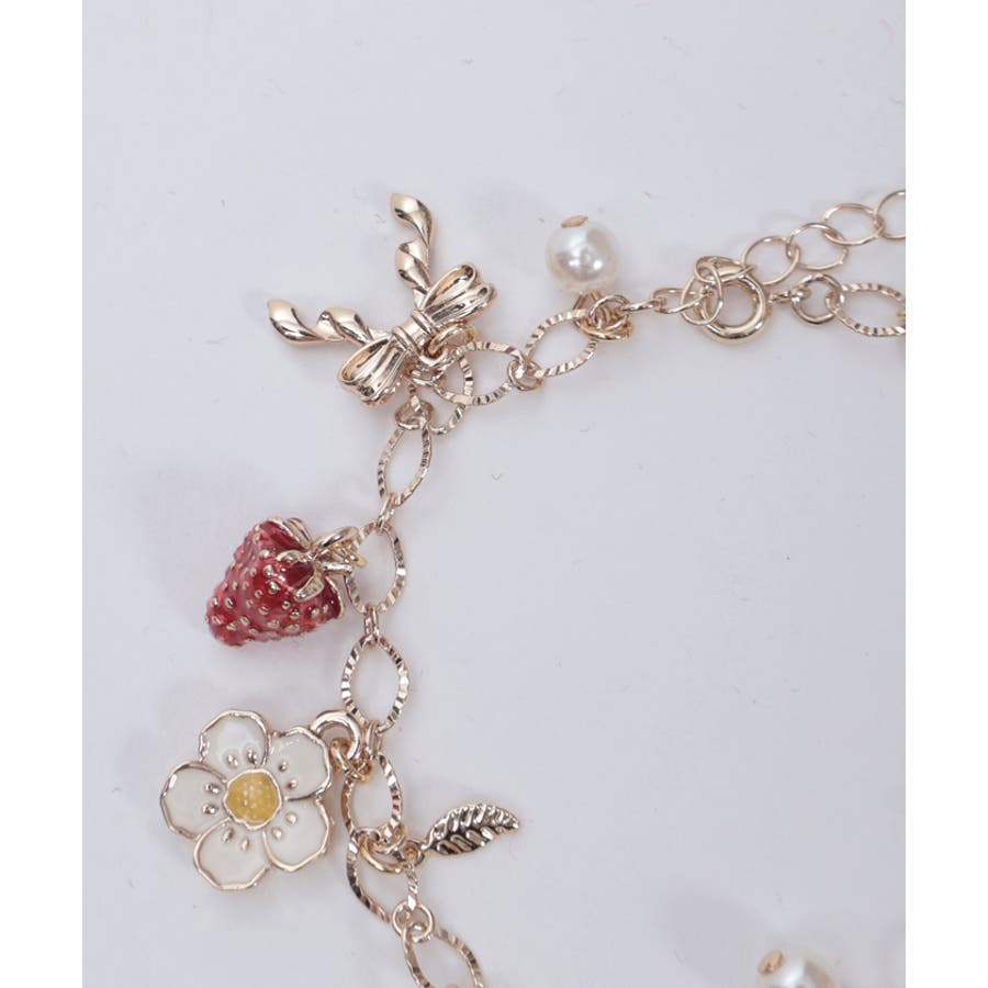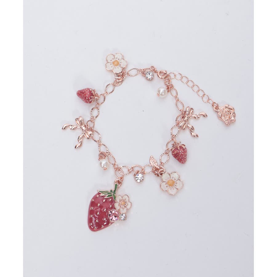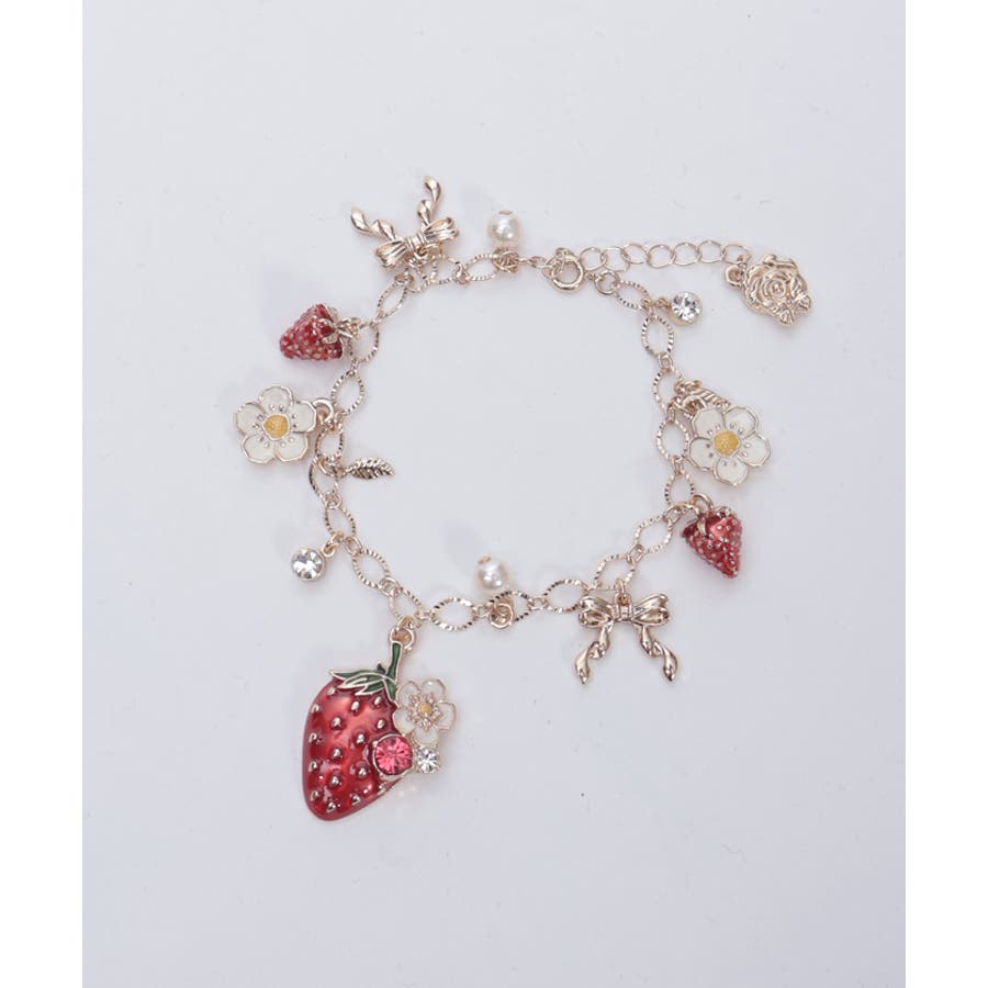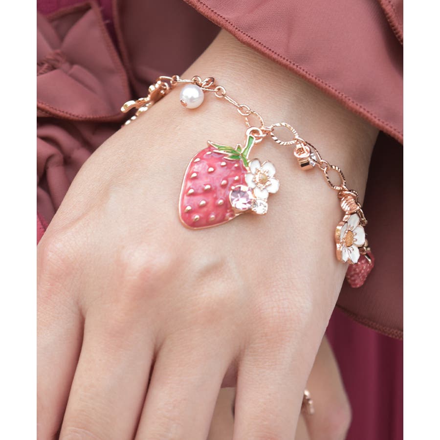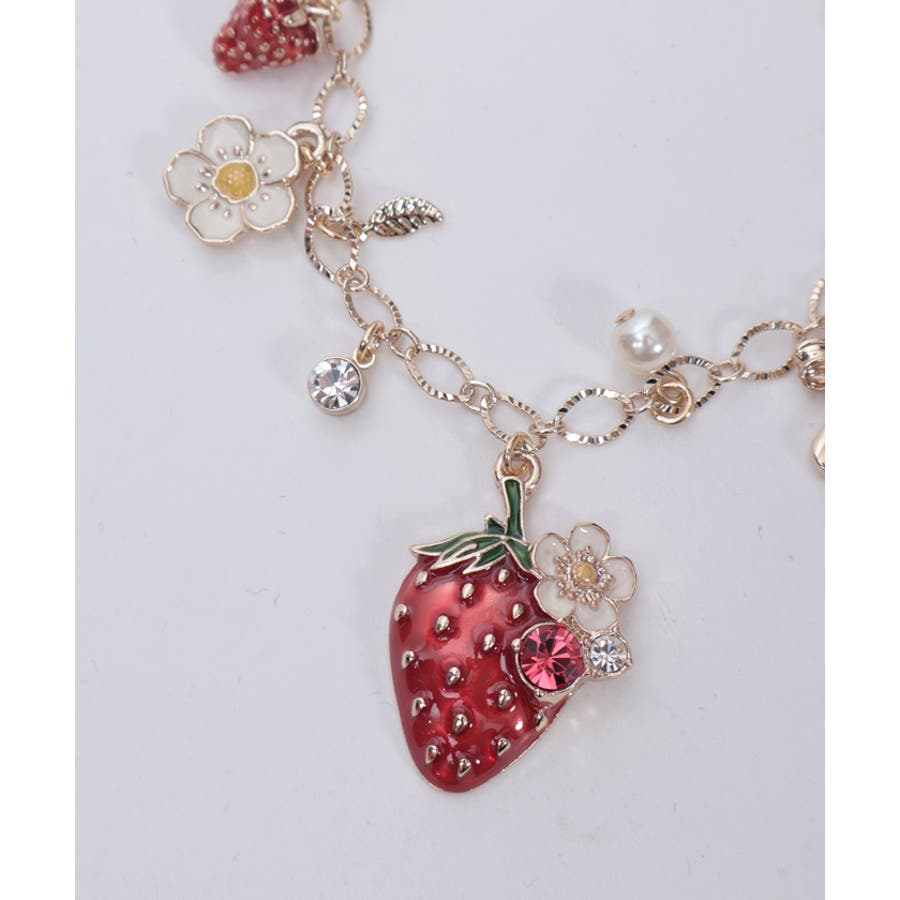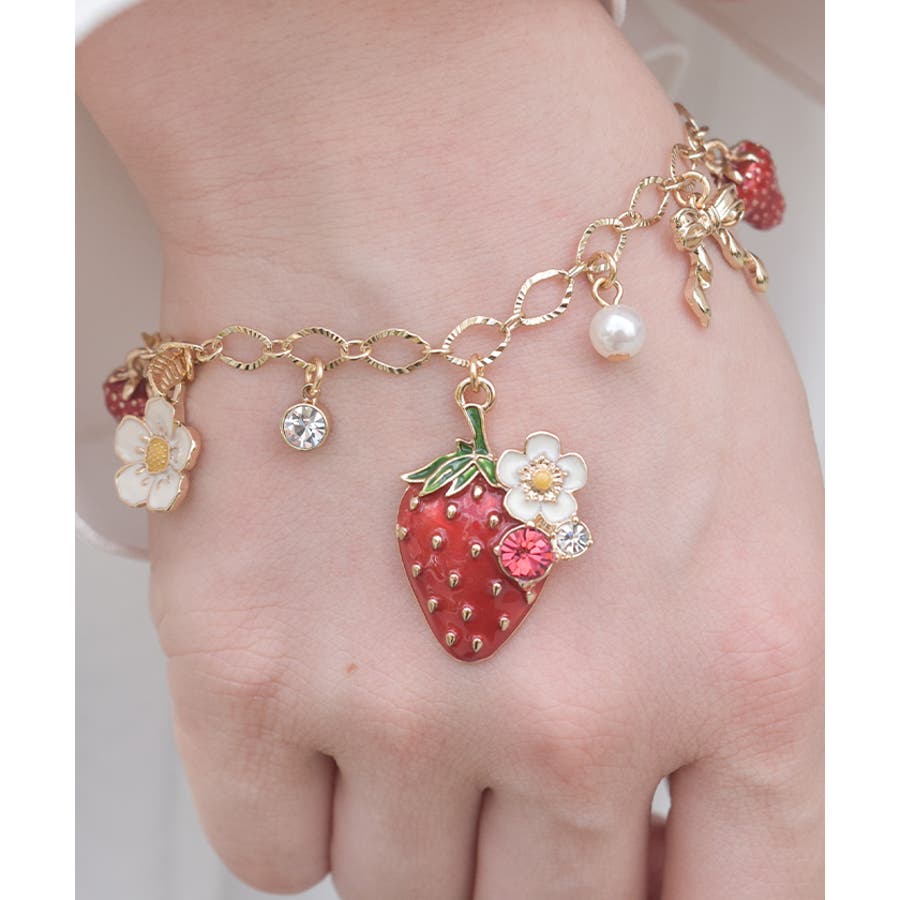 鮮やかないちごモチーフが揺れる華やかバッグチャームです。
