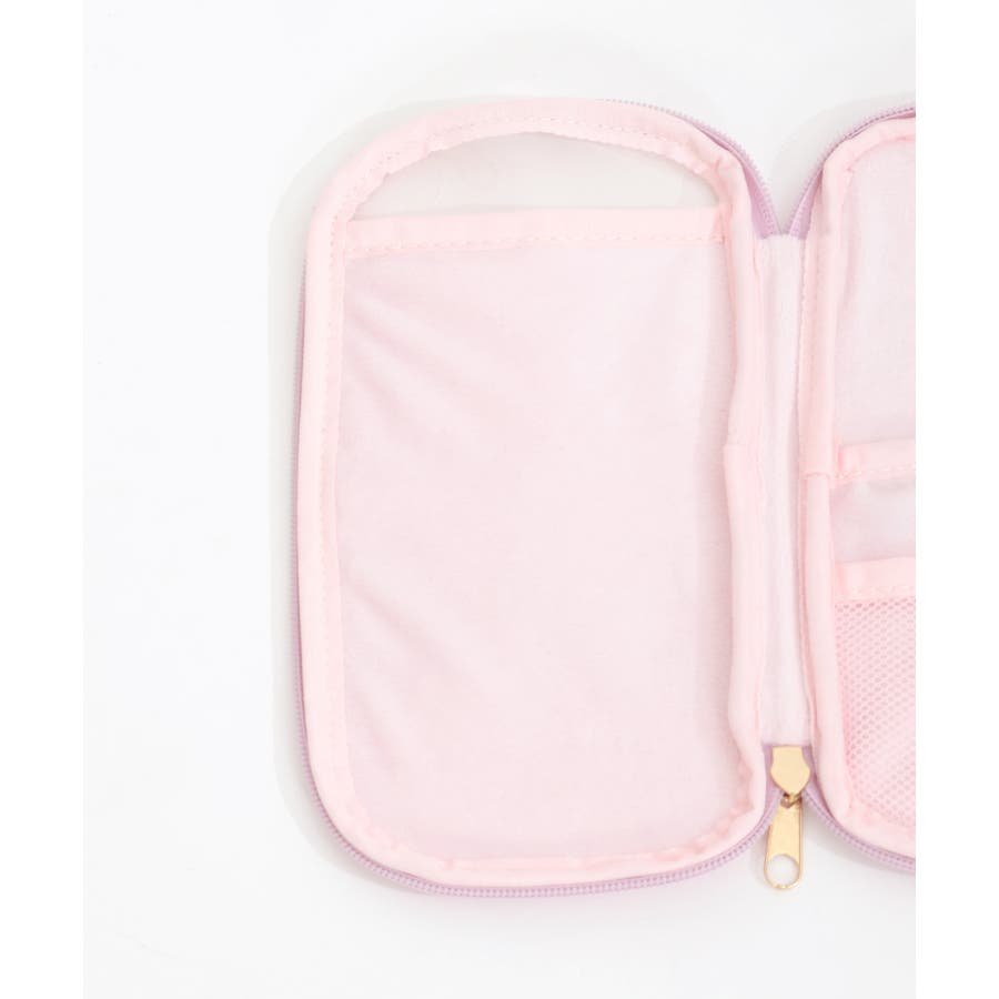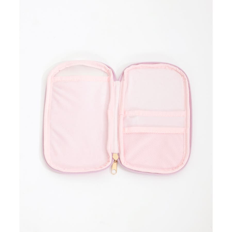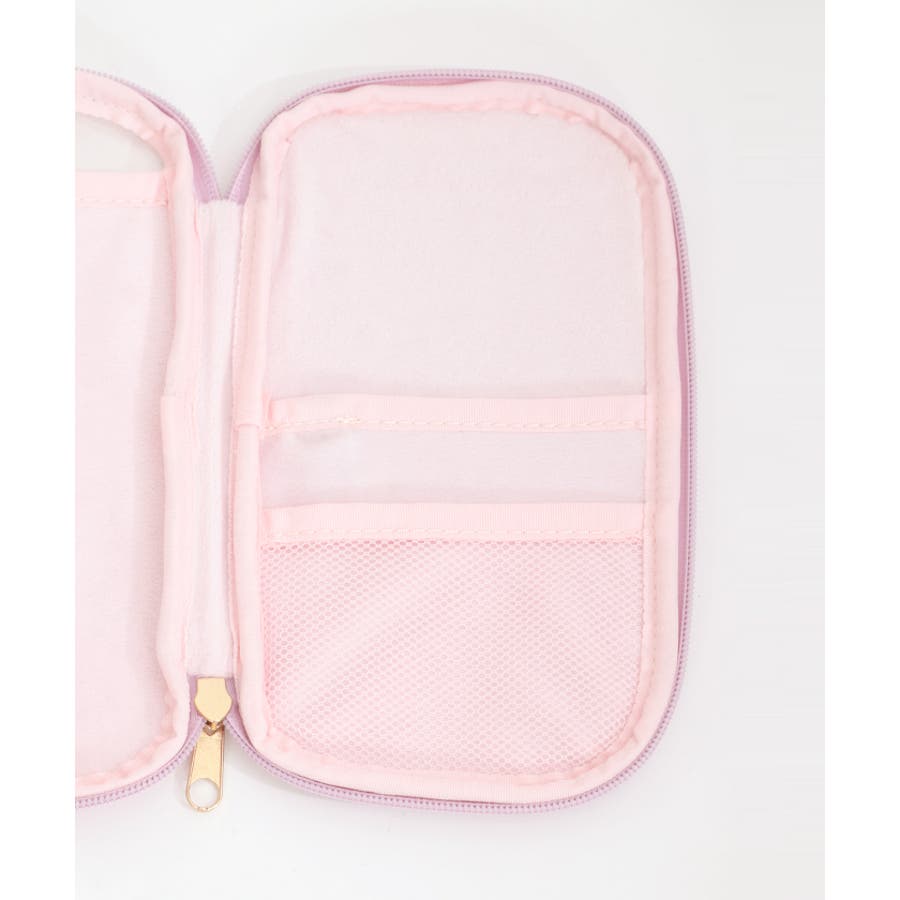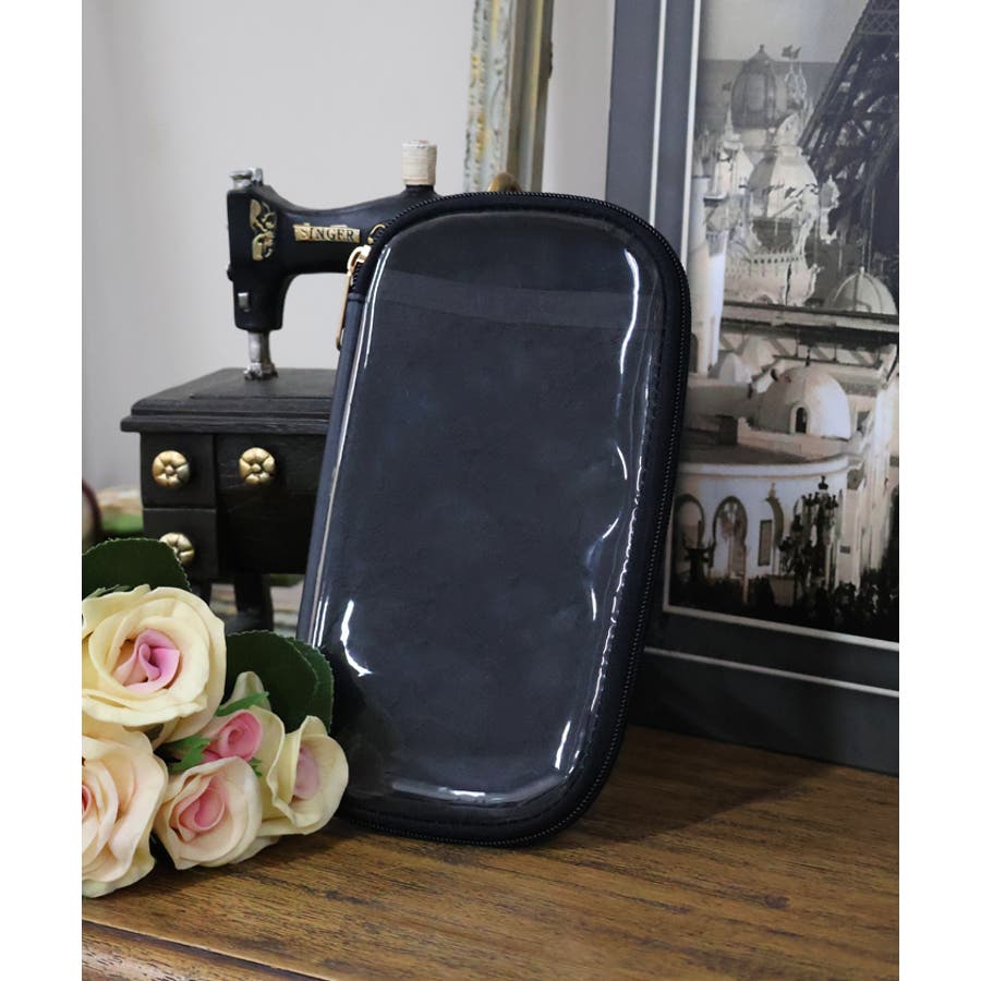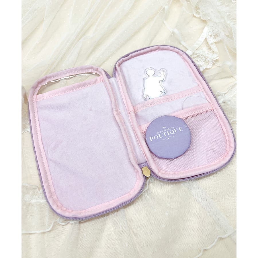 裏地がふわふわの素材になったグッズに優しい仕様です。バッグの中で幅を取らずにしっかりと推しグッズを守ってくれるマルチケースです。刺繍入りの合皮面は硬い芯が入っている為、折れることはありません。正面はクリア素材になっており、推しを表面に見えるように入れることができます。見開くとポケットが2段ついています。アクリルスタンドと土台を分けて入れることができます。