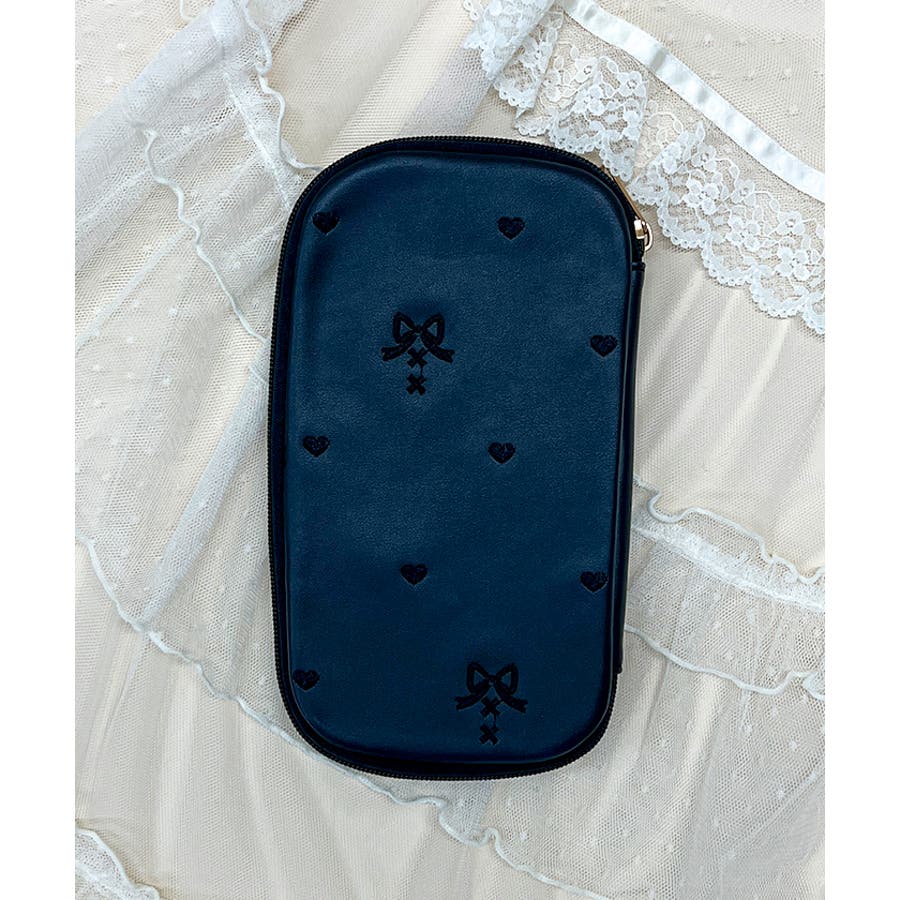 コーデを選ばないシンプルめのデザインですが、さりげなく入ったレースアップリボンやハートの刺繍が可愛いアイテムです。