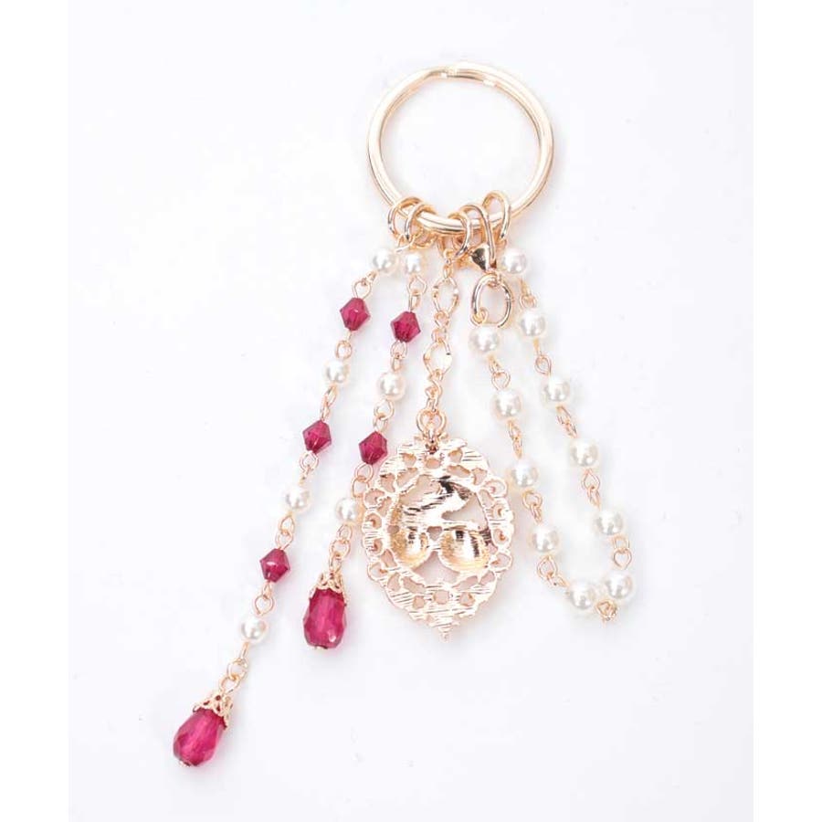 サイドには鮮やかなビーズとパールを組み合わせたチェーンを添えて、華やかなアクセントをプラス。