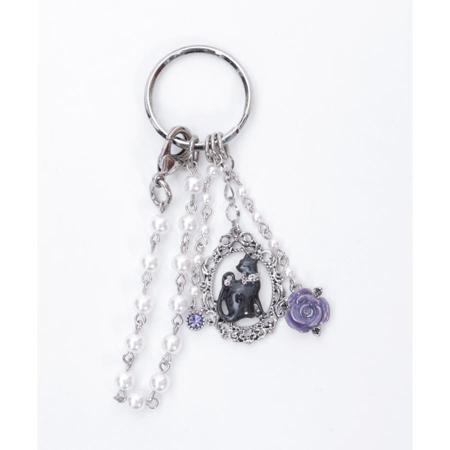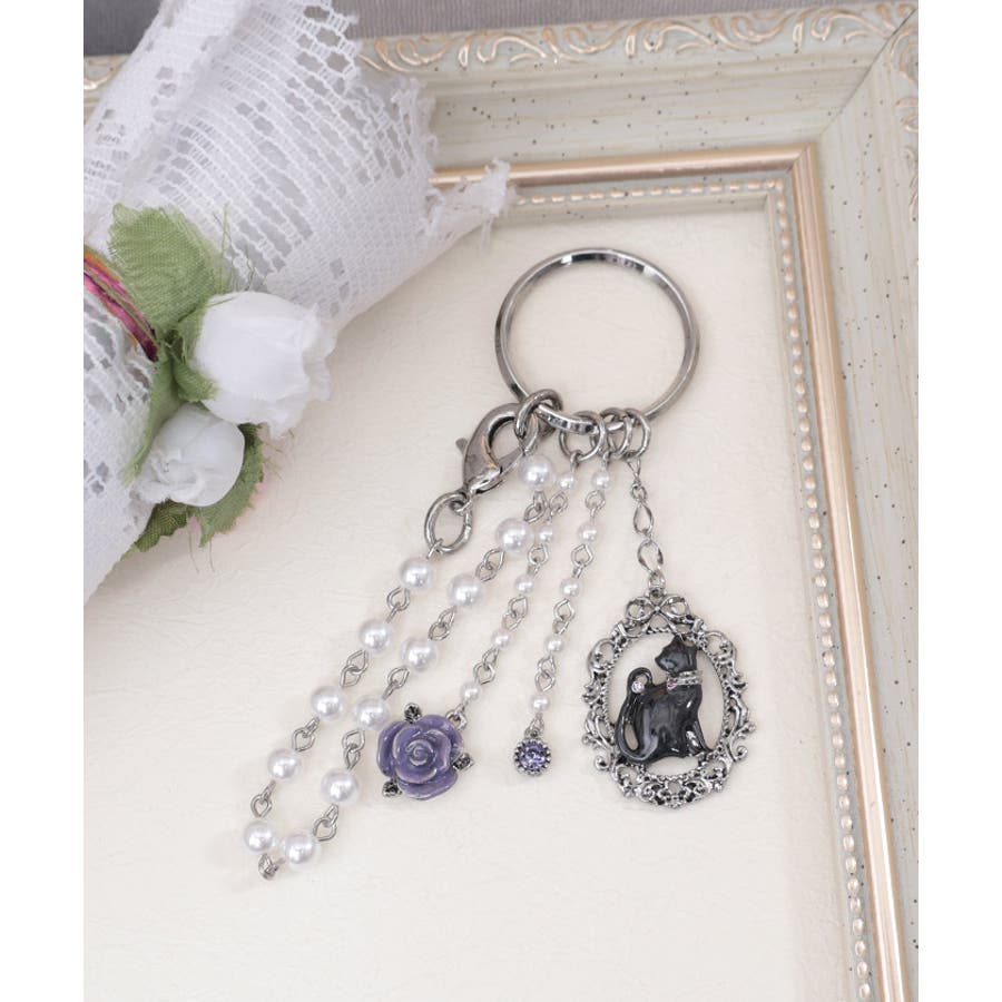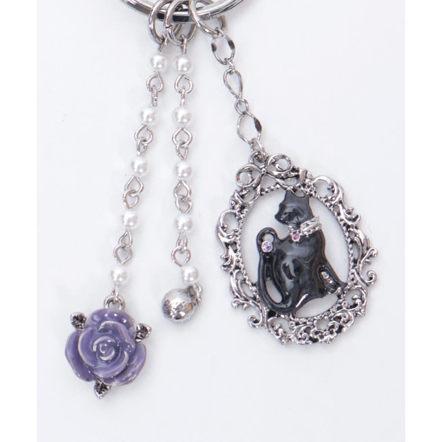 繊細に模られたネコとリボンのモチーフを組み合わせた華やかなバッグチャームです。