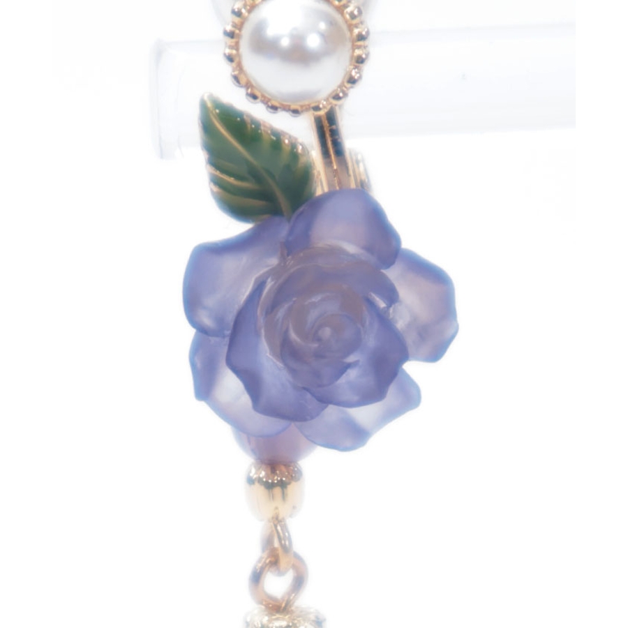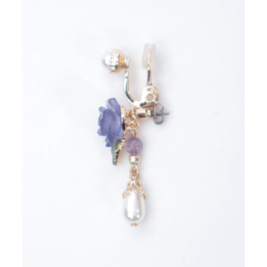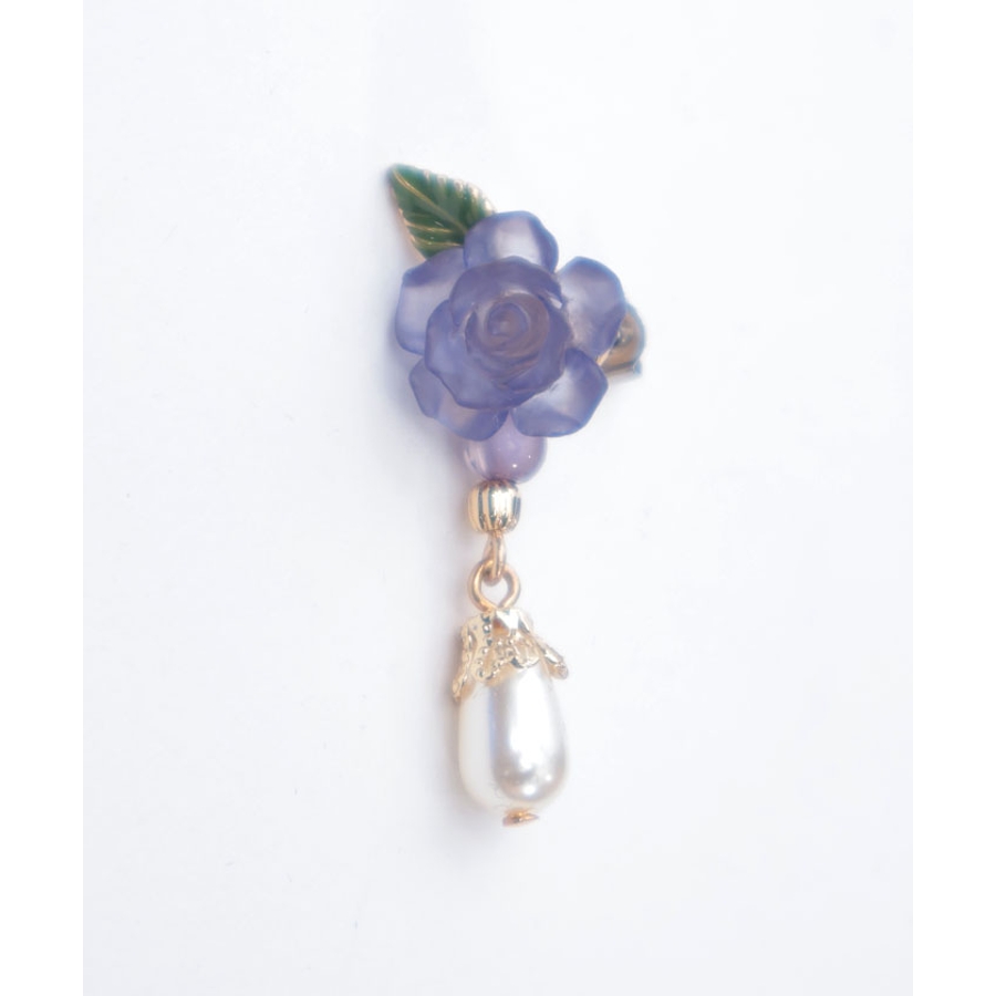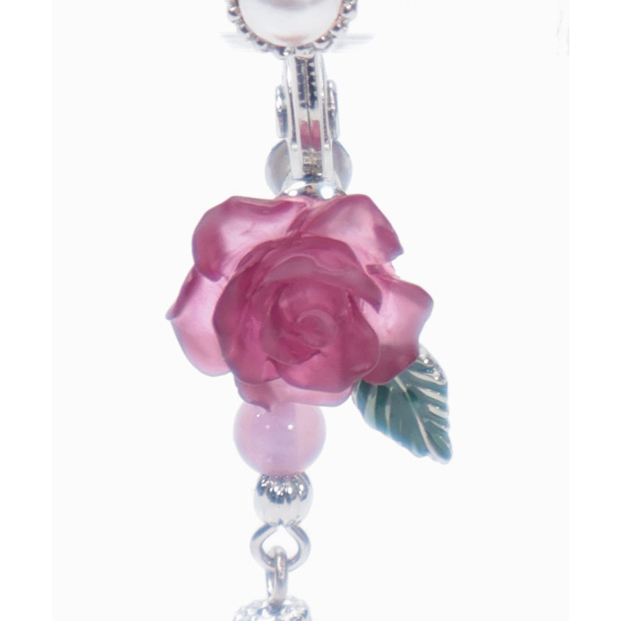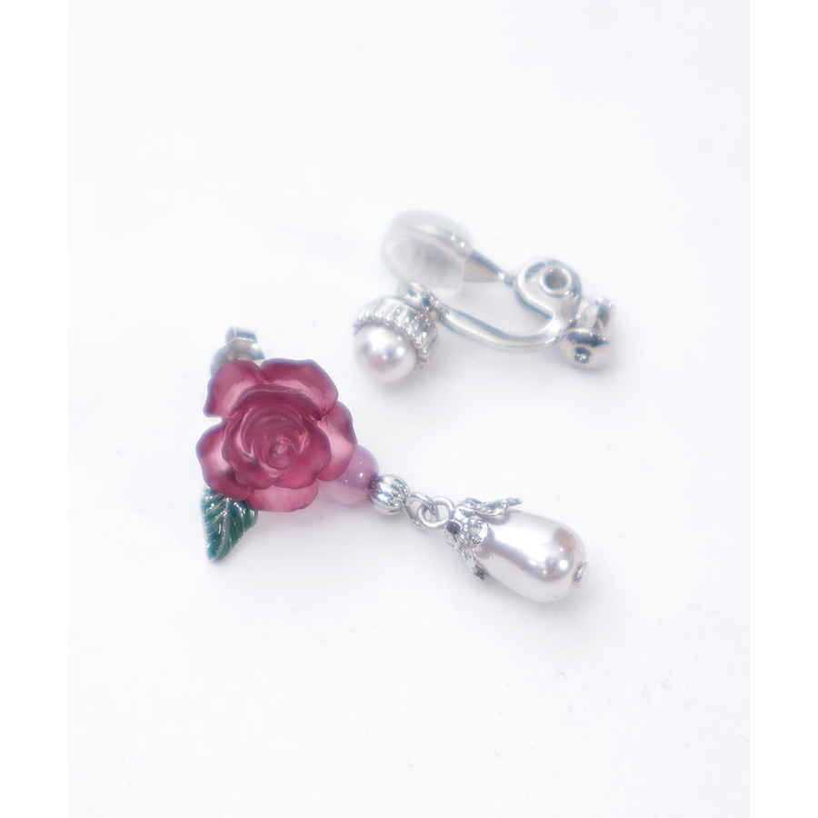 小ぶりながらも色鮮やかさが目を惹くローズモチーフに、上品なパールが揺れる華奢なデザイン。