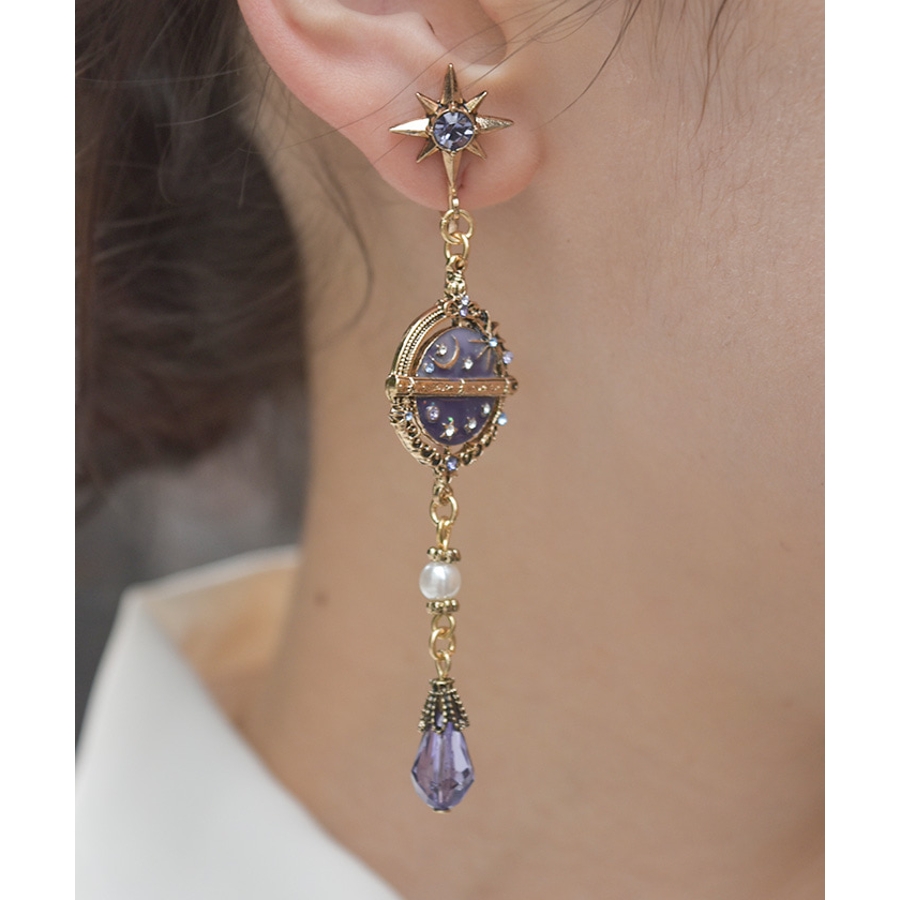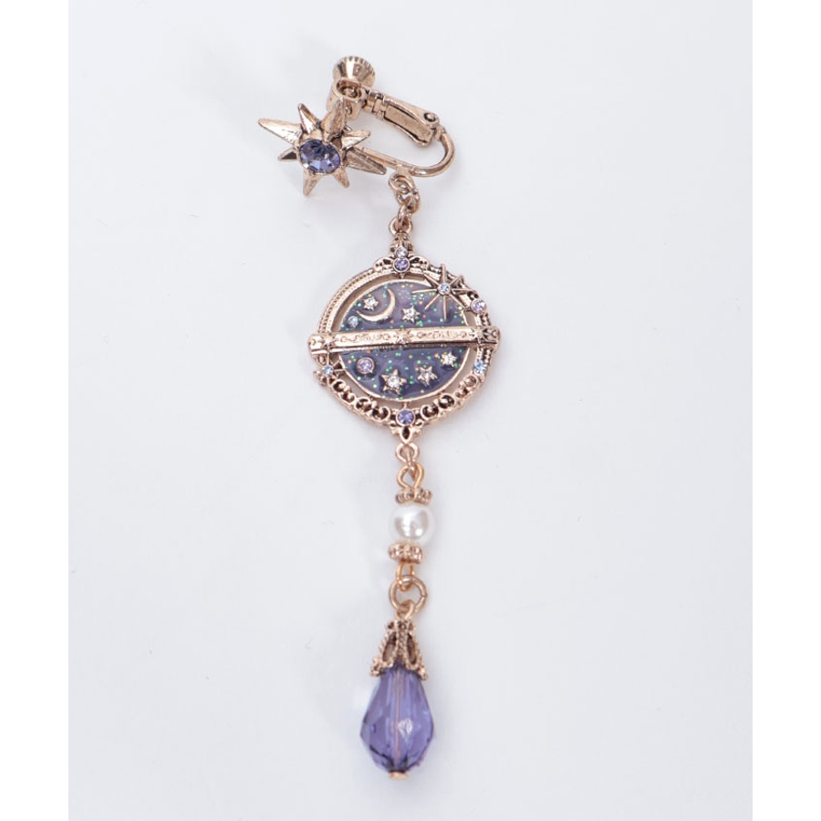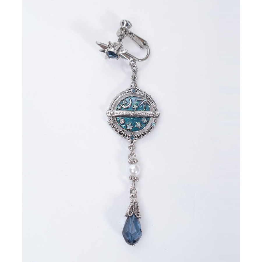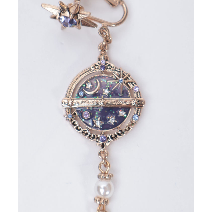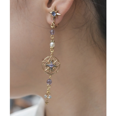細部の模様や装飾まで表現された天球儀と、繊細な星モチーフが揺れる華やかなアシンメトリーデザイン。