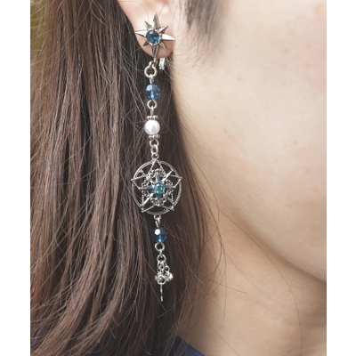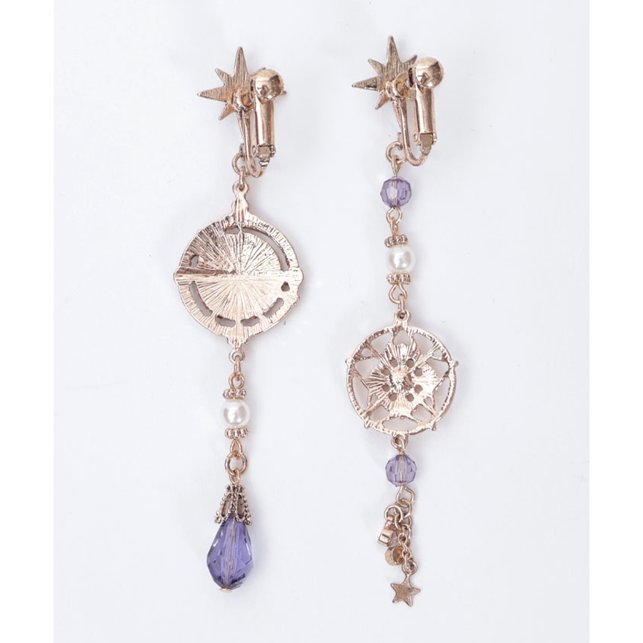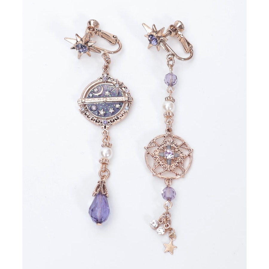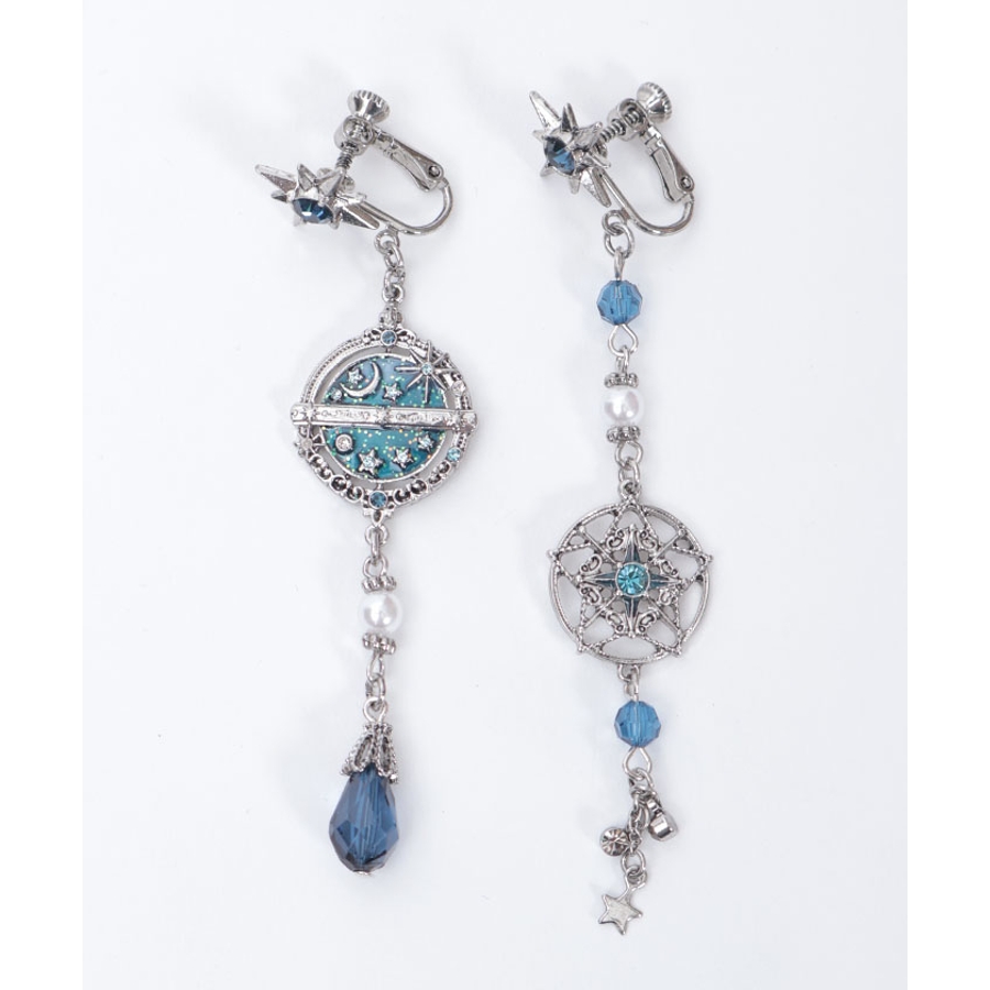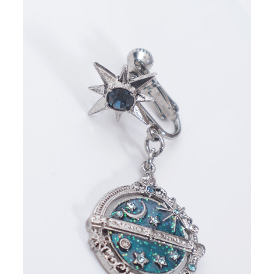 細部の模様や装飾まで表現された天球儀と、繊細な星モチーフが揺れる華やかなアシンメトリーデザイン。
