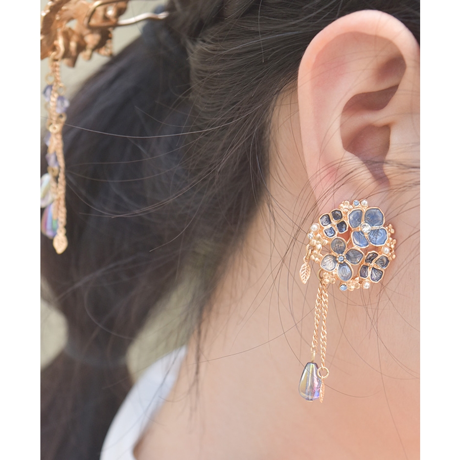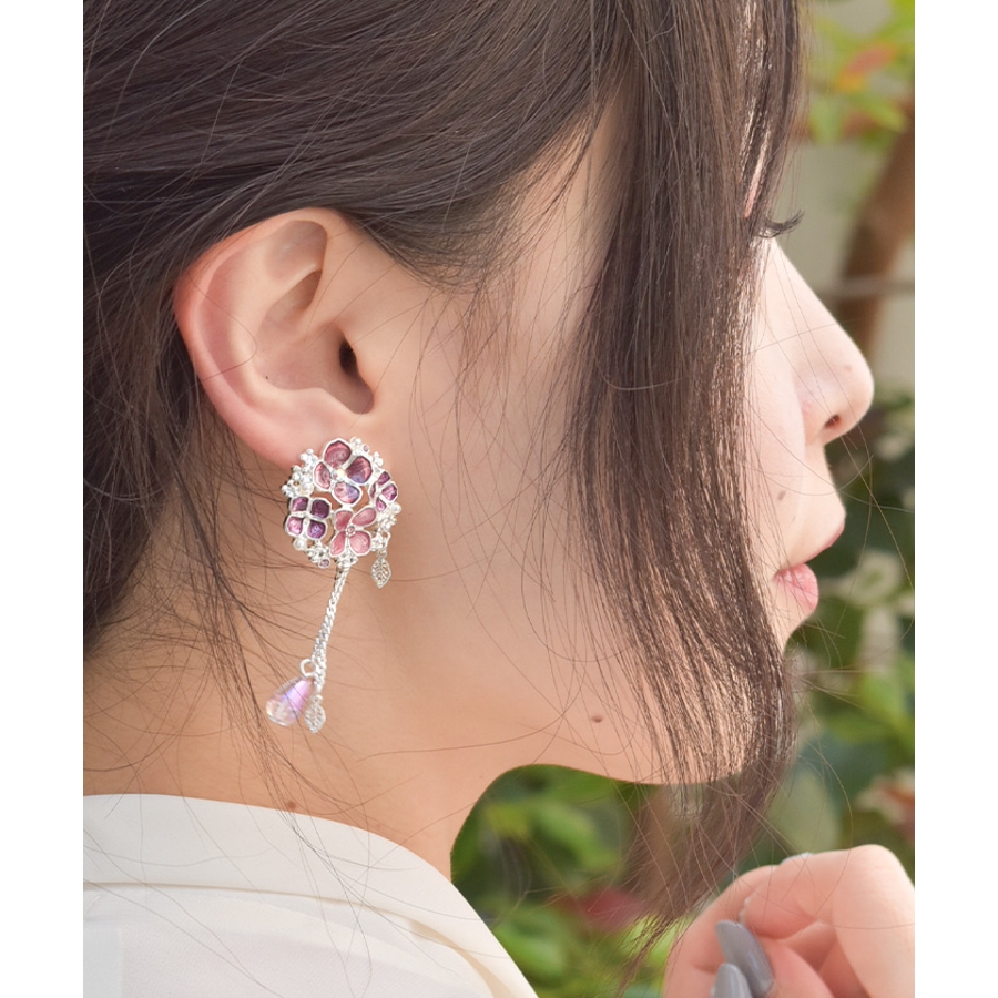 繊細な紫陽花モチーフが耳元を飾るイヤリングです。