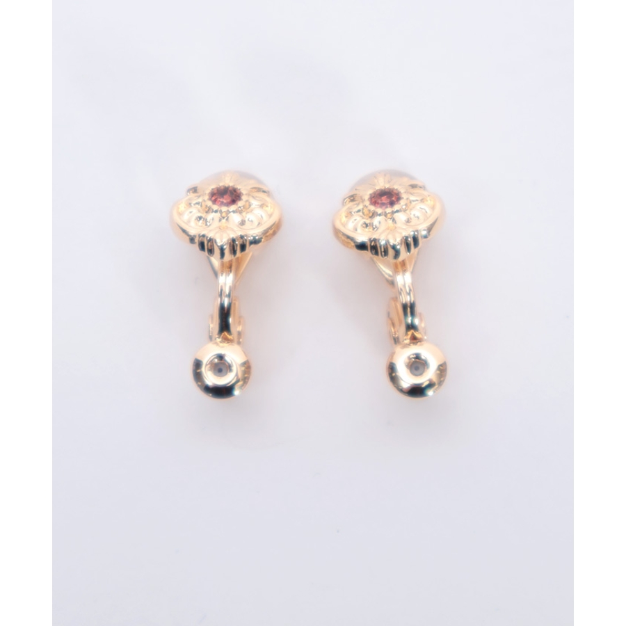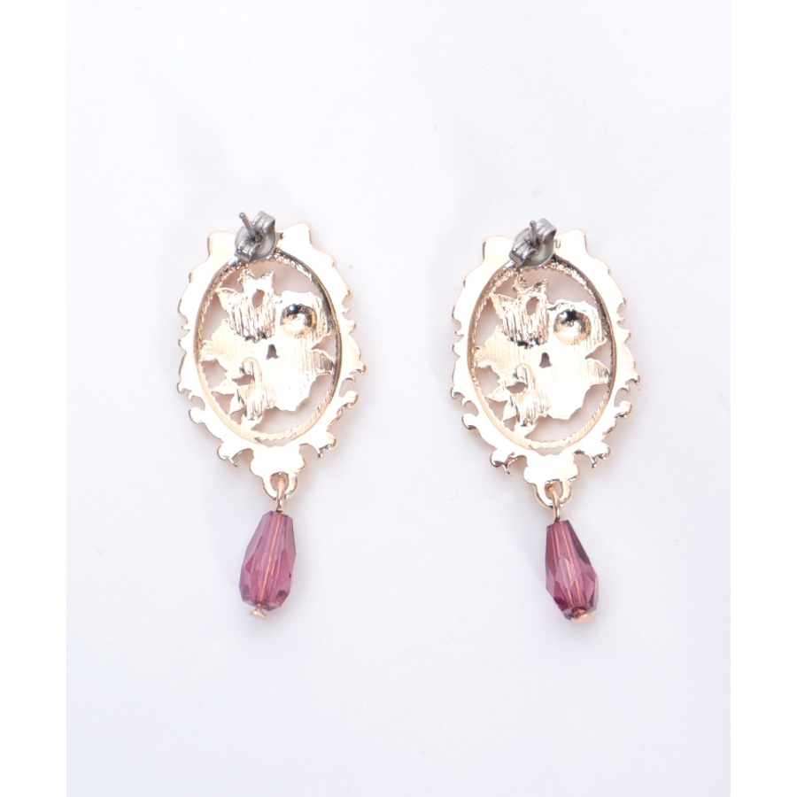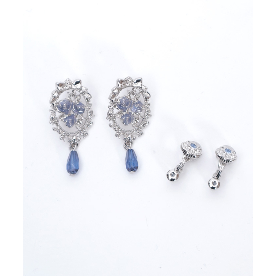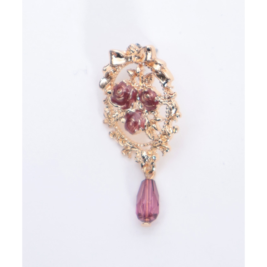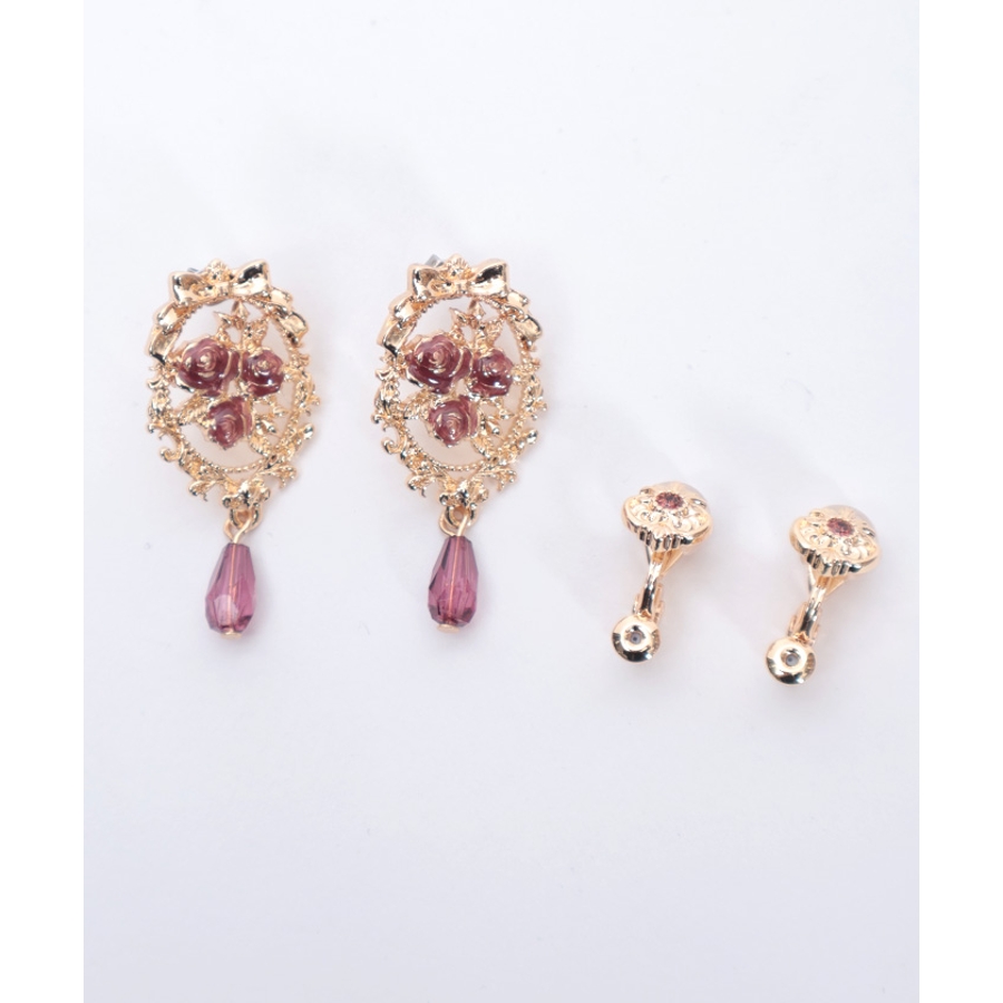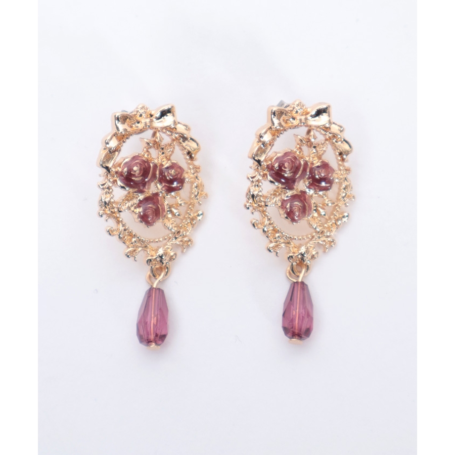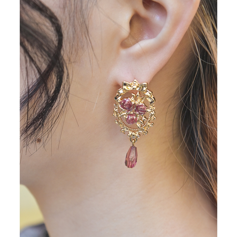 オーナメント風の装飾に鮮やかな薔薇が映えるイヤリング&ピアスです。