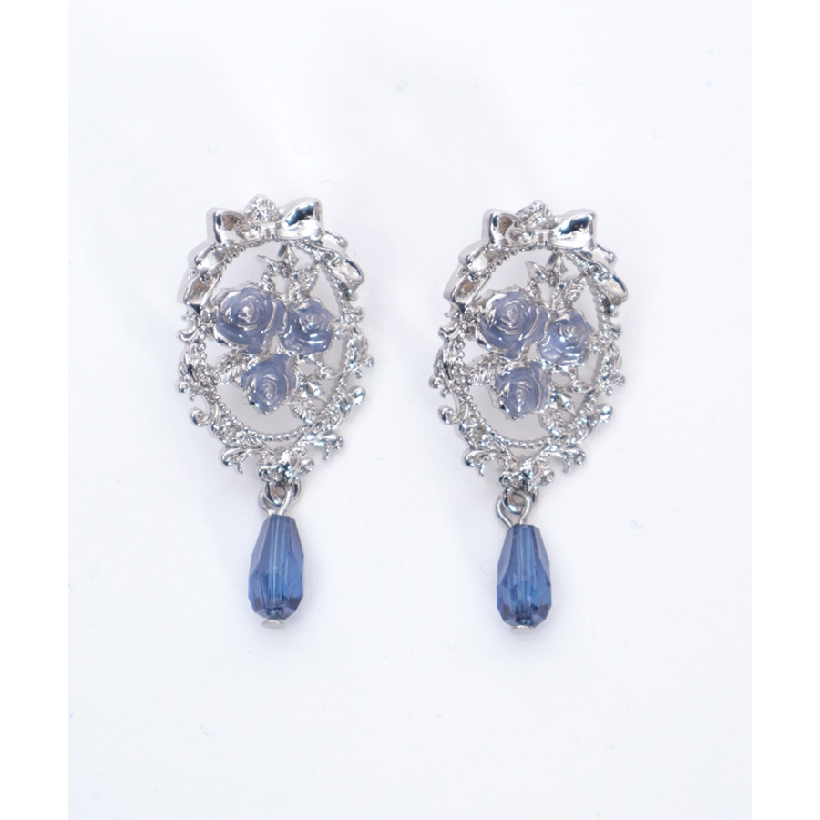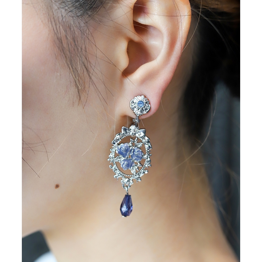 繊細な装飾にはさりげなくリボンがあしらわれ、華やかな薔薇モチーフ耳元を飾るデザイン。