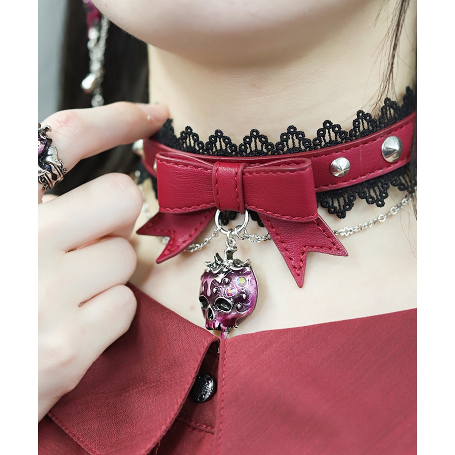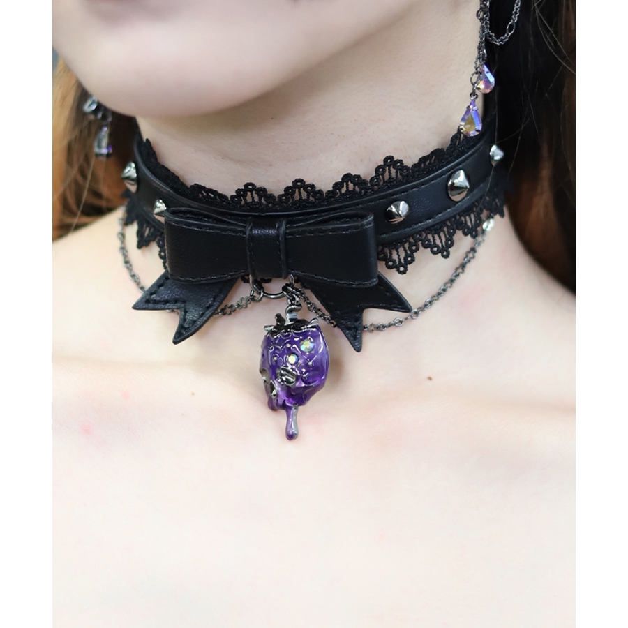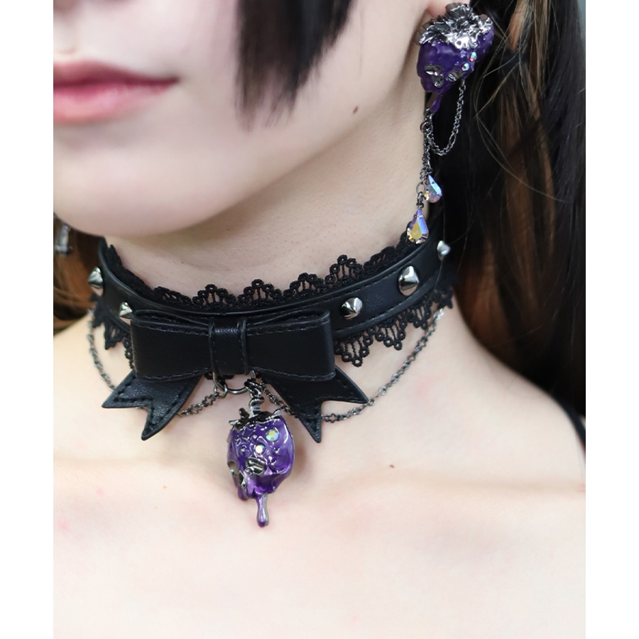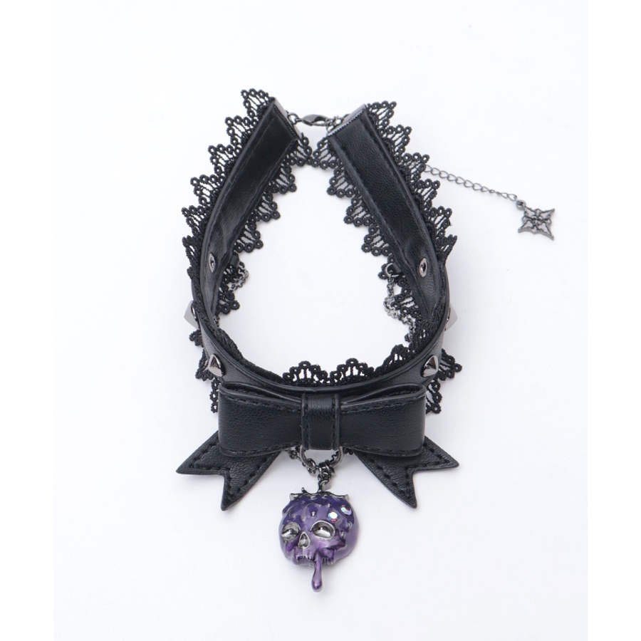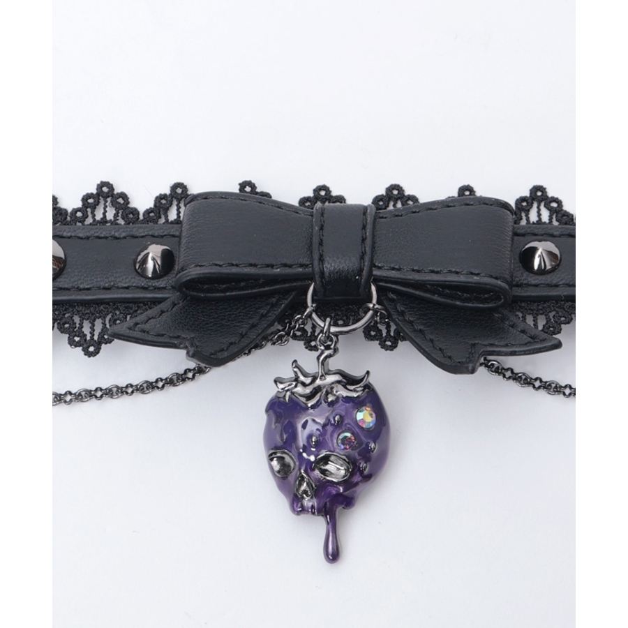 毒々しいスカルなイチゴをあしらった合皮チョーカーです。
