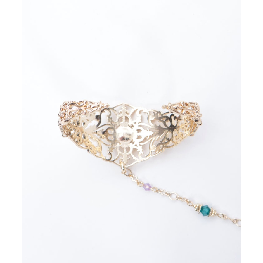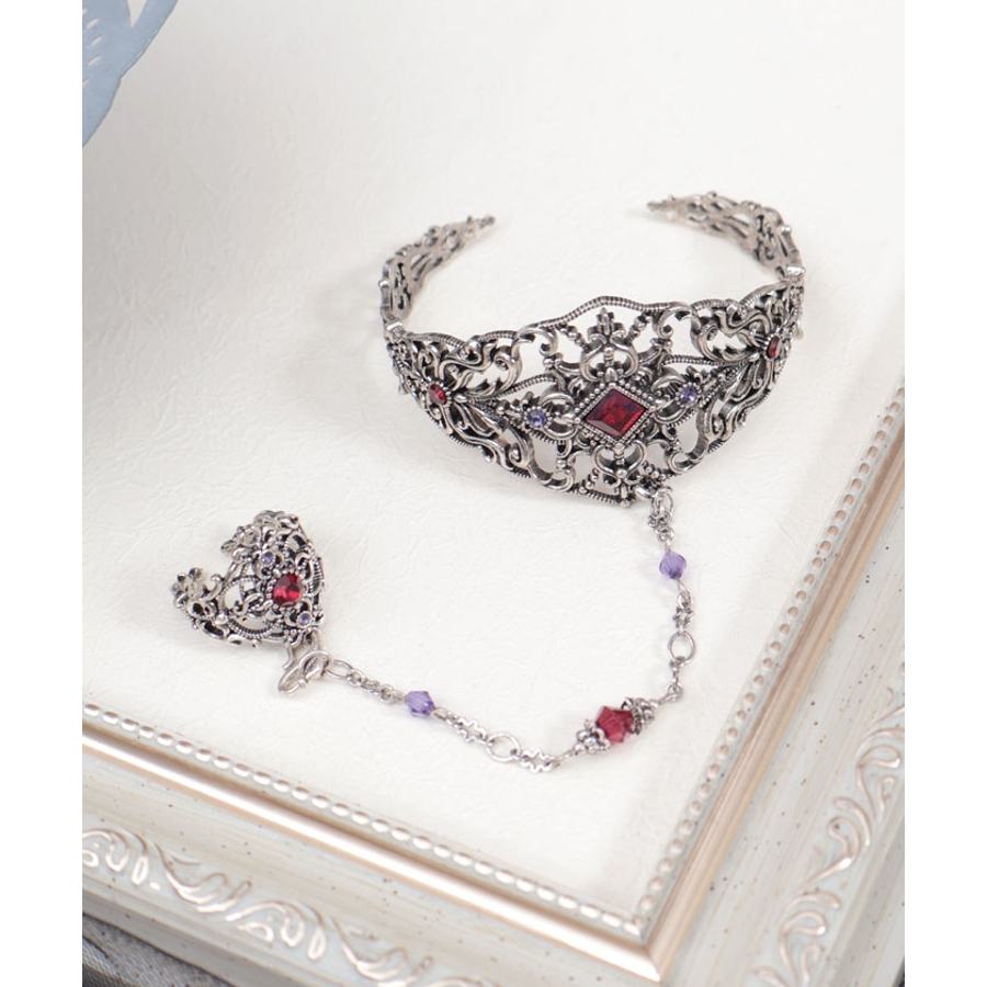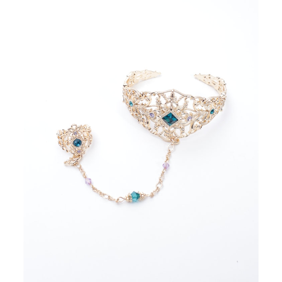 リングとバングルがチェーンでつながっているタイプのアクセサリーです。