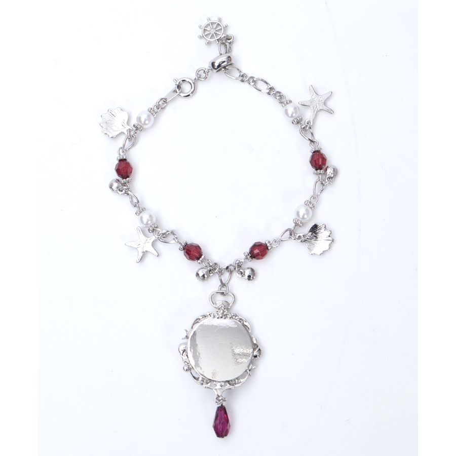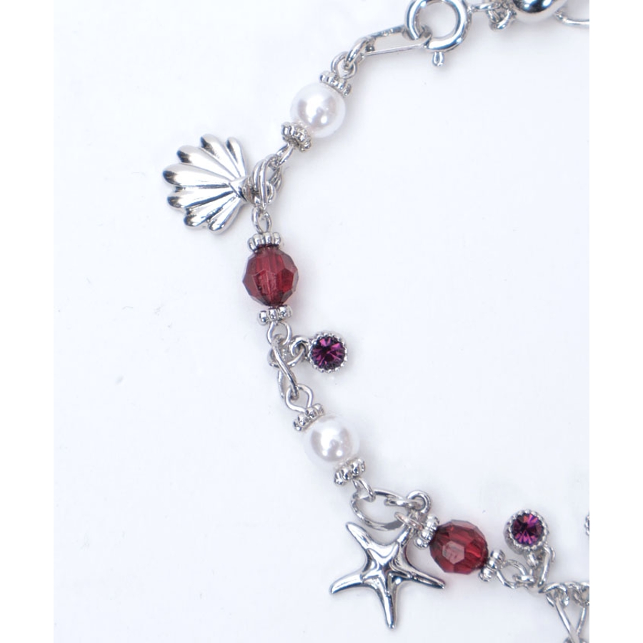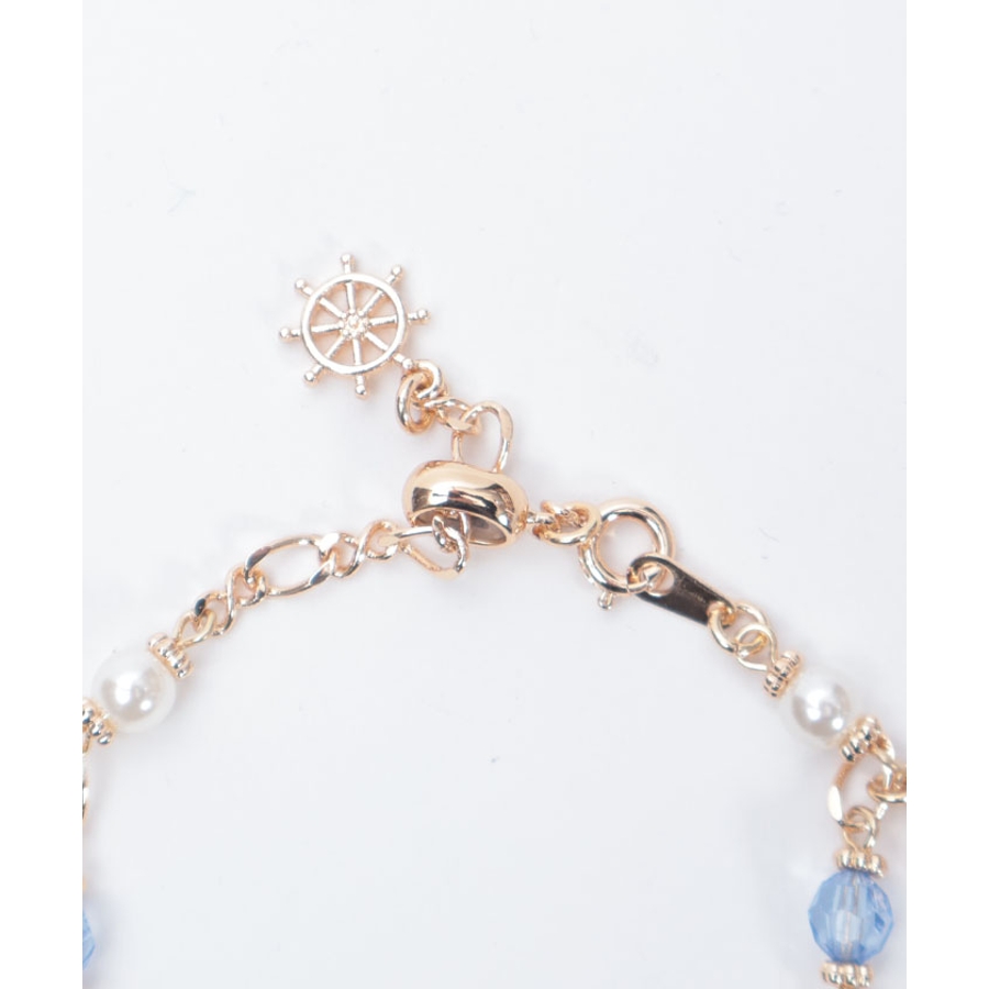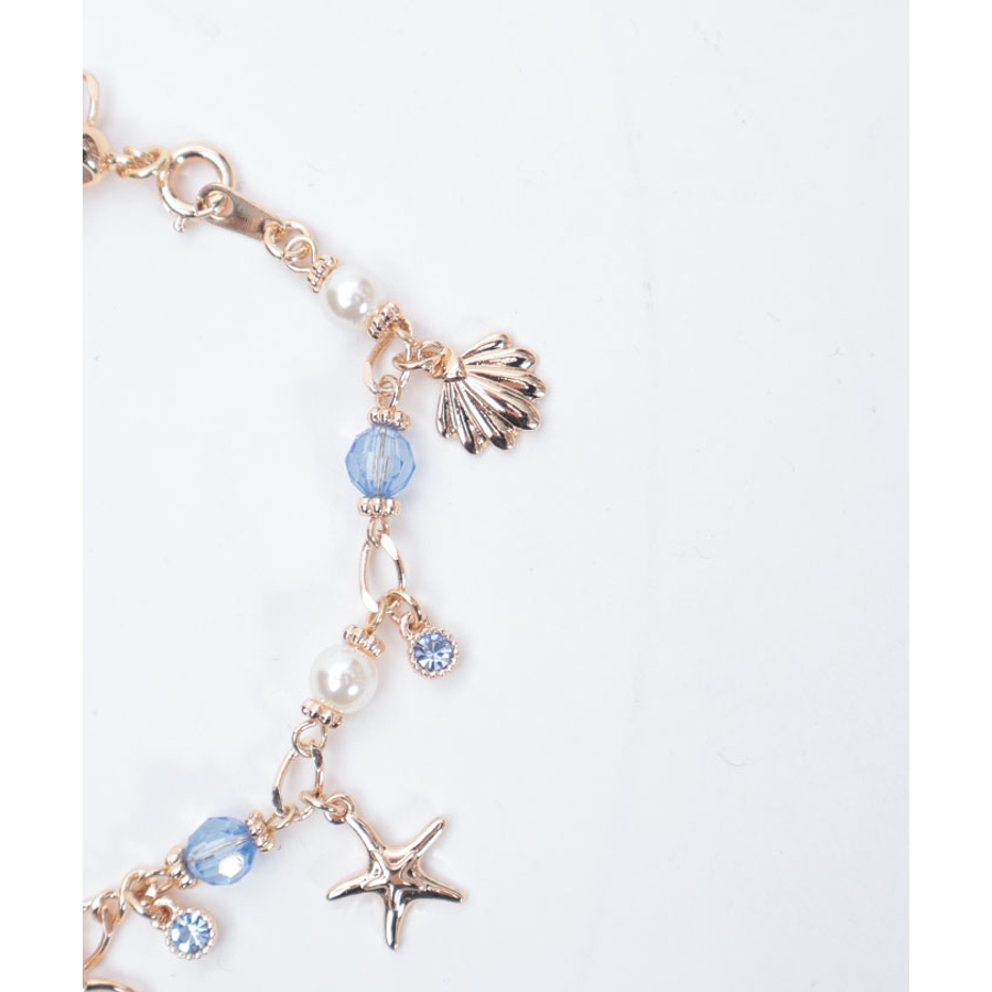 ビーズとパールを交互に並べたチェーンに、シェルやヒトデのマリンモチーフをあしらい、お手元を華やかに飾ります。