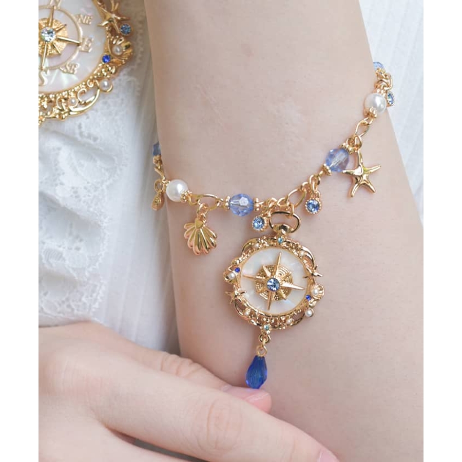 ”希望” ”安全” ”正しき道へと導く” お守りとしても人気の羅針盤をモチーフに落とし込み、爽やかなマリンテイストに仕上げたブレスレットです。