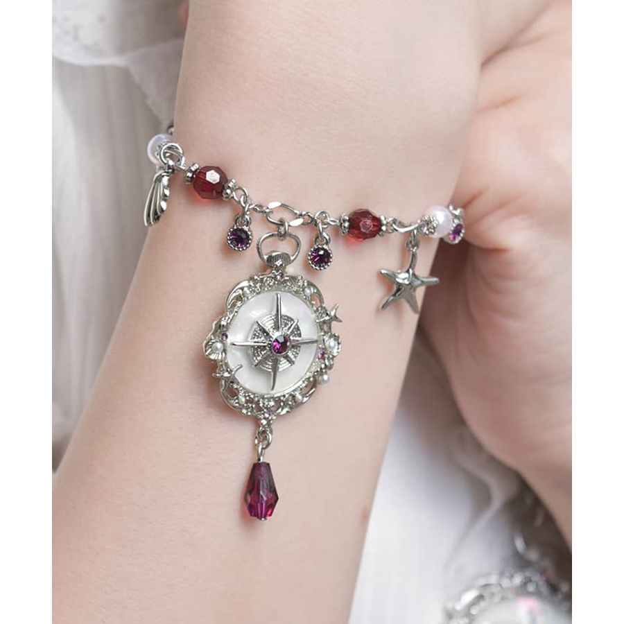 存在感のある羅針盤モチーフは宝石をイメージしたラインストーンを散りばめ、キラキラと輝きます。