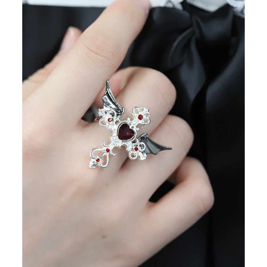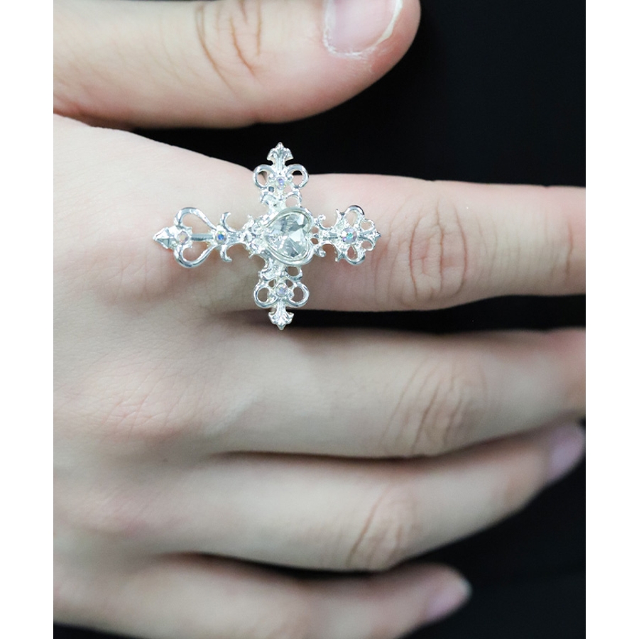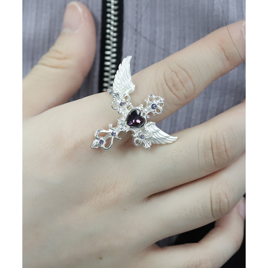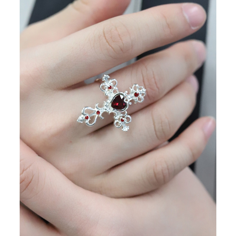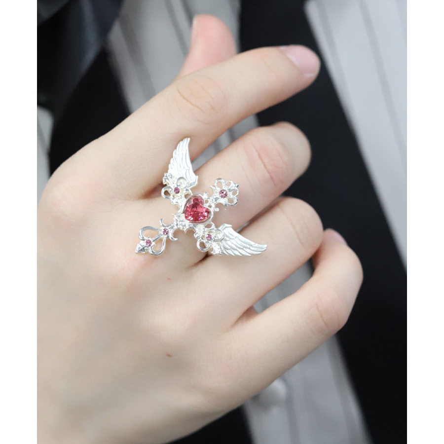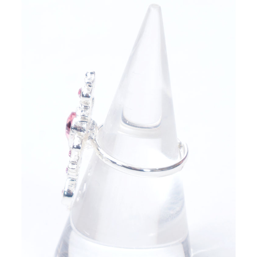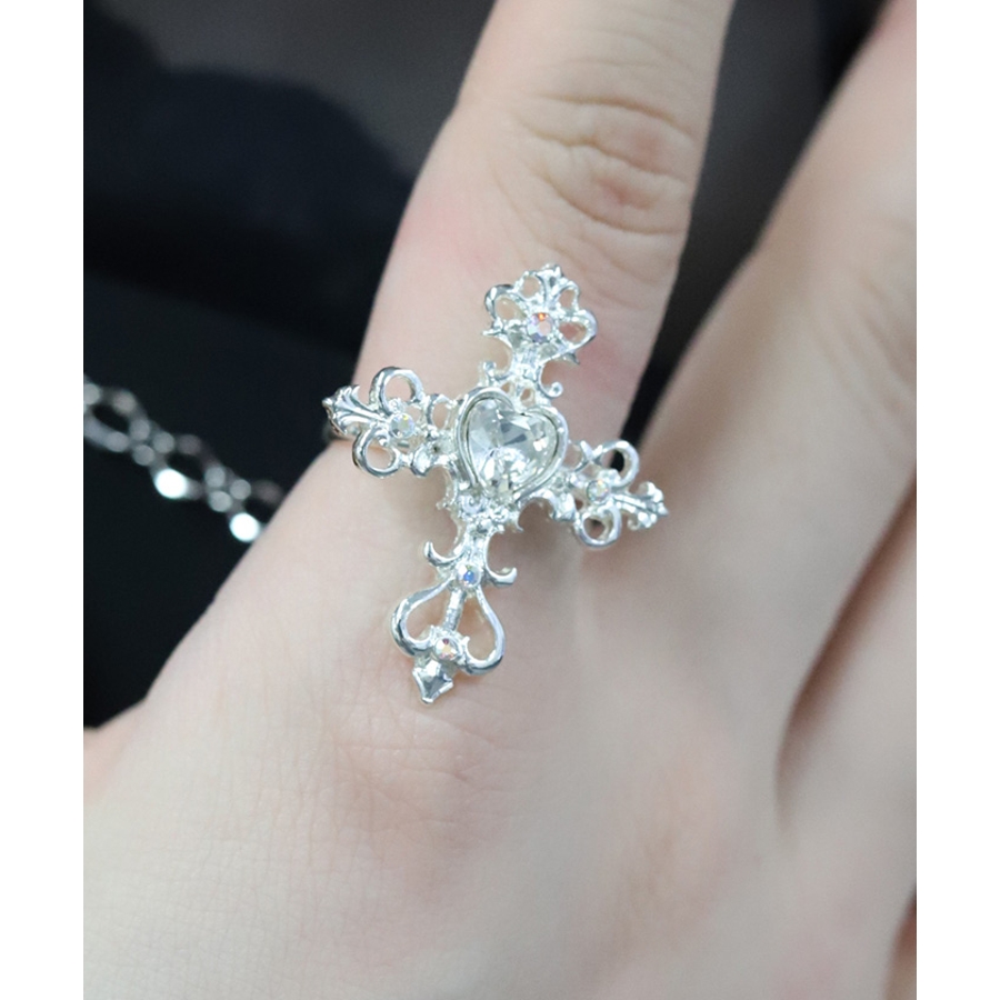 繊細なクロスモチーフにあしらったハート型のカラーストーンが目を惹くリングです。