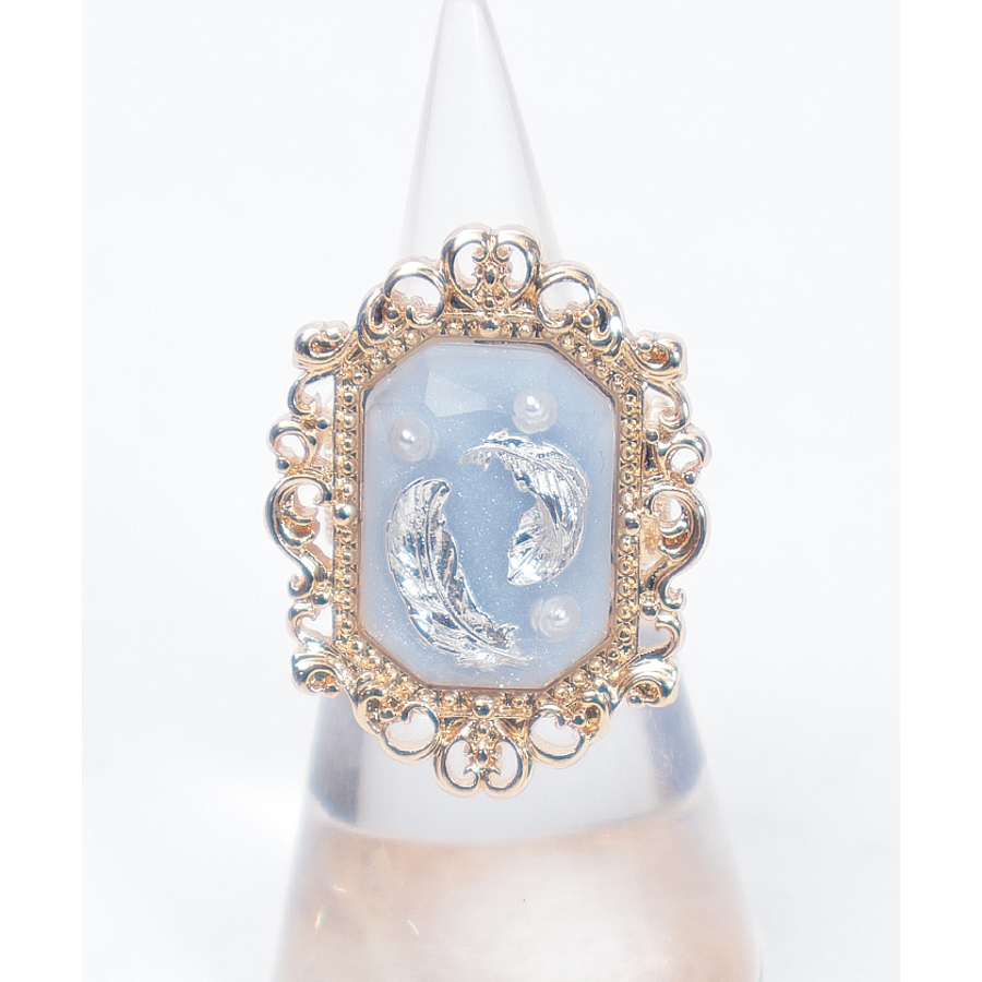 天使の羽が舞う様子をオリジナルの金型に起こし、封入モチーフにあしらったフリーリングです。