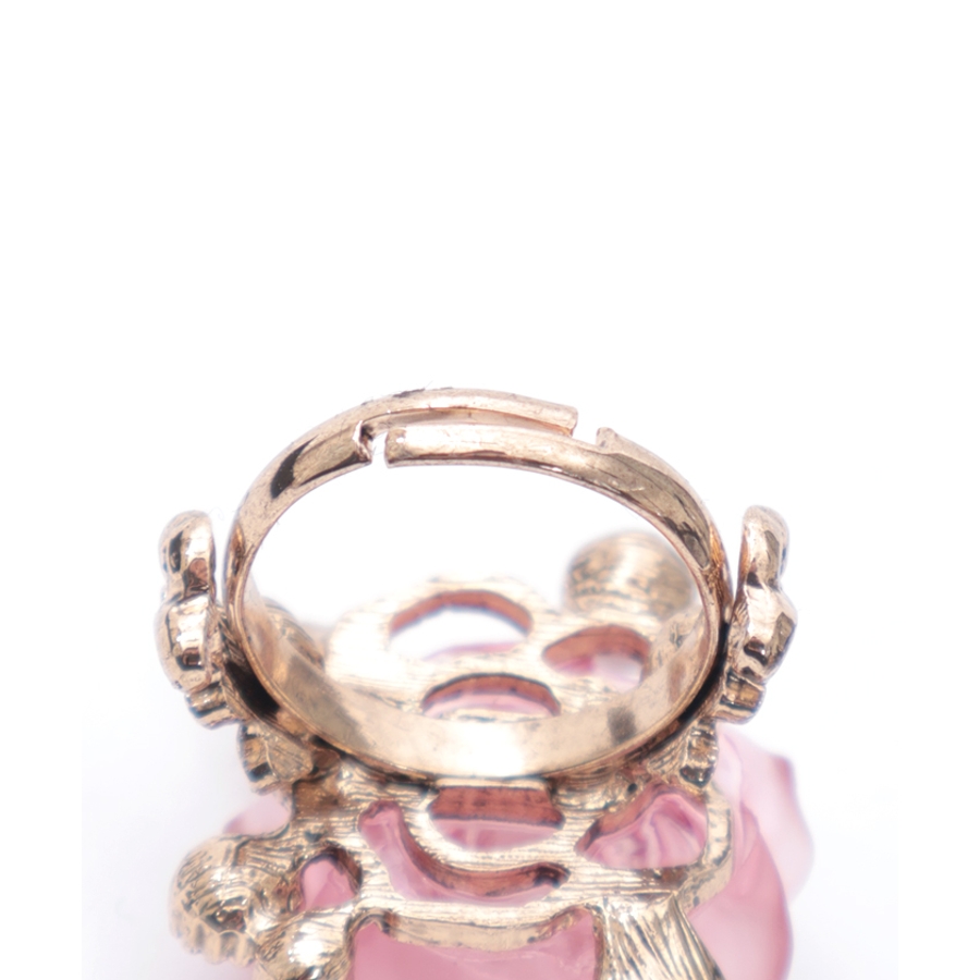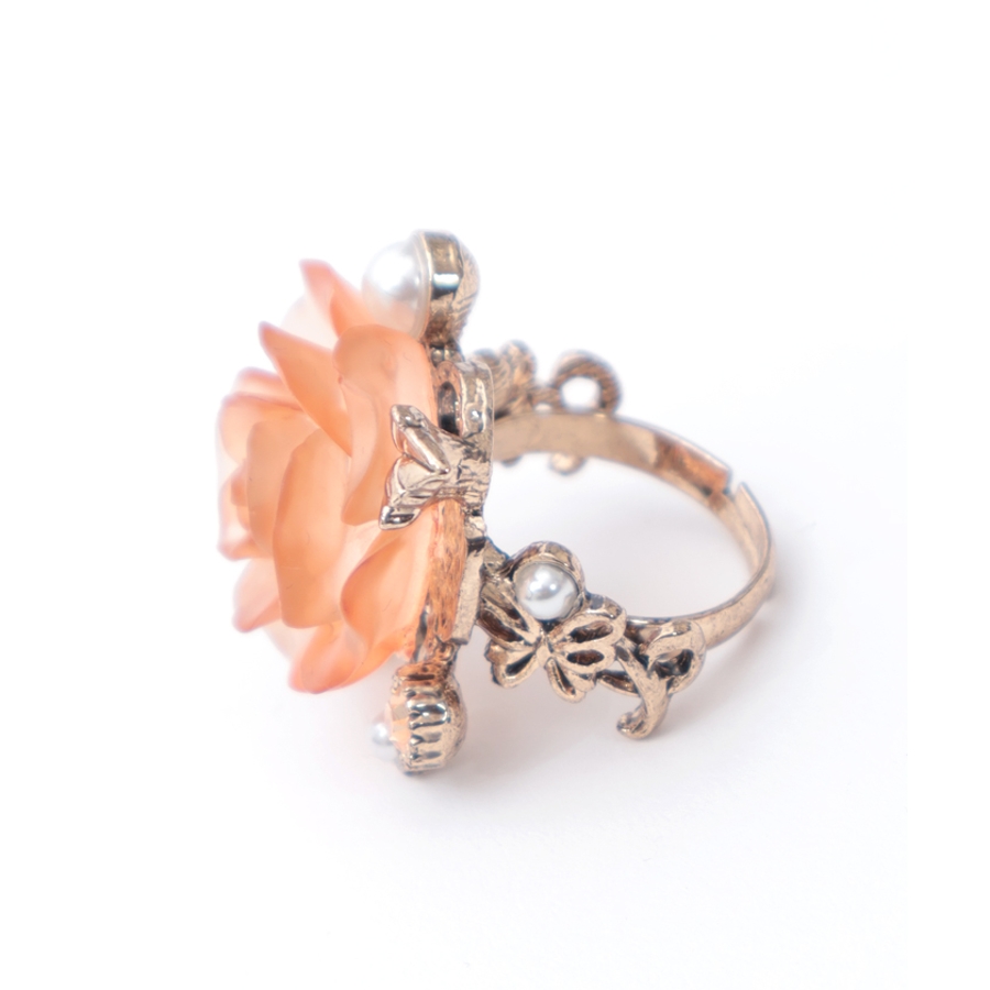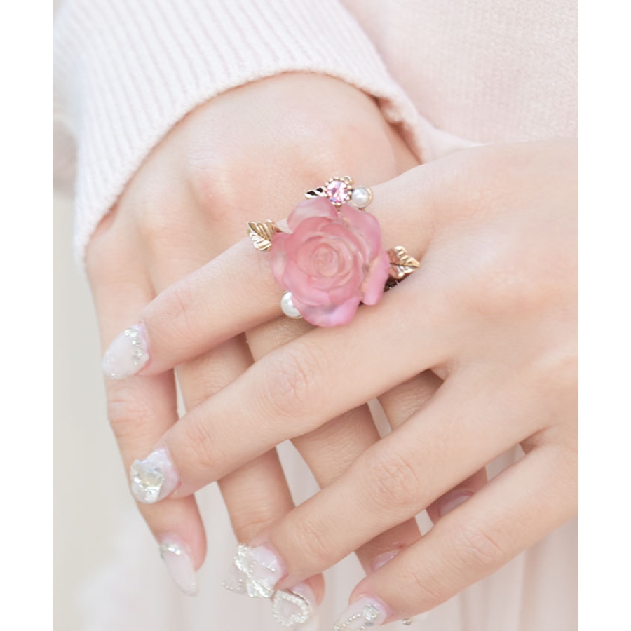 あらゆる角度から眺めてうっとりしちゃう可愛いデザイン!そのまま飾りたいくらいです。実用目的で購入したので使いますが、どの指にはめてもゆるいことがわかり、キャンドゥで買った指輪調整チューブを使って何とか落とさずに使いたいと思います。買って良かった!