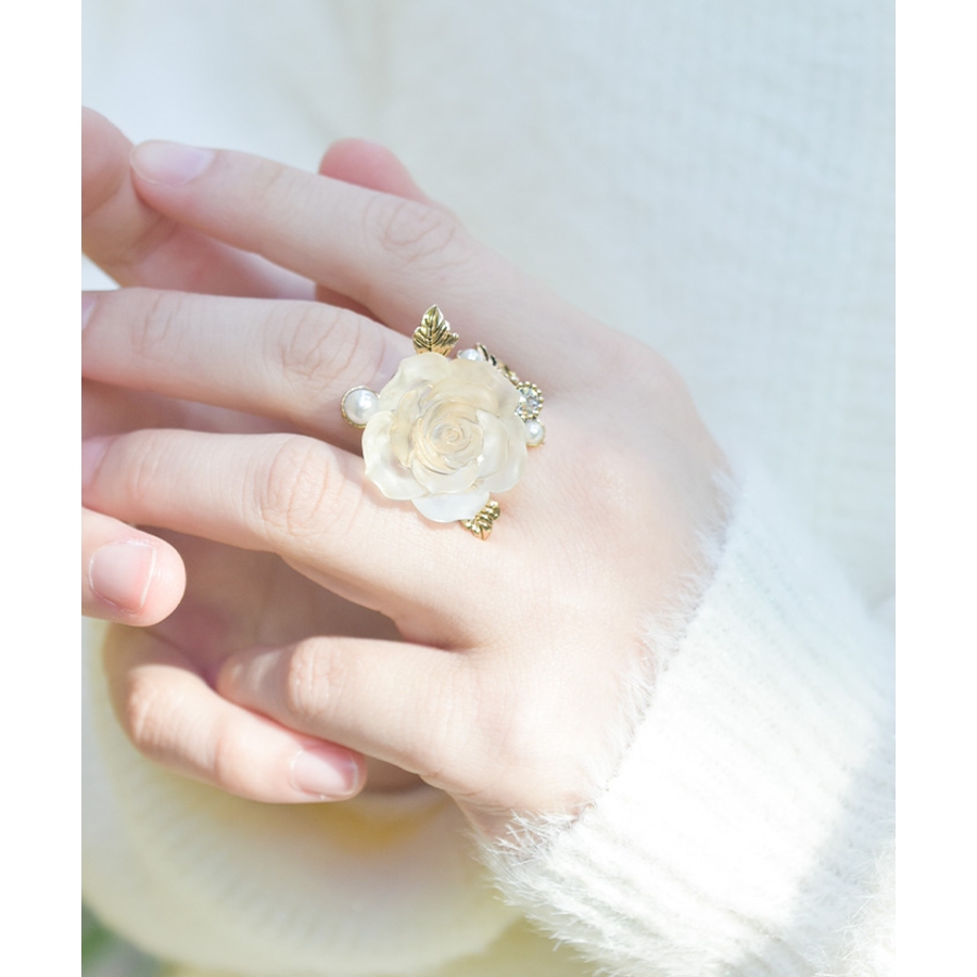 マットな質感が美しいローズモチーフは、繊細かつ立体的な仕上がりで存在感抜群。