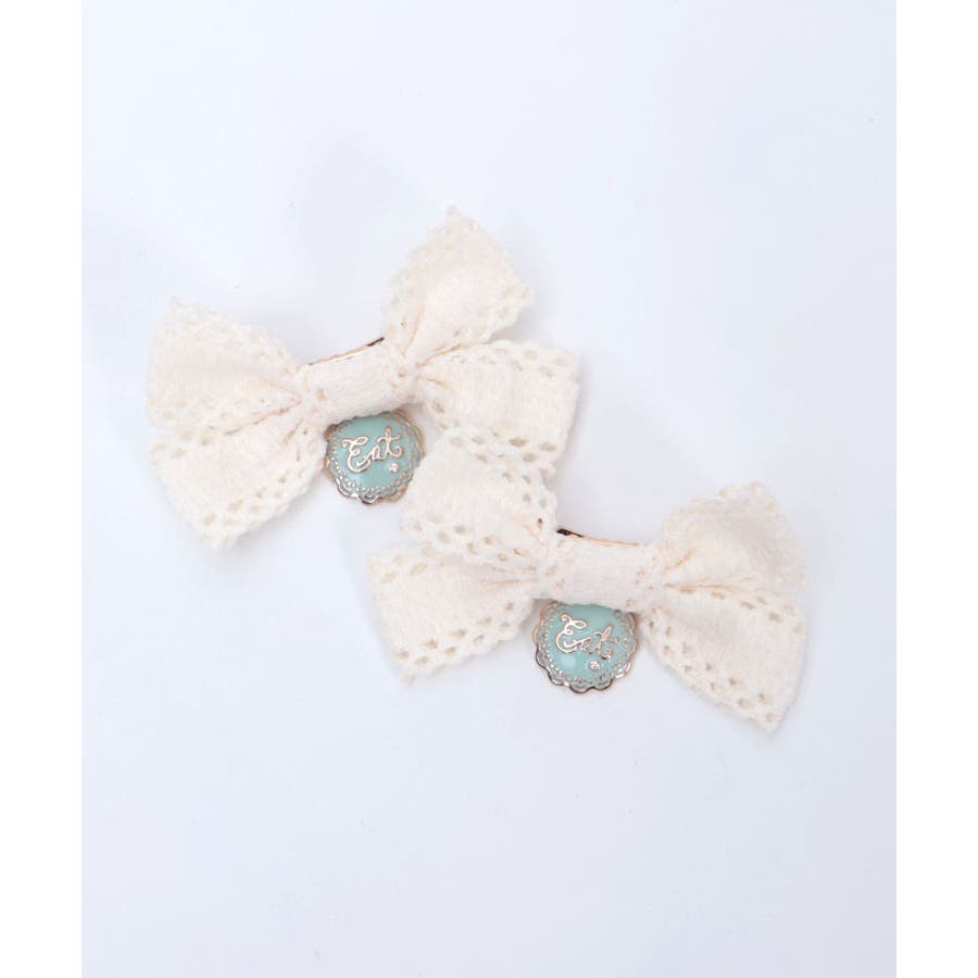 体が大きくなる不思議な焼き菓子をイメージし、オリジナルチャームにあしらった2個セットのリボンクリップです。