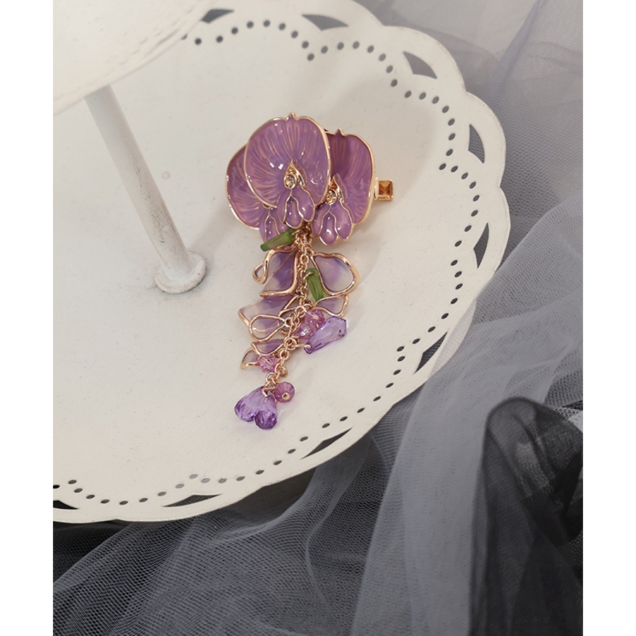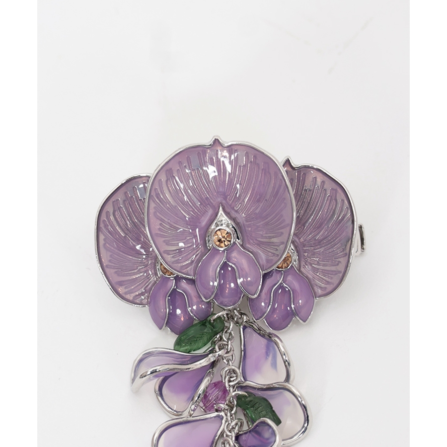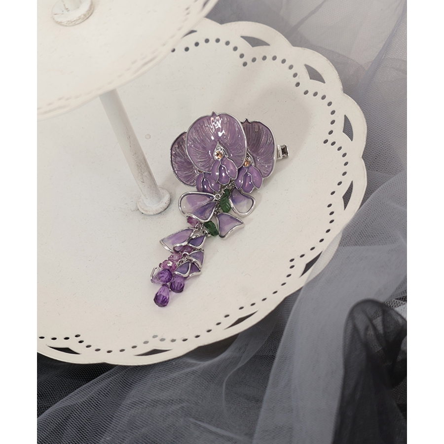 上品な色合いと揺れる花びらが華やかな藤の花モチーフのブローチです。