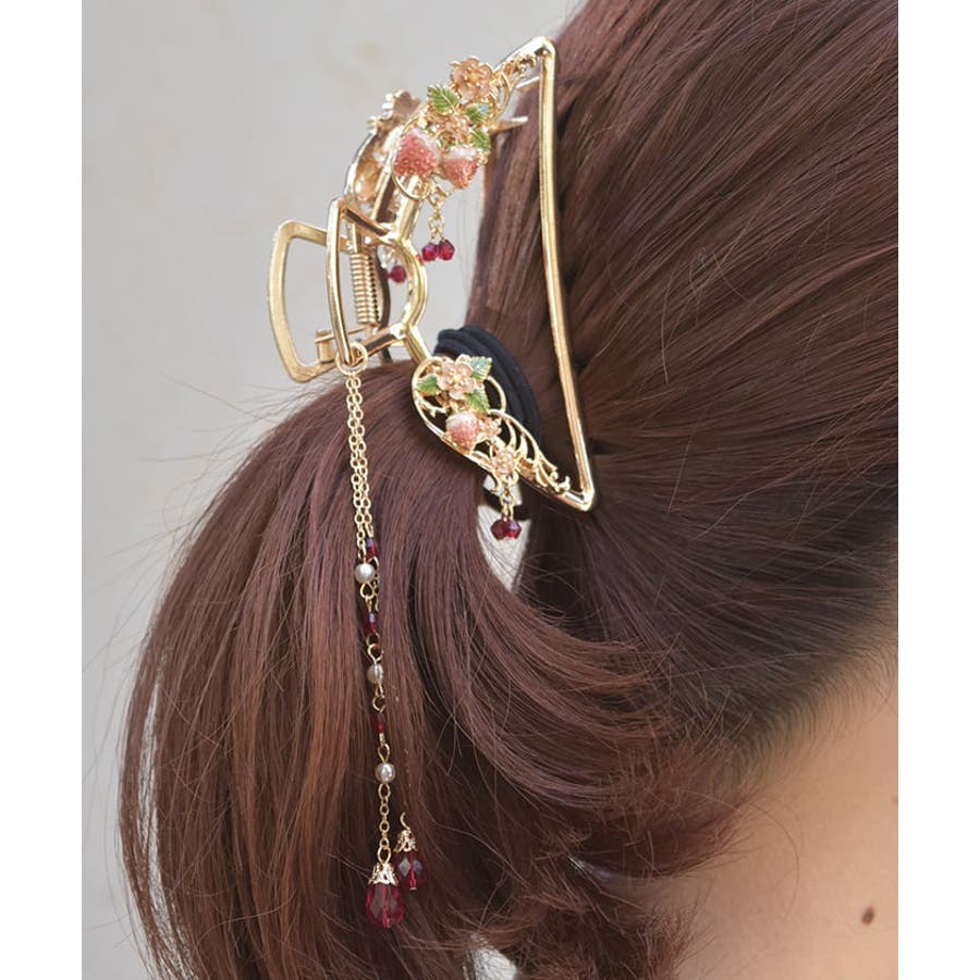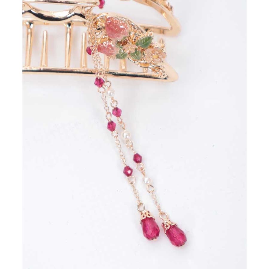 ころんとしたフォルムが愛らしい、いちごモチーフをあしらったバンスクリップです。