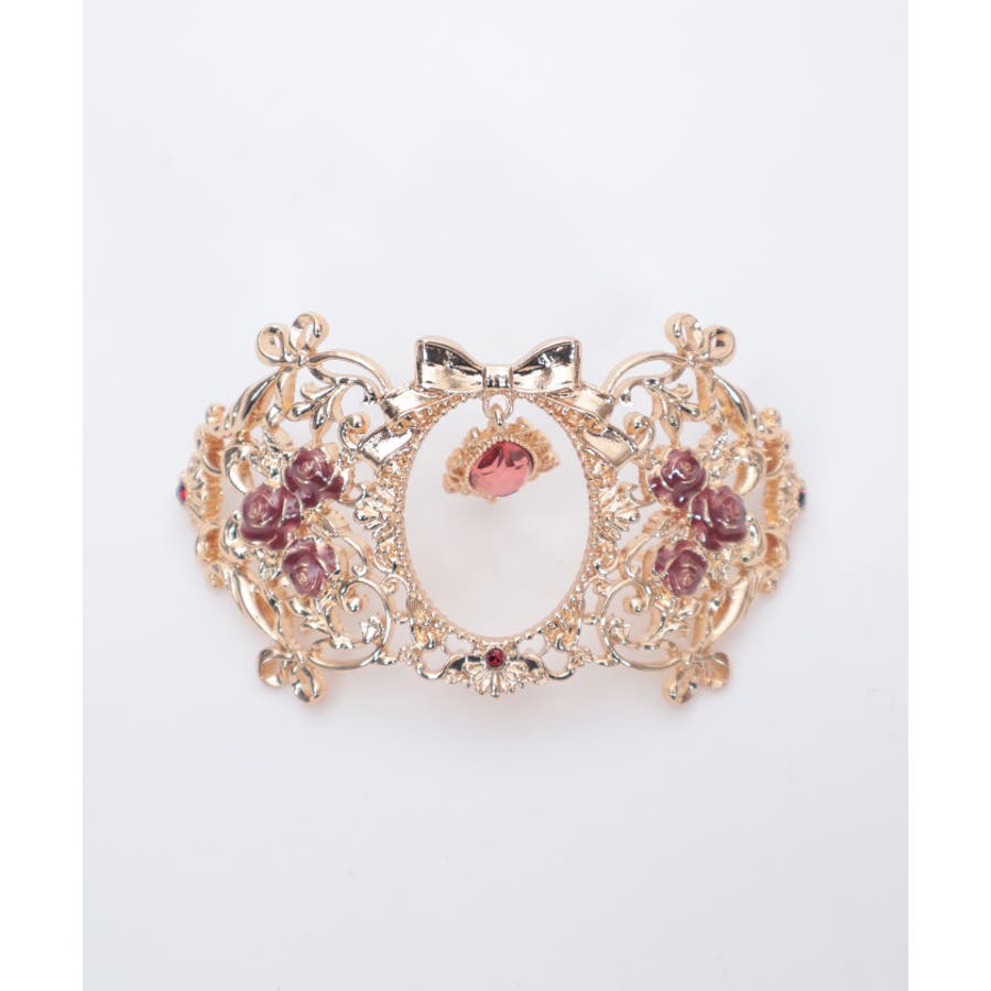 ストーンと薔薇のカラーは統一されており、上品に仕上げられたデザインです。