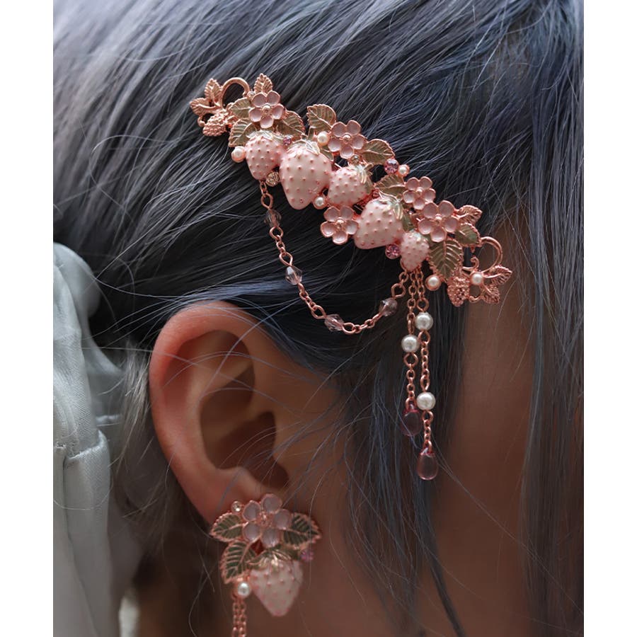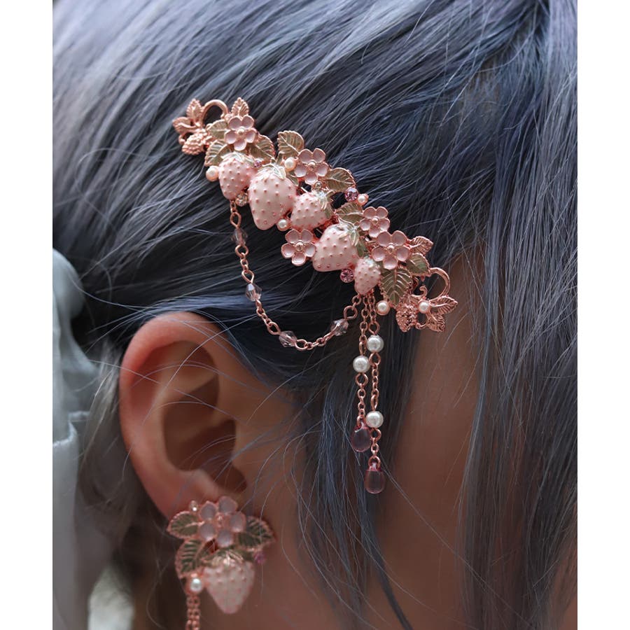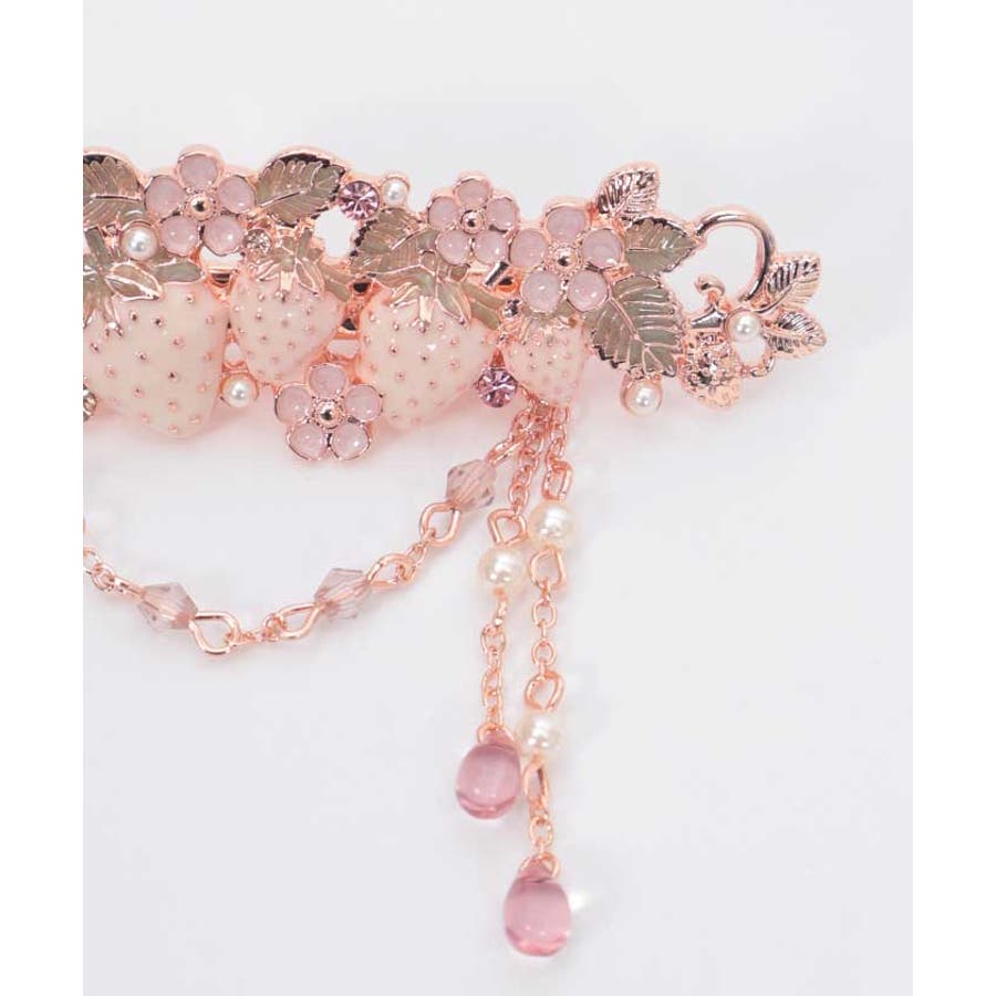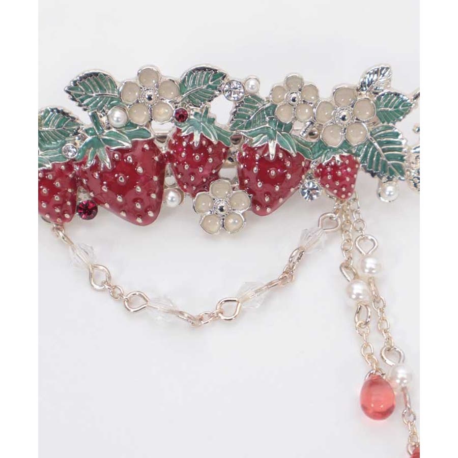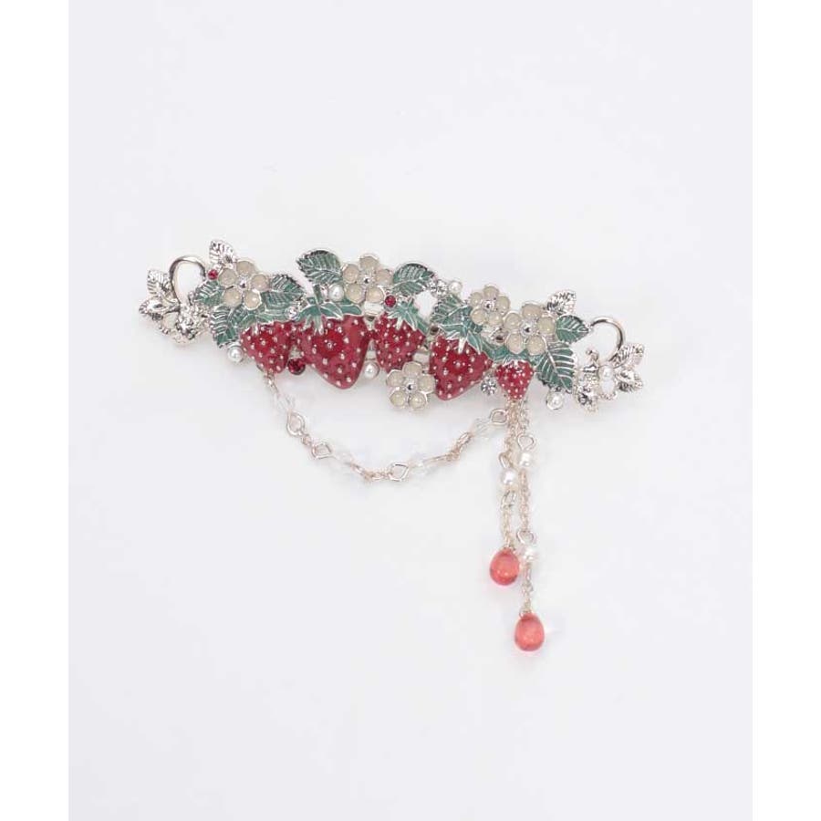 立体的な苺モチーフが並んだフェミニンなマルチクリップです。