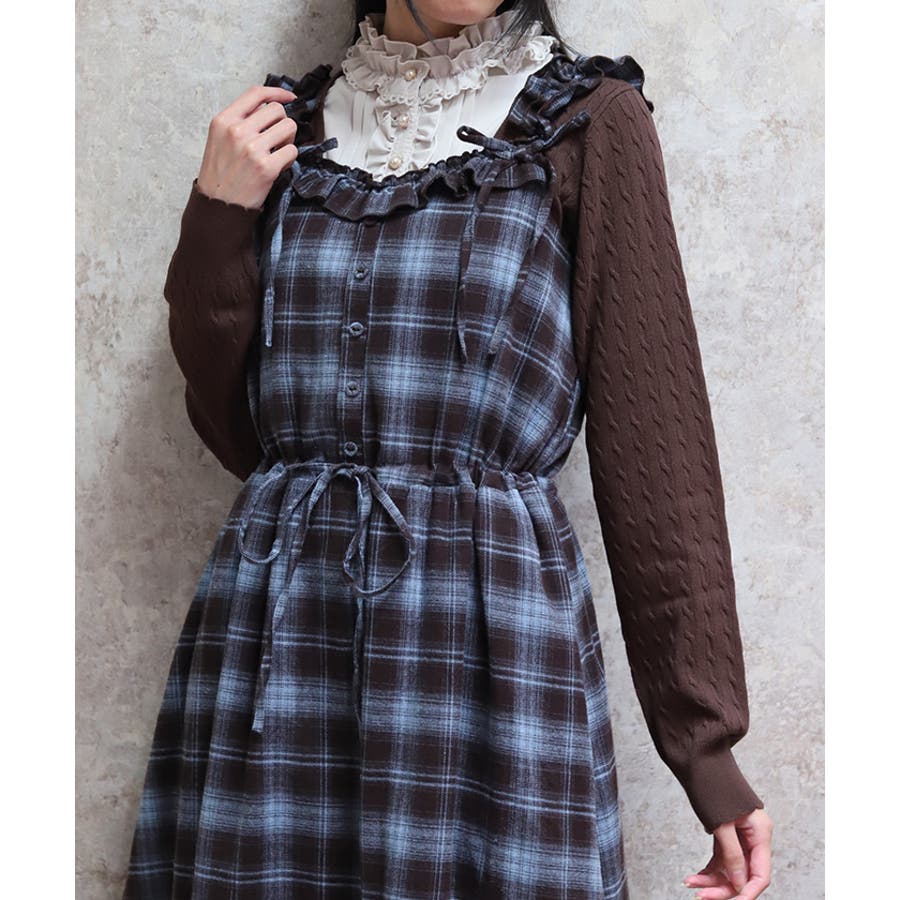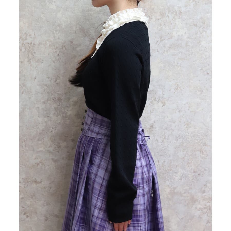 さりげないフリル使いが甘さを添え、細リブニットが身体のラインをすっきり見せてきれいなシルエットに整えてくれます。