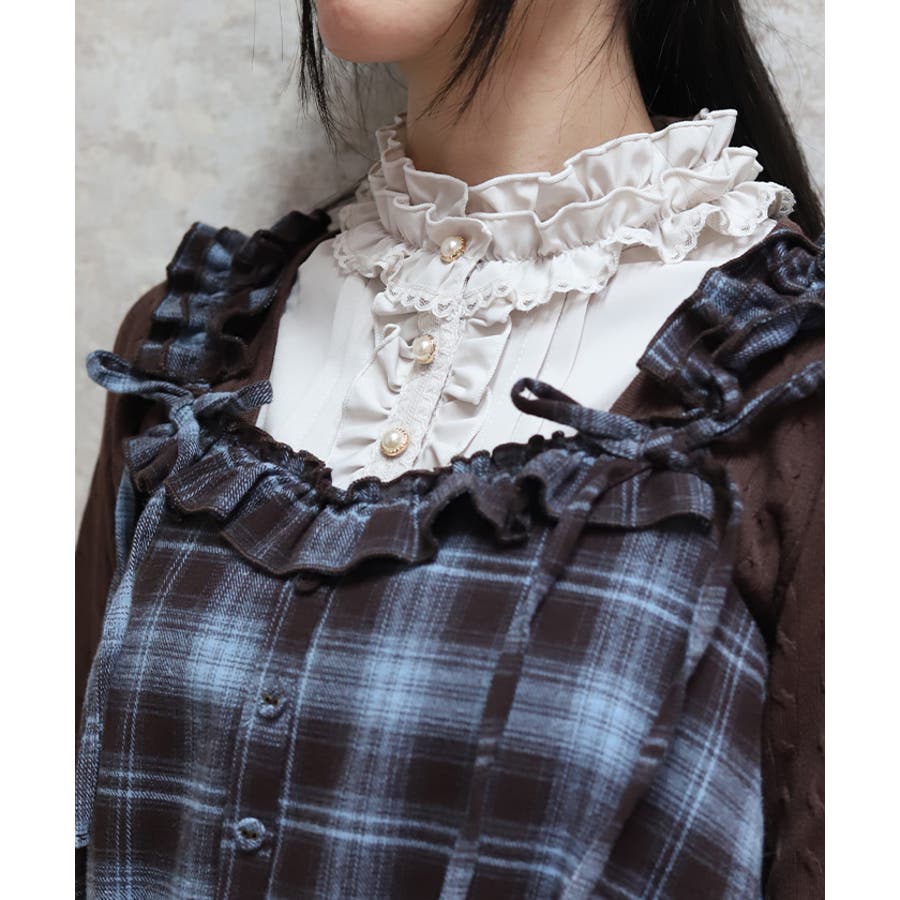 ブラウスにニットをレイヤードしたようなデザインで、一枚で着映えが叶うトップス。