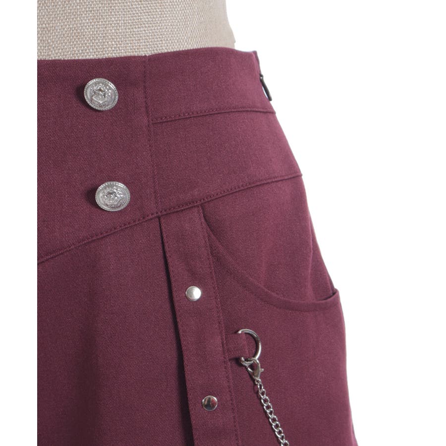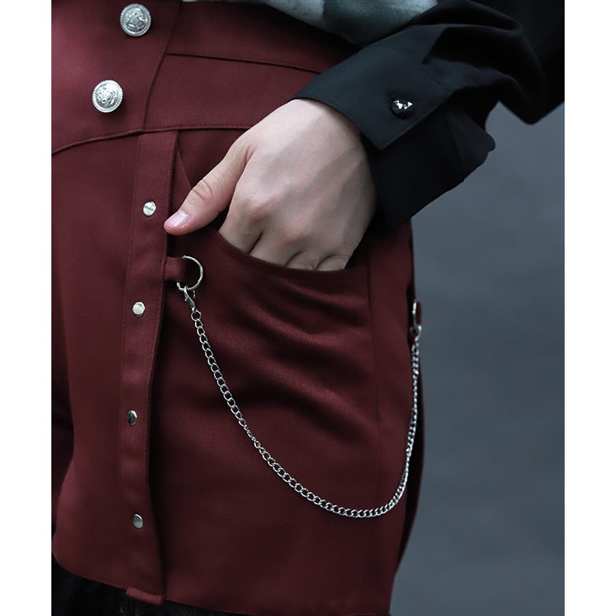 チェーンやカシメの金具使いでパンキッシュな印象もプラスしたデザイン性の高いアイテムです。