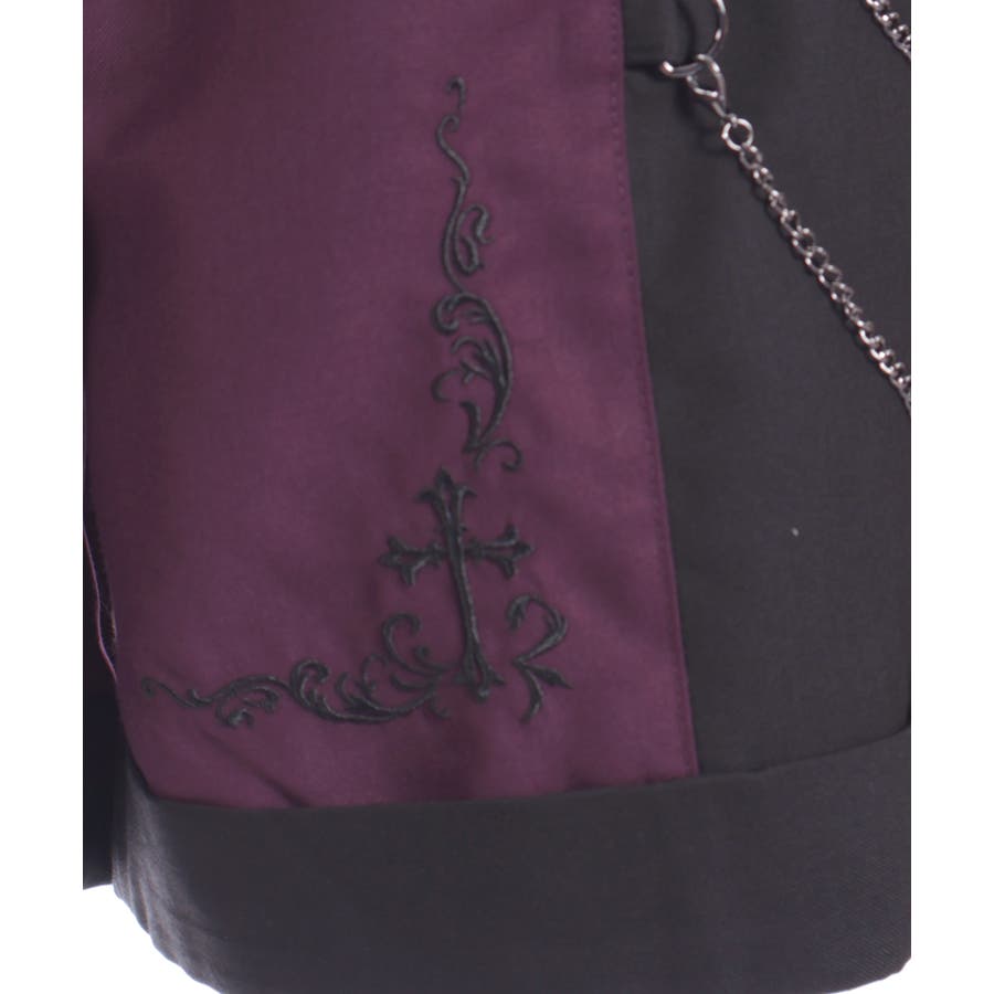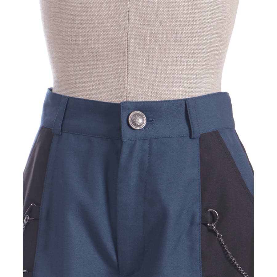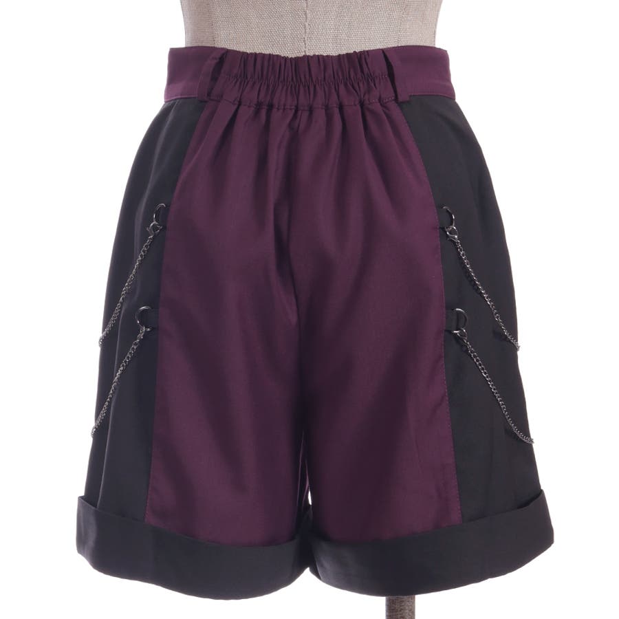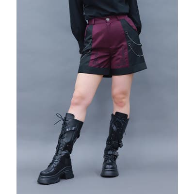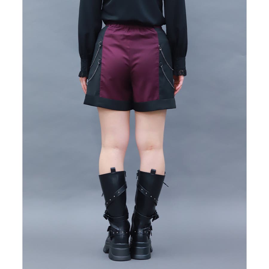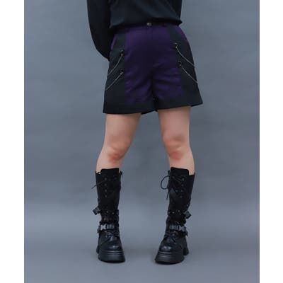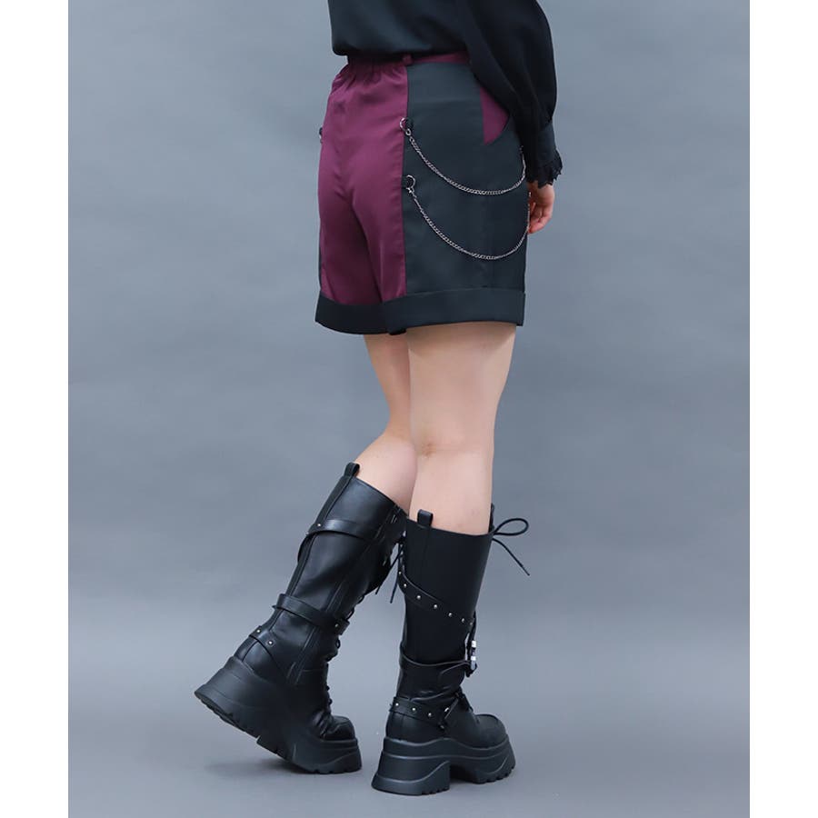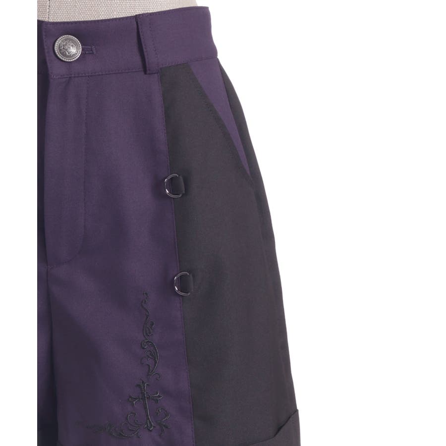 バイカラーデザインと裾にあしらわれたクロスモチーフ刺繍でゴシックパンクなテイストを取り入れたショートパンツです。