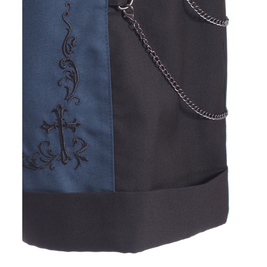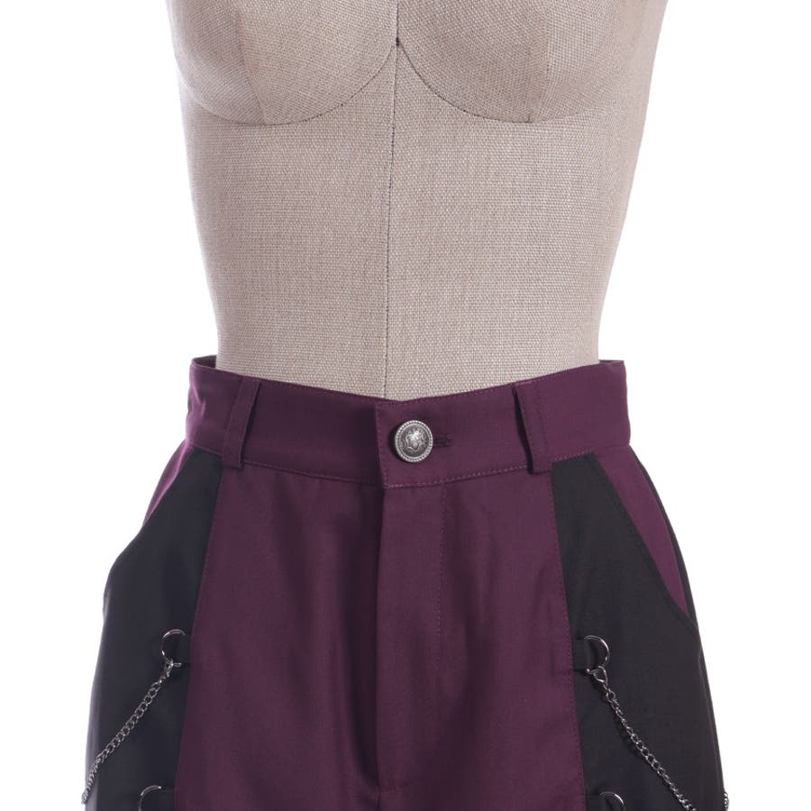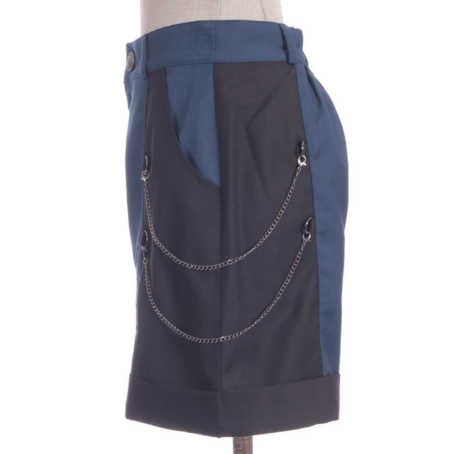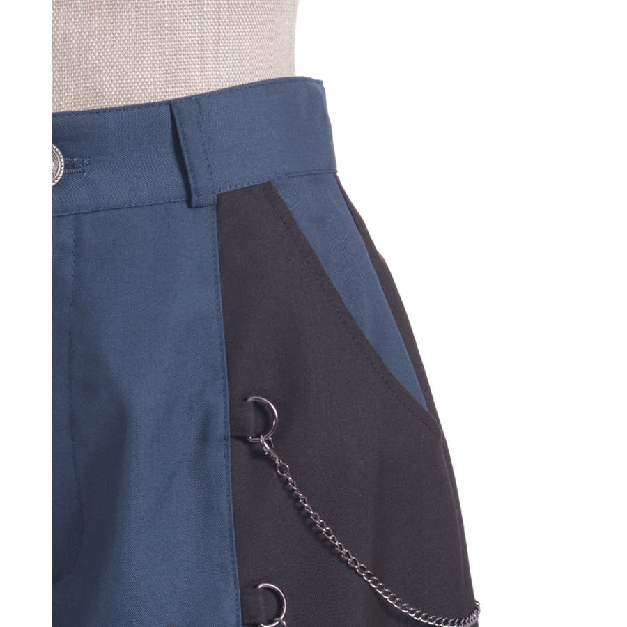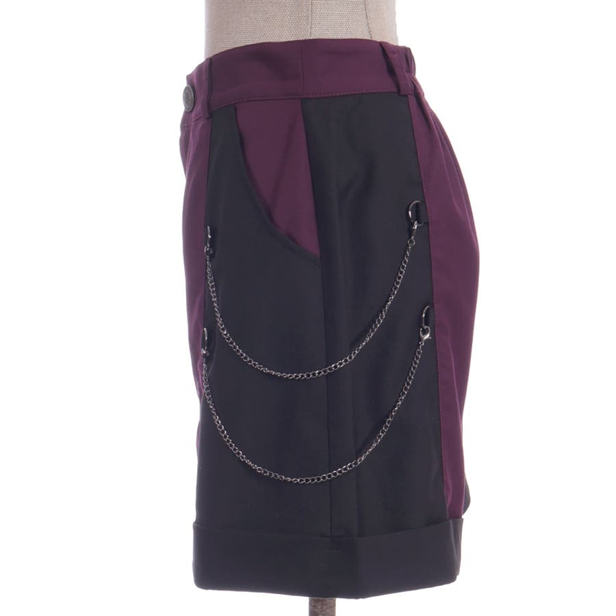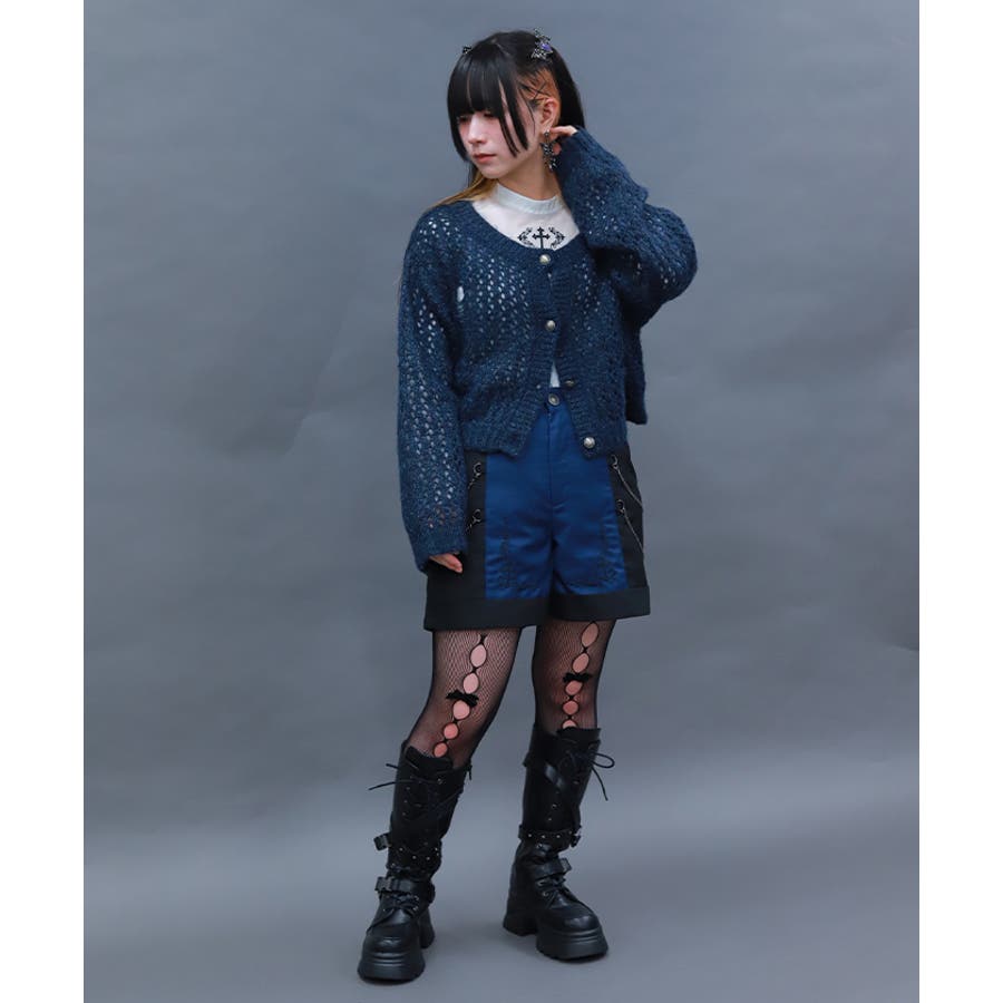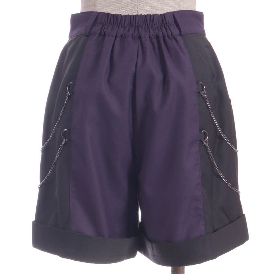 バイカラーデザインと裾にあしらわれたクロスモチーフ刺繍でゴシックパンクなテイストを取り入れたショートパンツです。