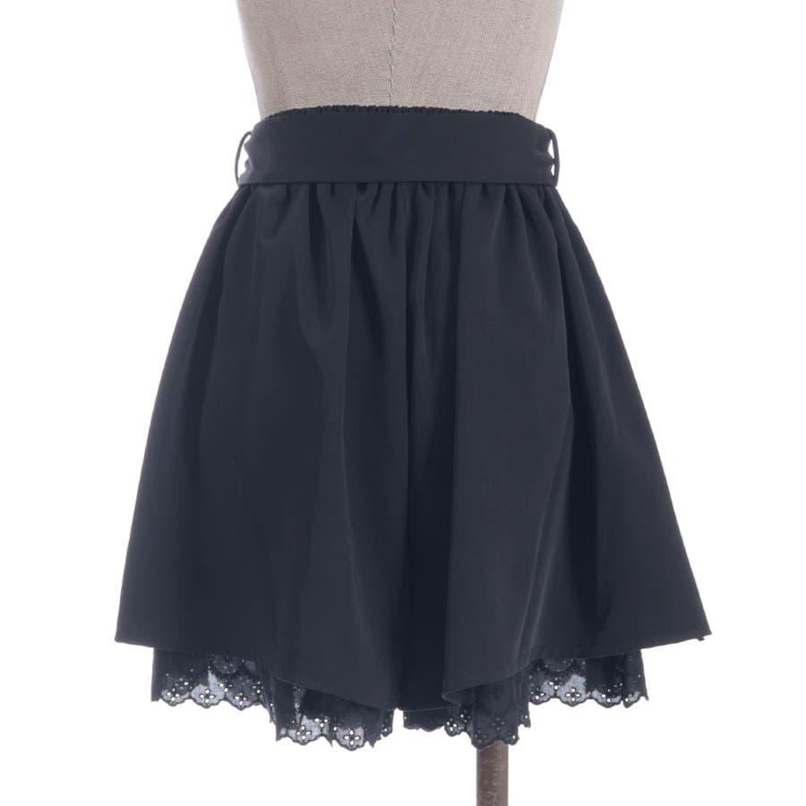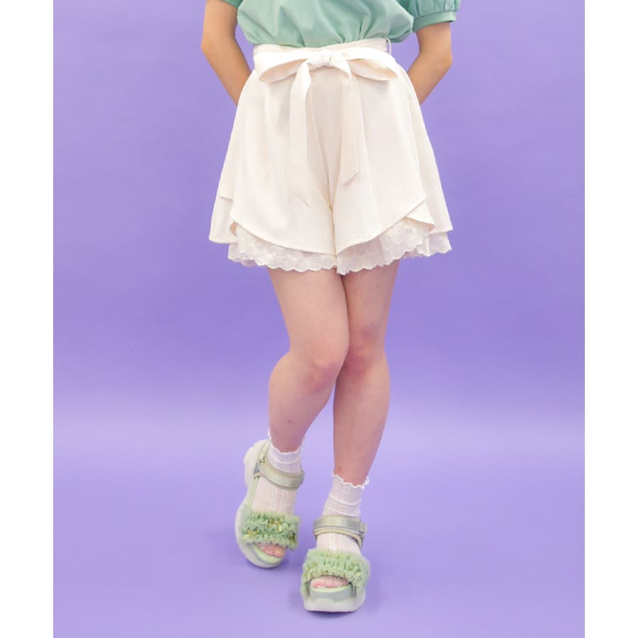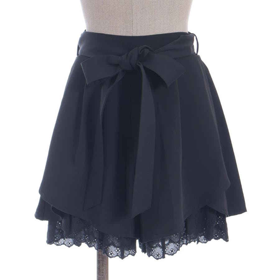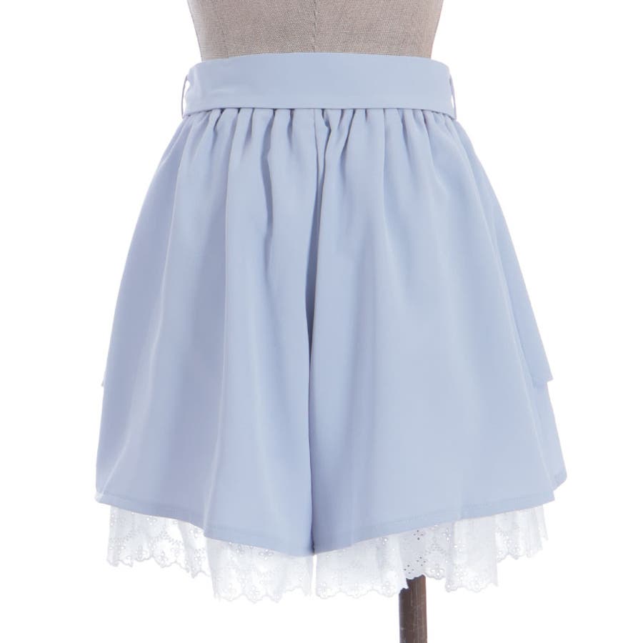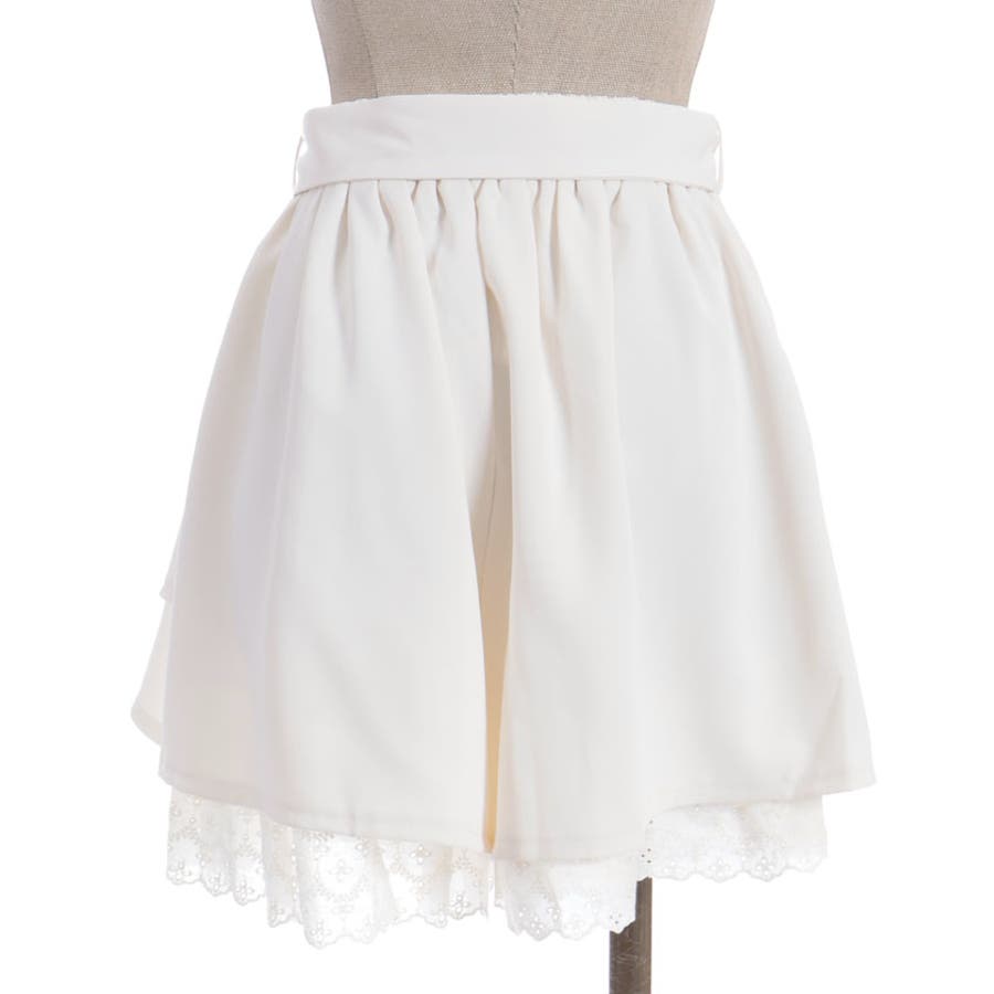 裾にアイレットレースをあしらったキュロットパンツです。
